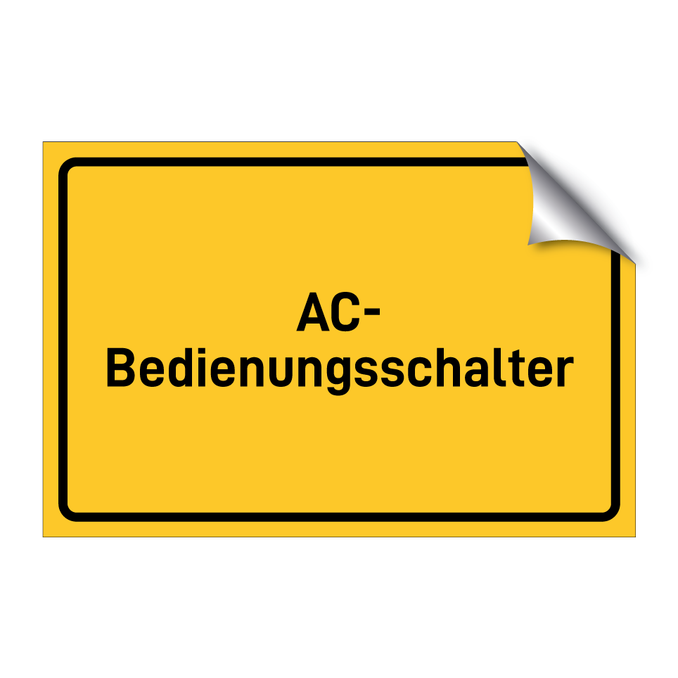 Hinweisschild mit dem Text AC- Bedienungsschalter