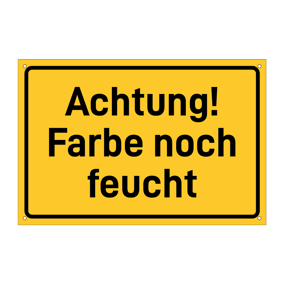 Hinweisschild mit dem Text Achtung! Farbe noch feucht