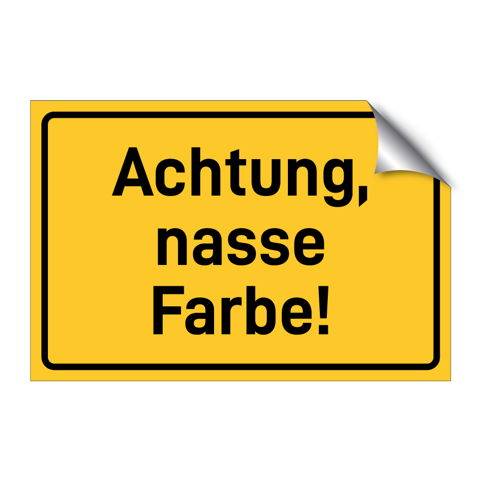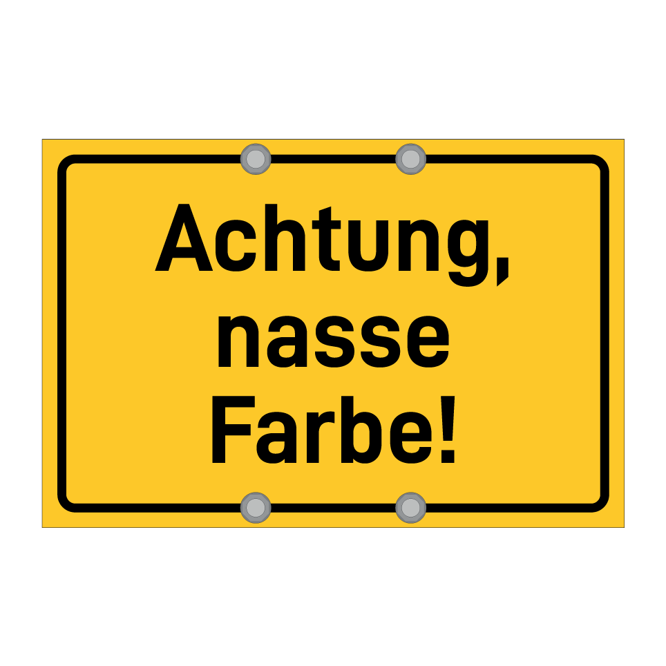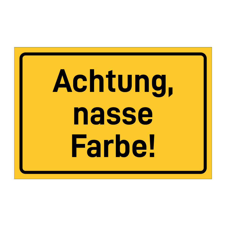 Hinweisschild mit dem Text Achtung, nasse Farbe!
