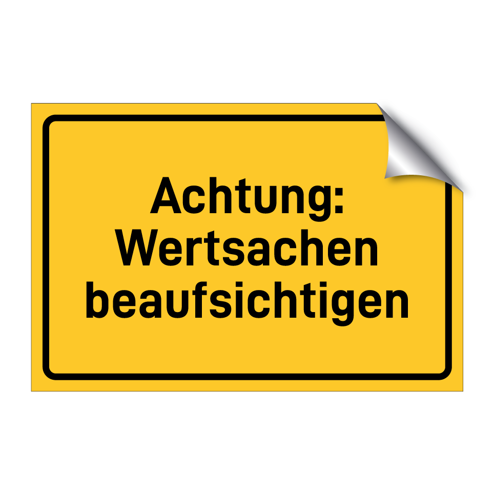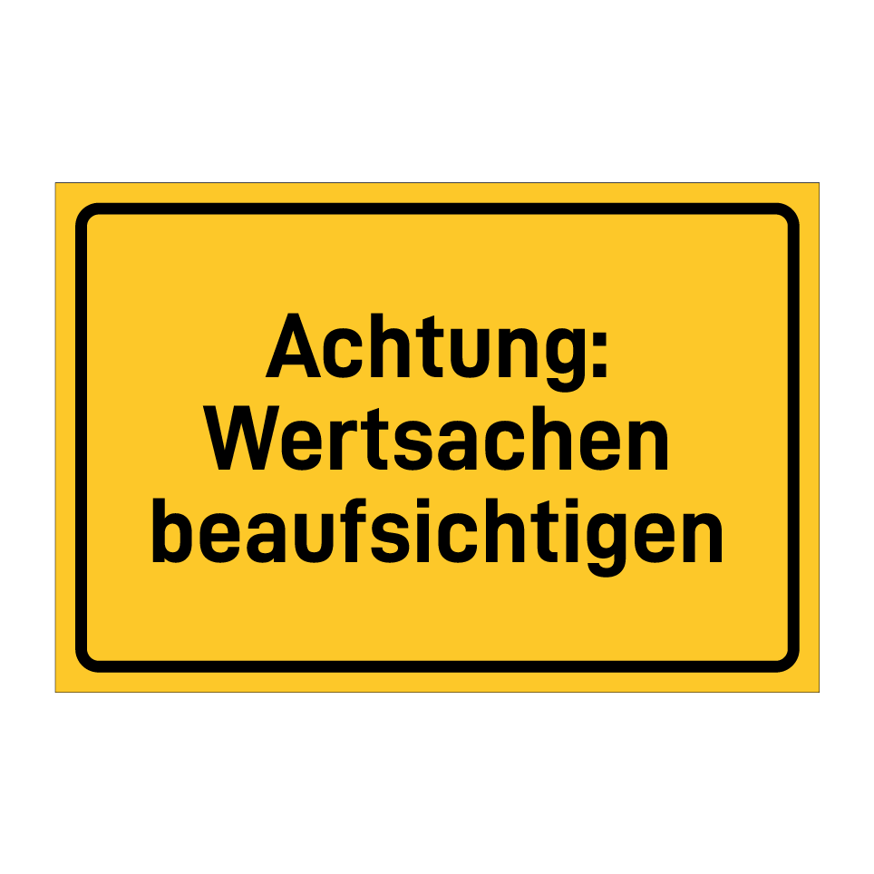 Hinweisschild mit dem Text Achtung: Wertsachen beaufsichtigen