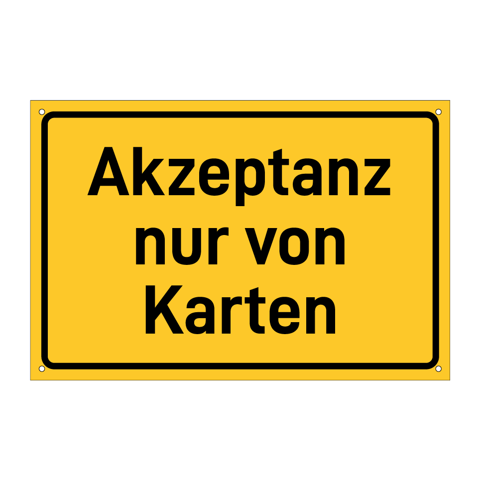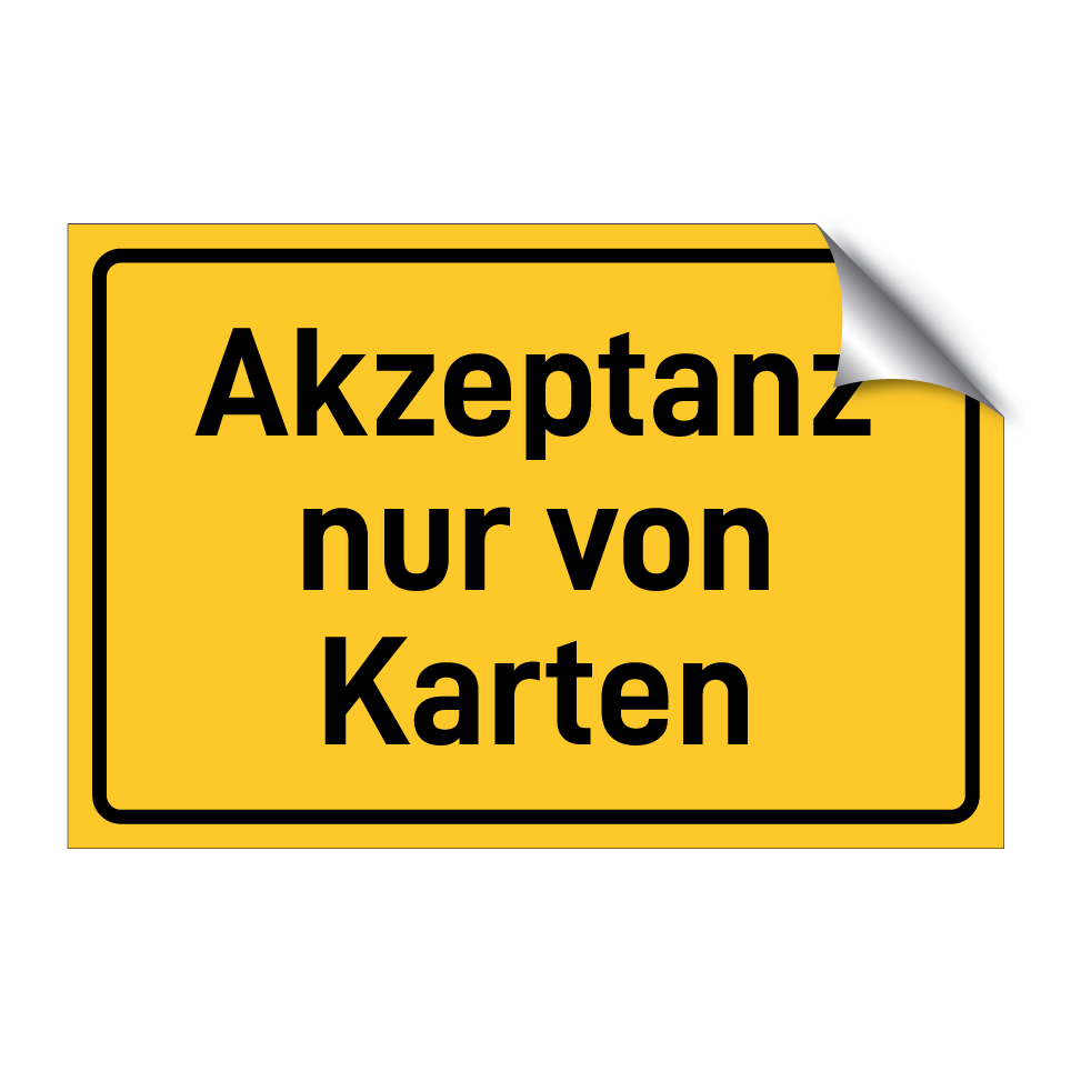 Hinweisschild mit dem Text Akzeptanz nur von Karten