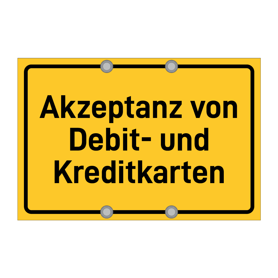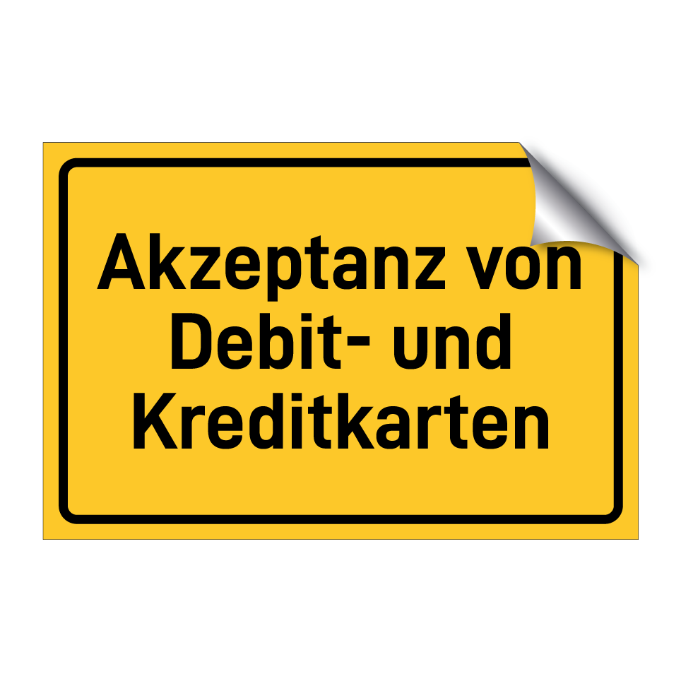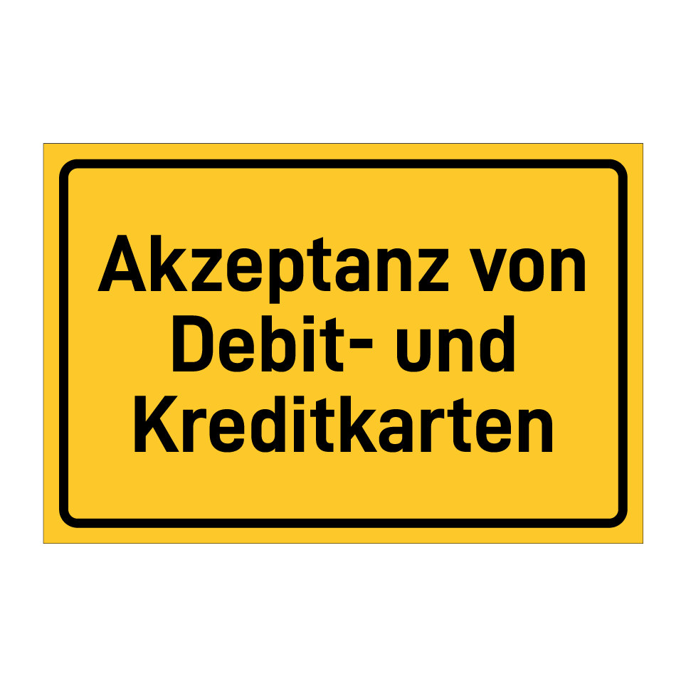 Hinweisschild mit dem Text Akzeptanz von Debit- und Kreditkarten