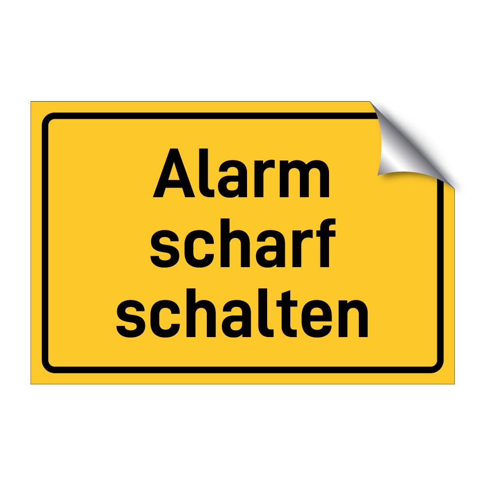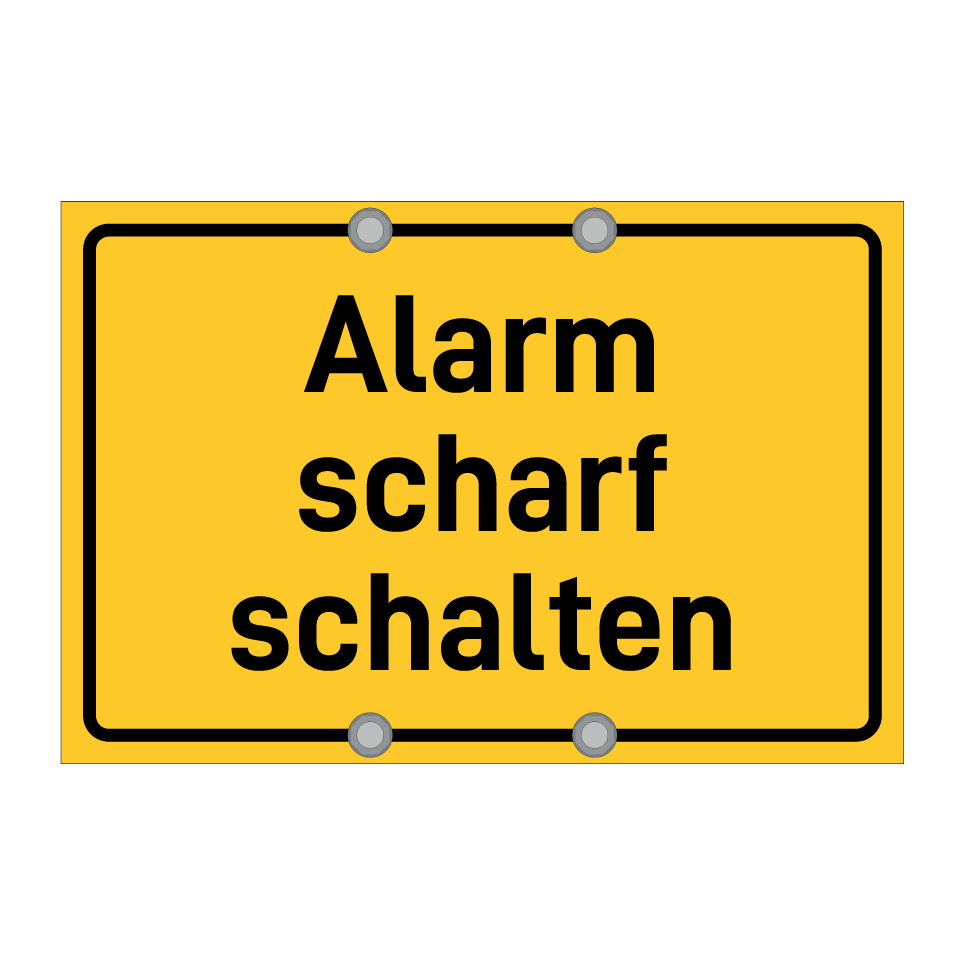 Hinweisschild mit dem Text Alarm scharf schalten