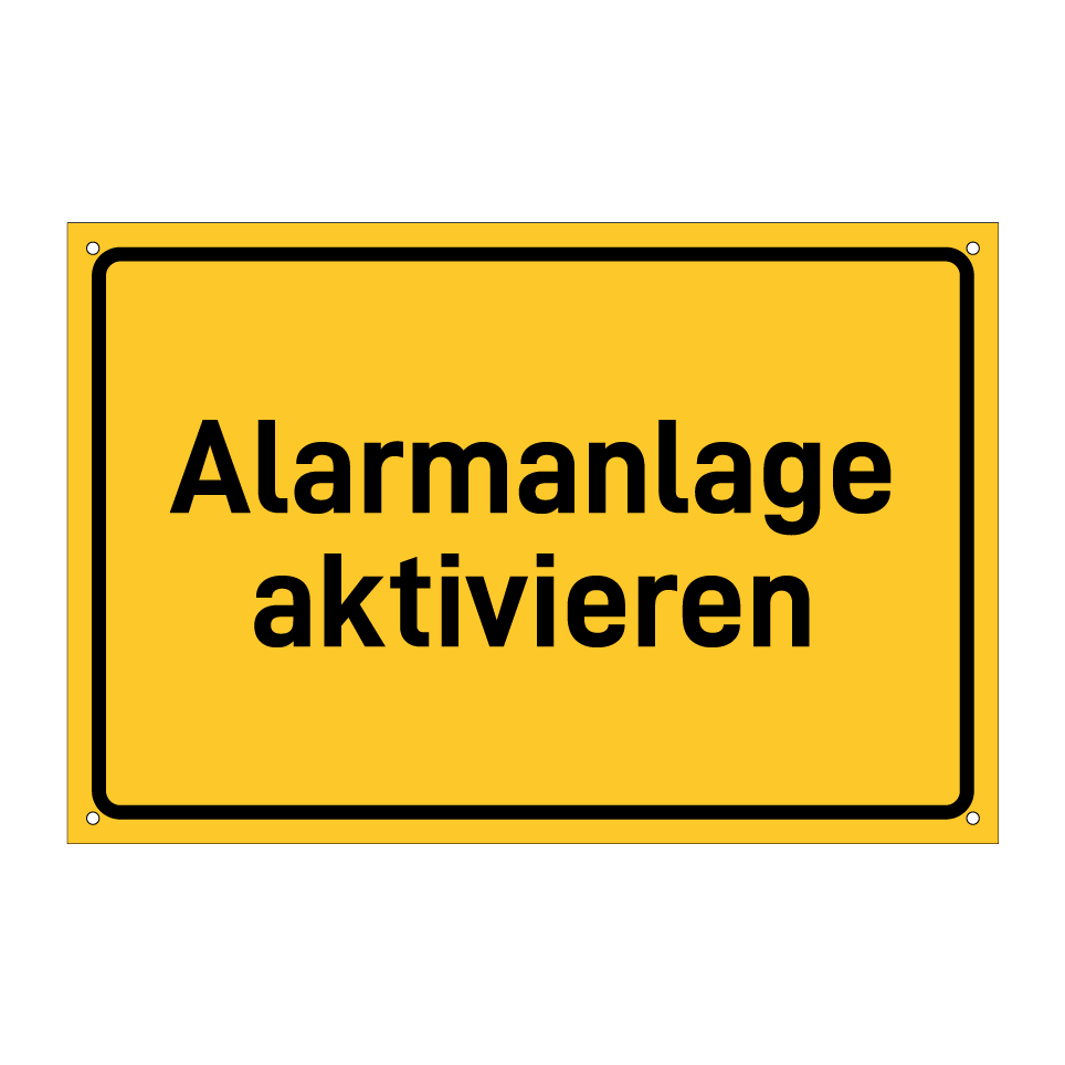 Hinweisschild mit dem Text Alarmanlage aktivieren