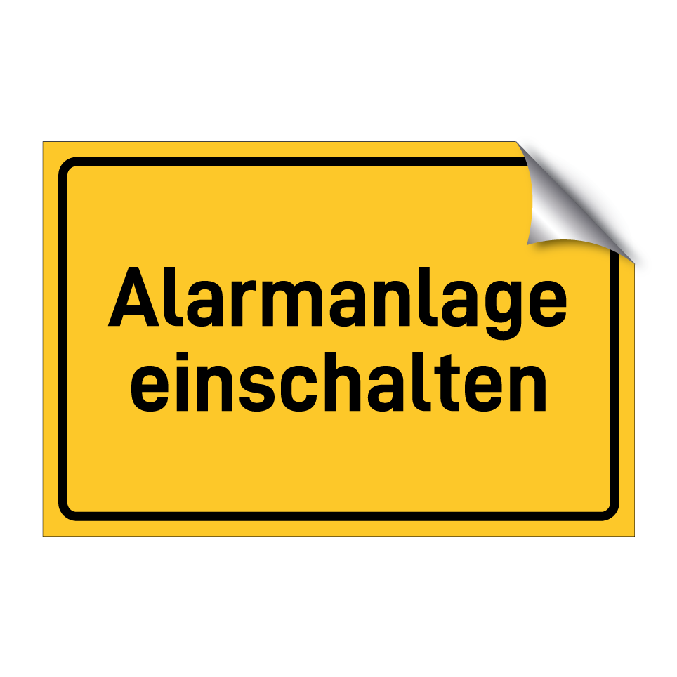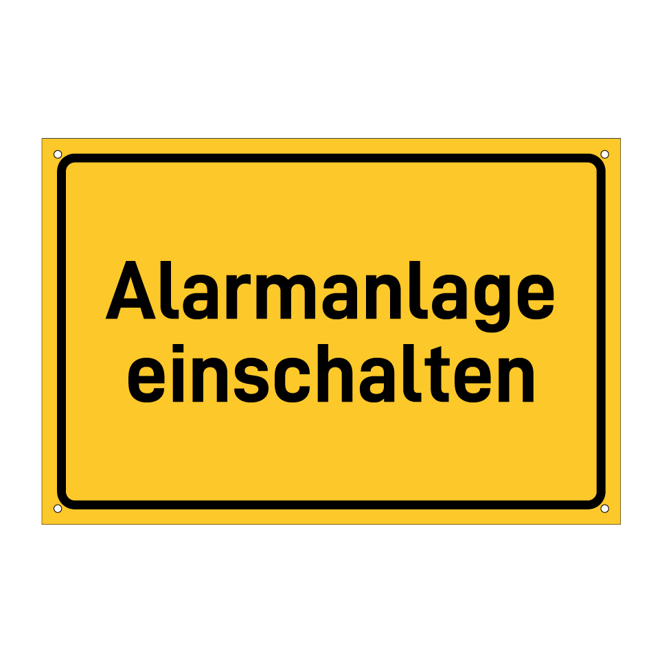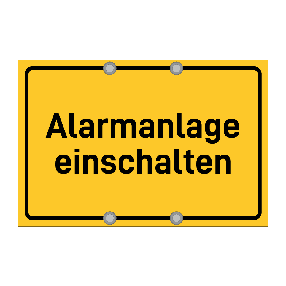 Hinweisschild mit dem Text Alarmanlage einschalten