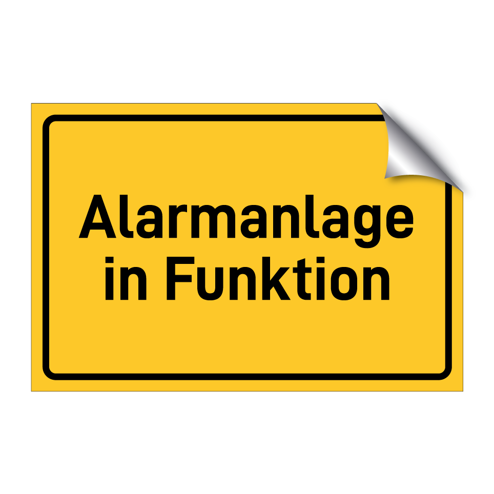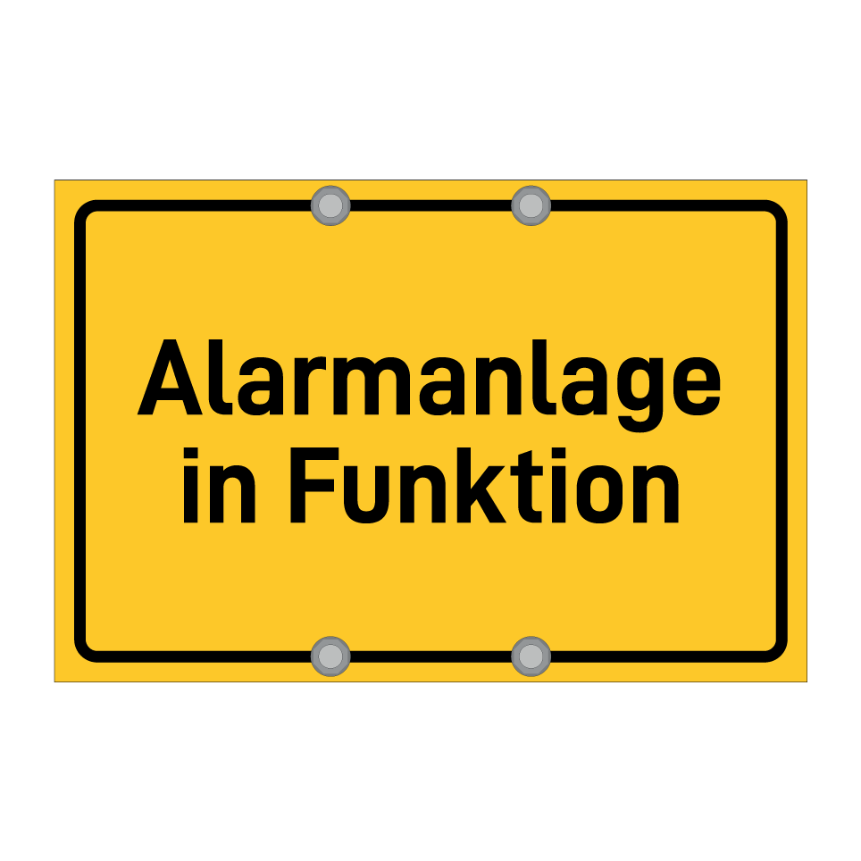 Hinweisschild mit dem Text Alarmanlage in Funktion
