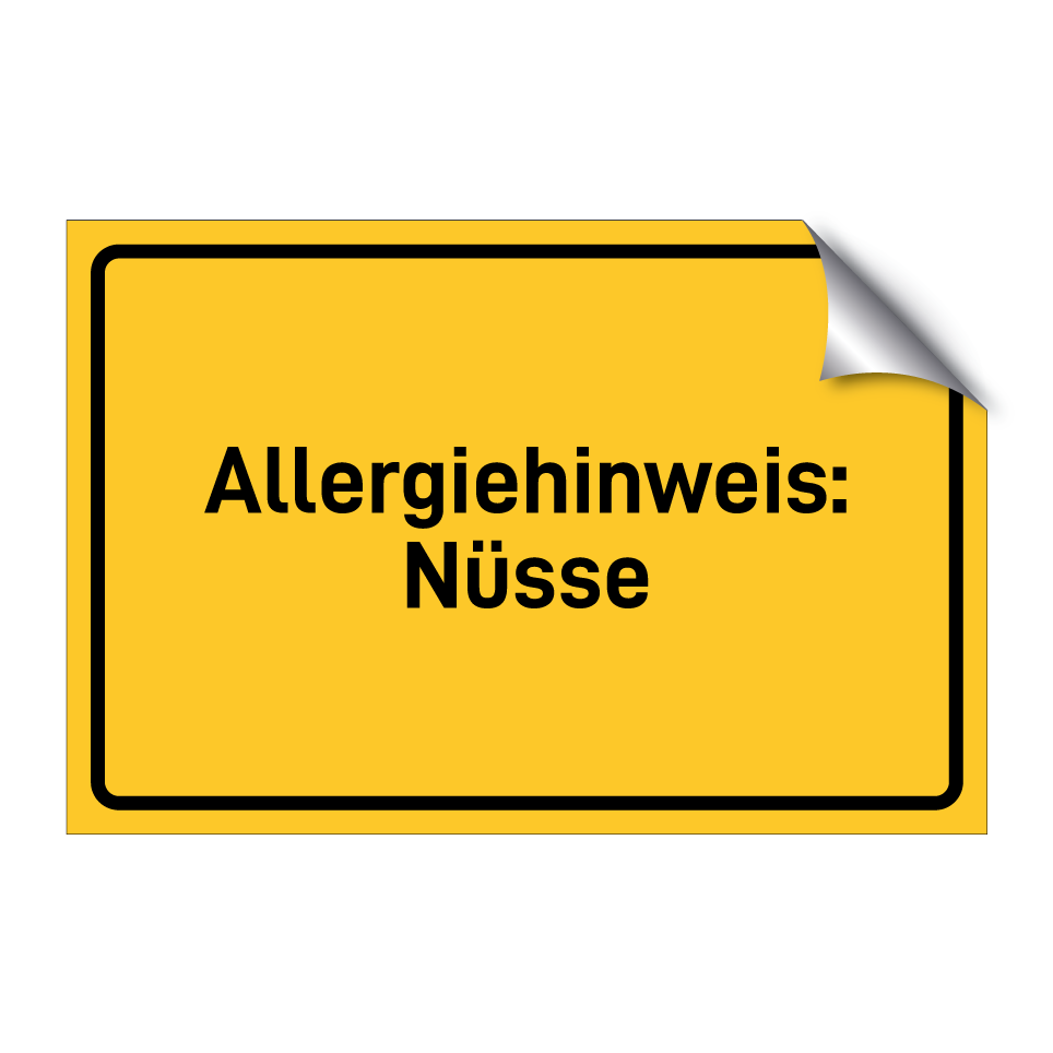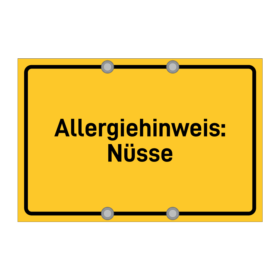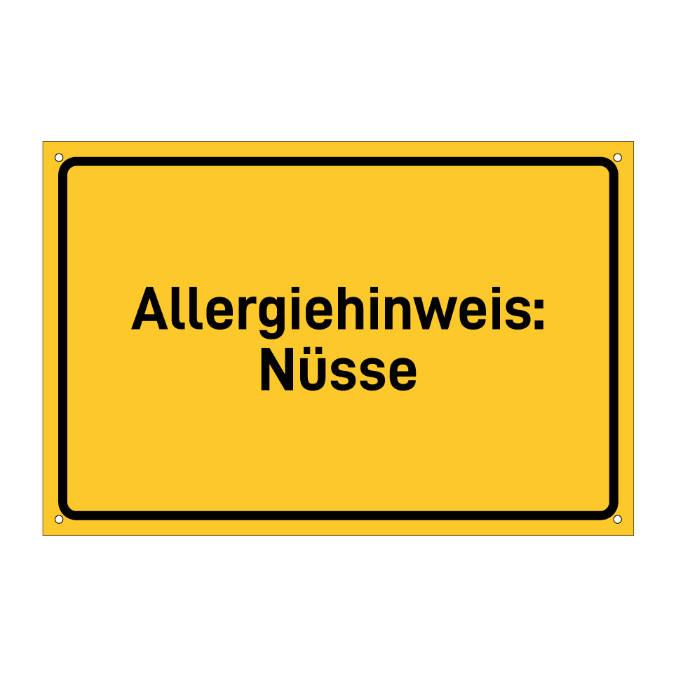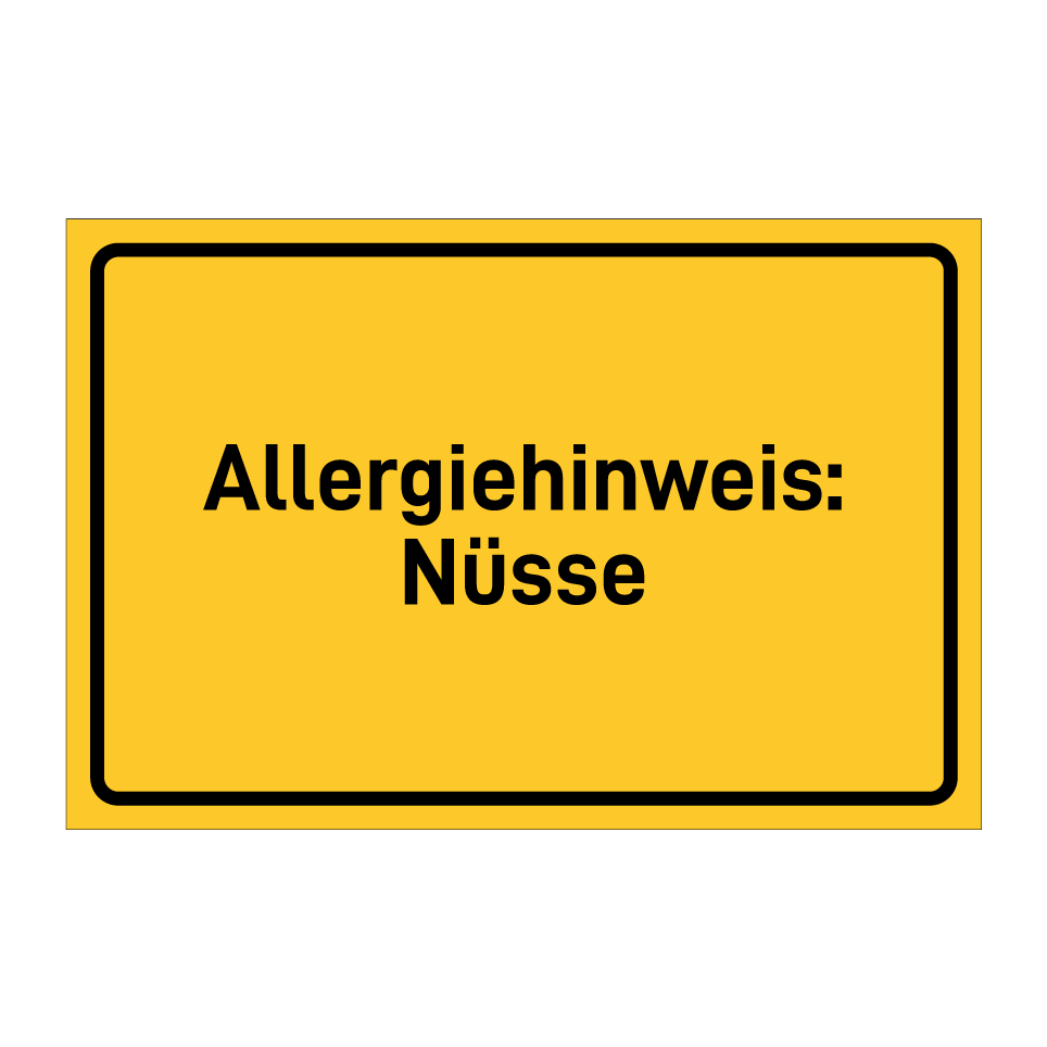 Hinweisschild mit dem Text Allergiehinweis: Nüsse