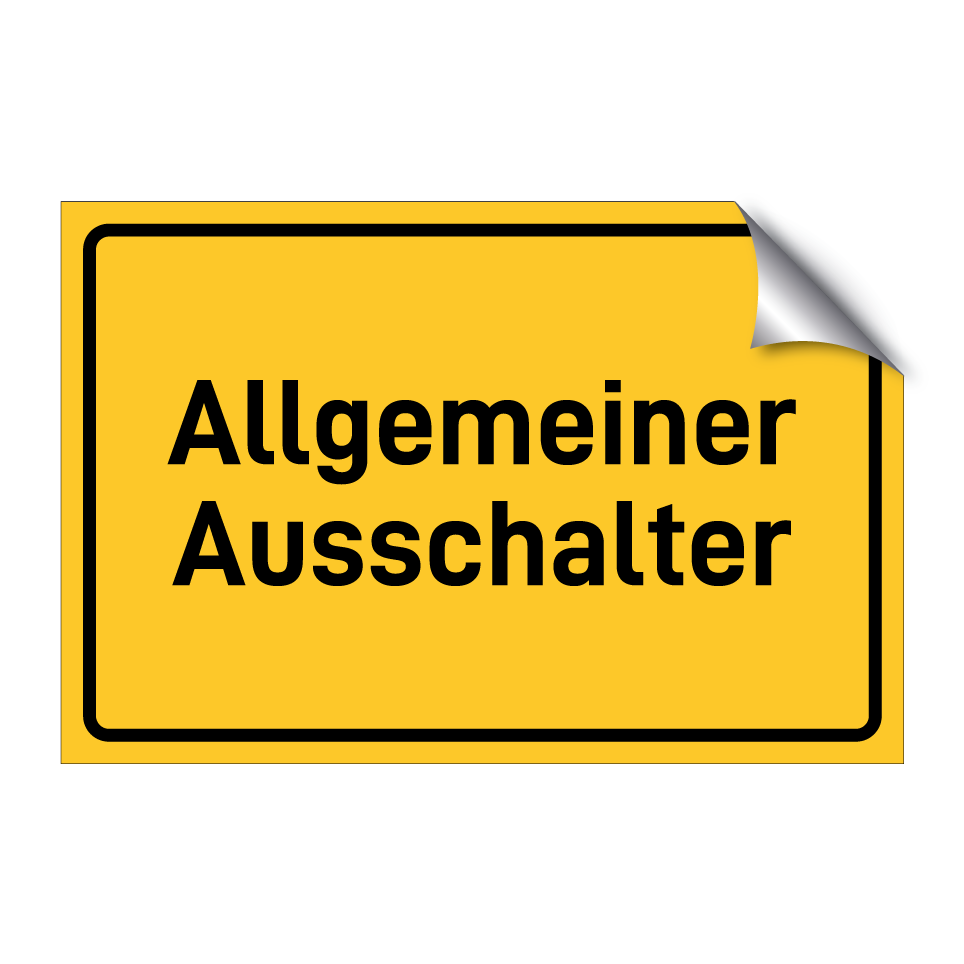Hinweisschild mit dem Text Allgemeiner Ausschalter