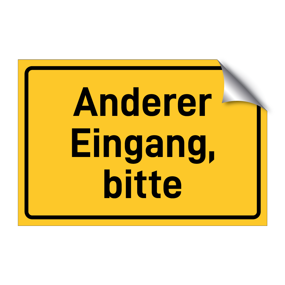 Hinweisschild mit dem Text Anderer Eingang, bitte