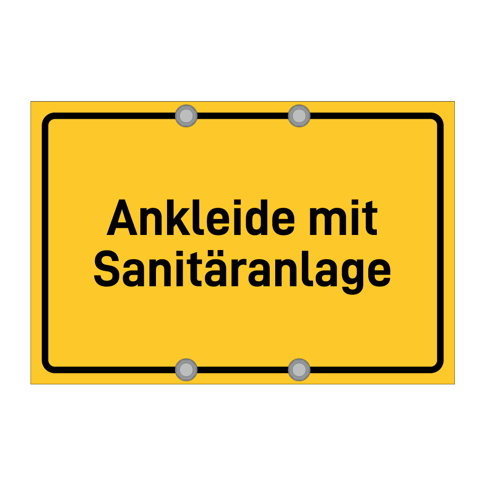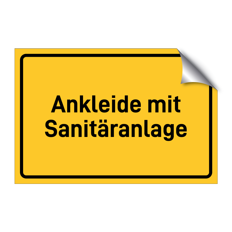 Hinweisschild mit dem Text Ankleide mit Sanitäranlage