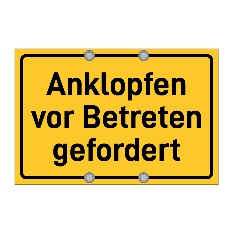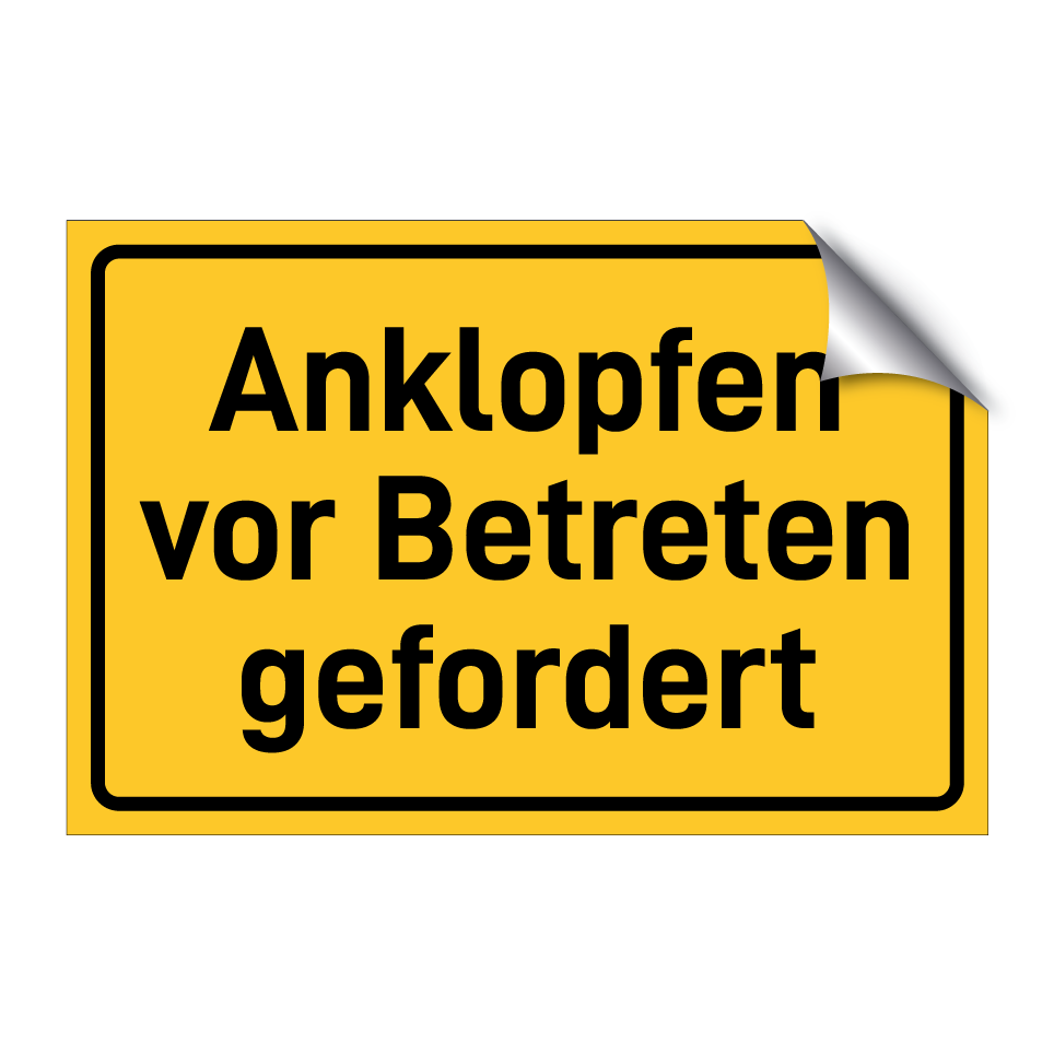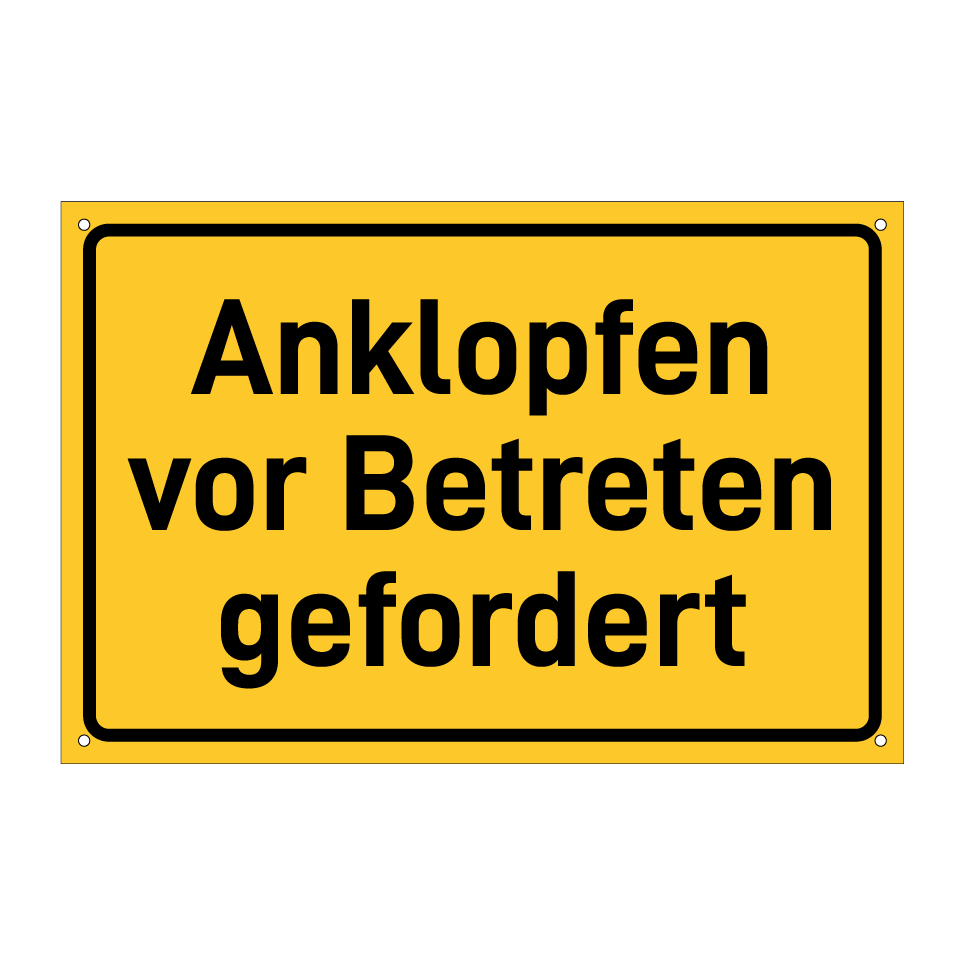 Hinweisschild mit dem Text Anklopfen vor Betreten gefordert