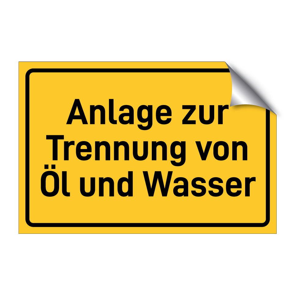 Hinweisschild mit dem Text Anlage zur Trennung von Öl und Wasser