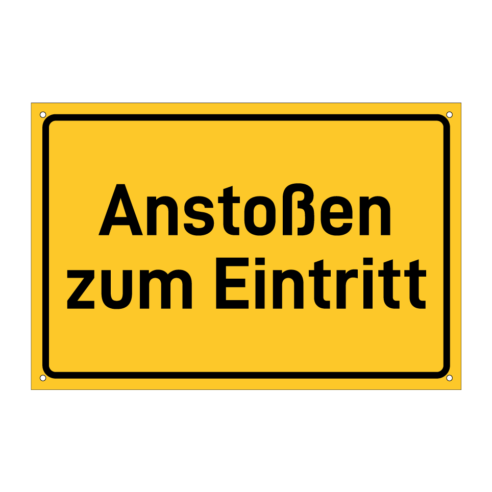 Hinweisschild mit dem Text Anstoßen zum Eintritt
