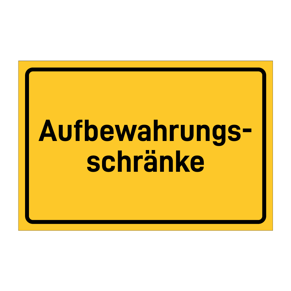 Hinweisschild mit dem Text Aufbewahrungs- schränke