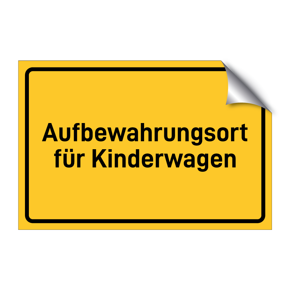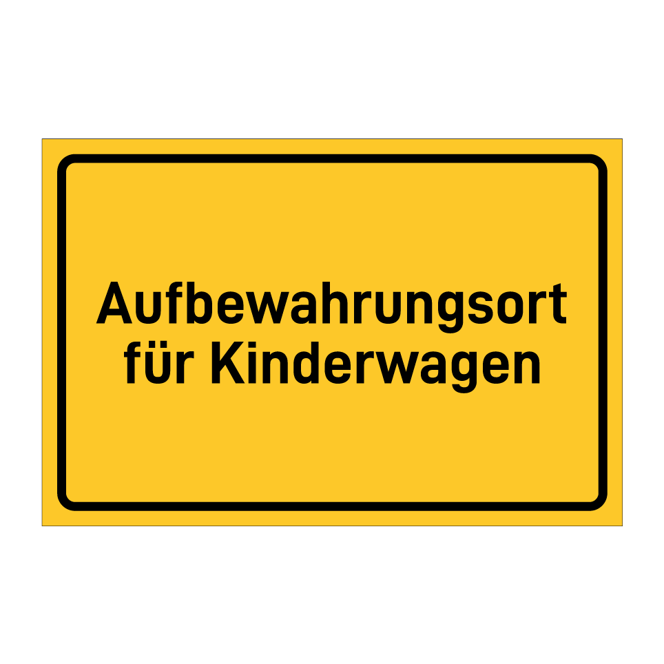 Hinweisschild mit dem Text Aufbewahrungsort für Kinderwagen