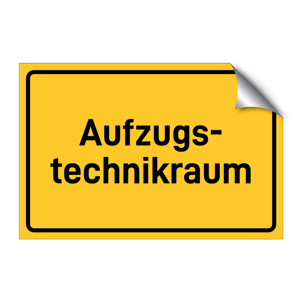 Hinweisschild mit dem Text Aufzugs- technikraum