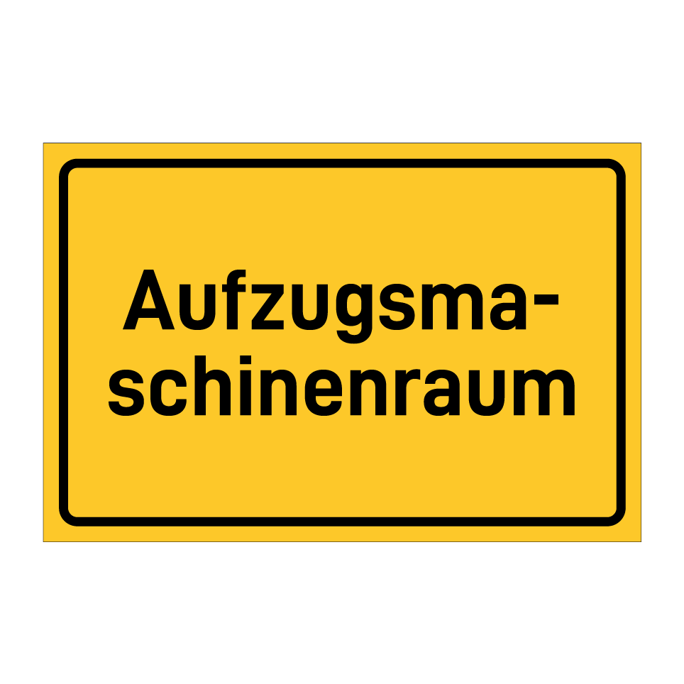 Hinweisschild mit dem Text Aufzugsma- schinenraum