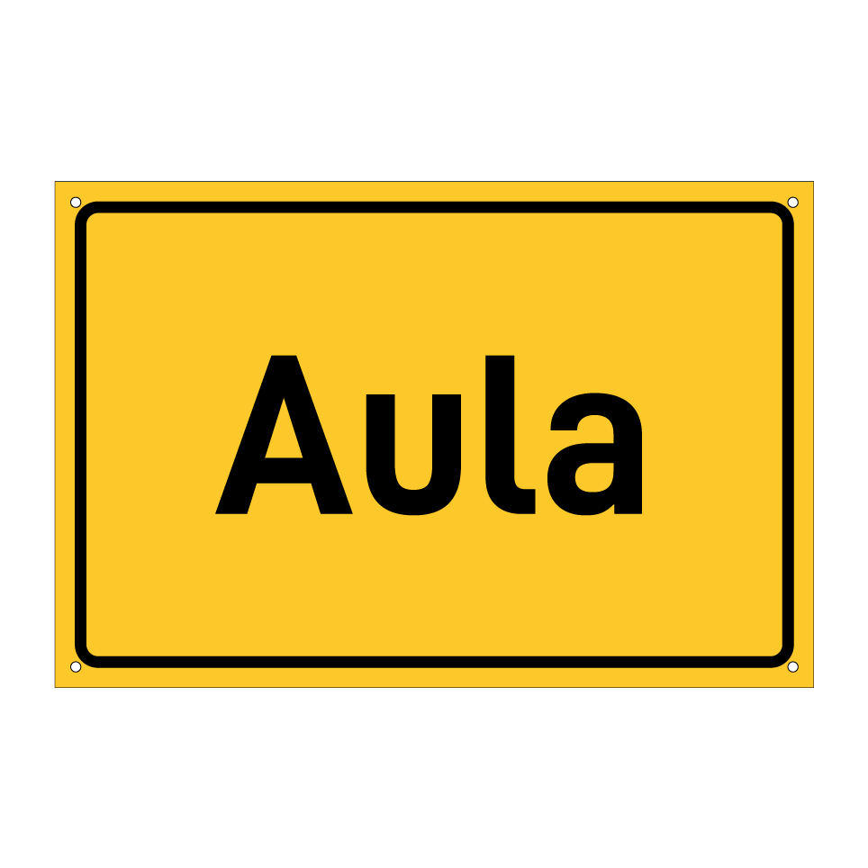 Hinweisschild mit dem Text Aula