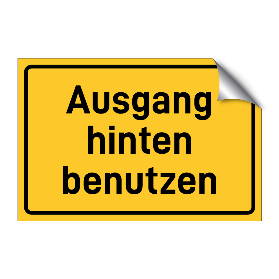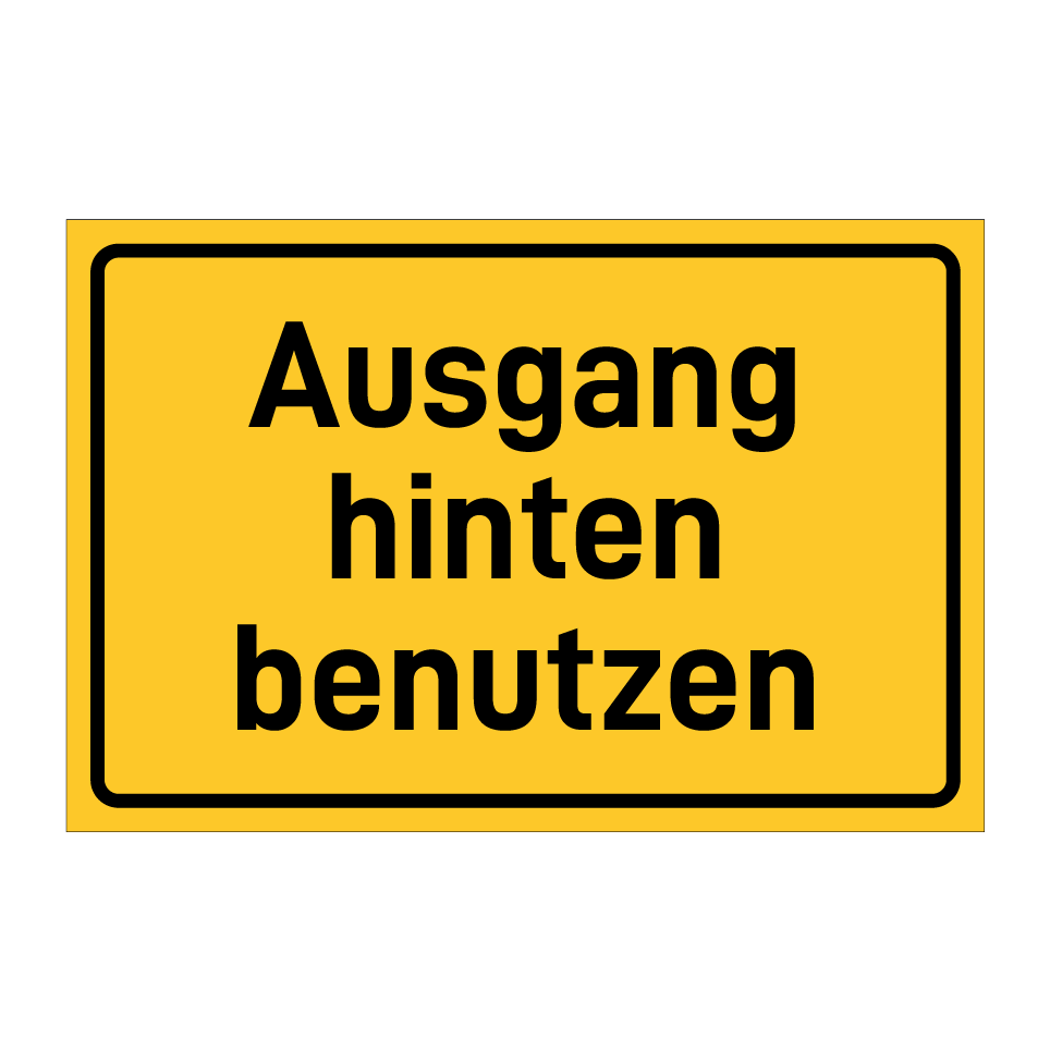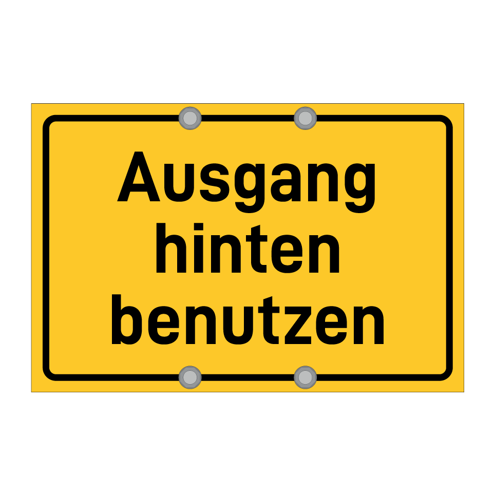 Hinweisschild mit dem Text Ausgang hinten benutzen