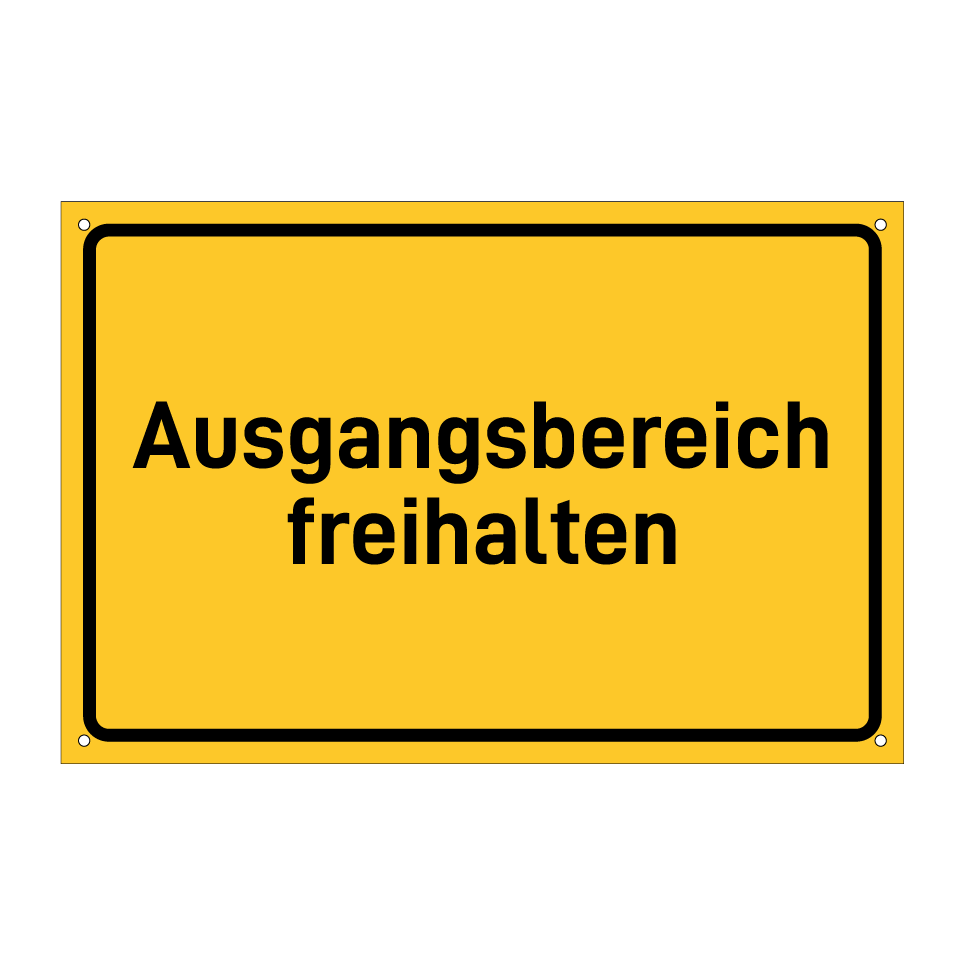Hinweisschild mit dem Text Ausgangsbereich freihalten