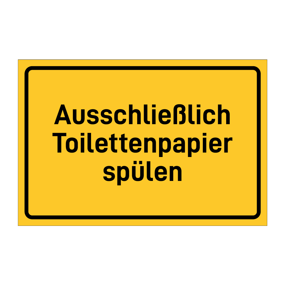 Hinweisschild mit dem Text Ausschließlich Toilettenpapier spülen