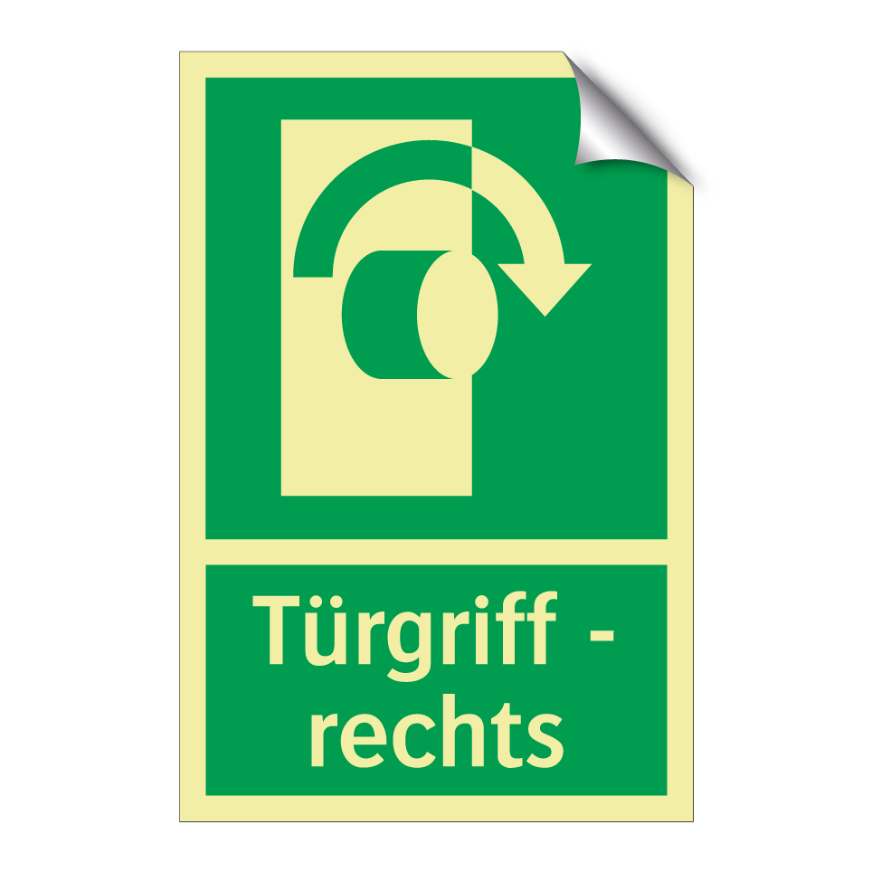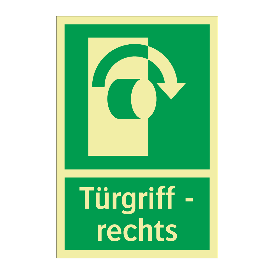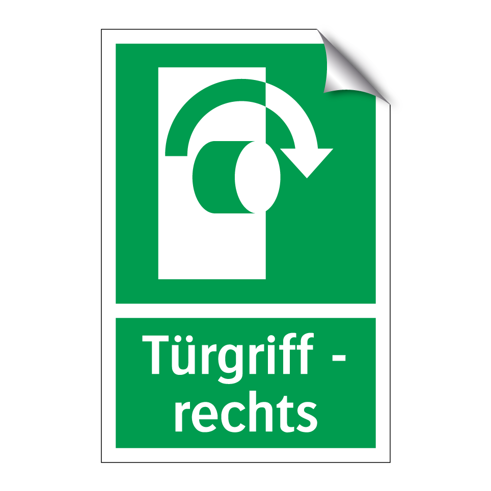 Rettungsschild mit dem Text Türgriff - rechts