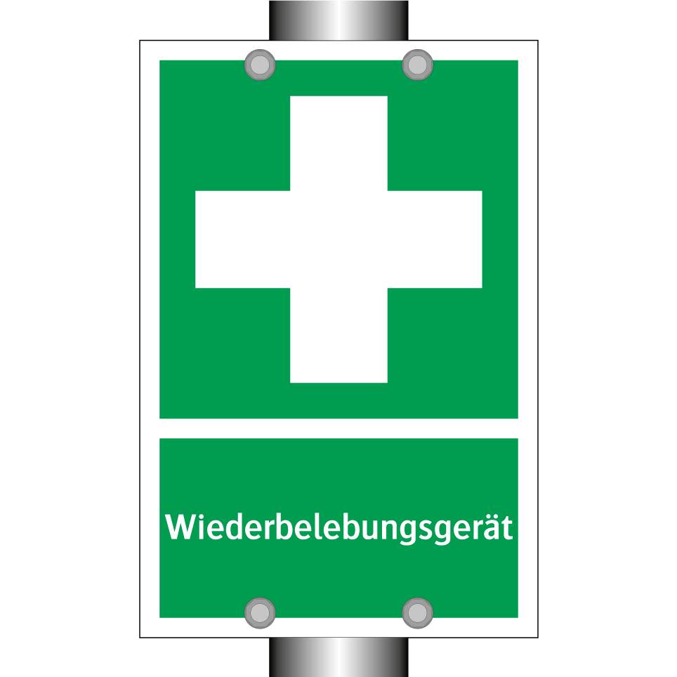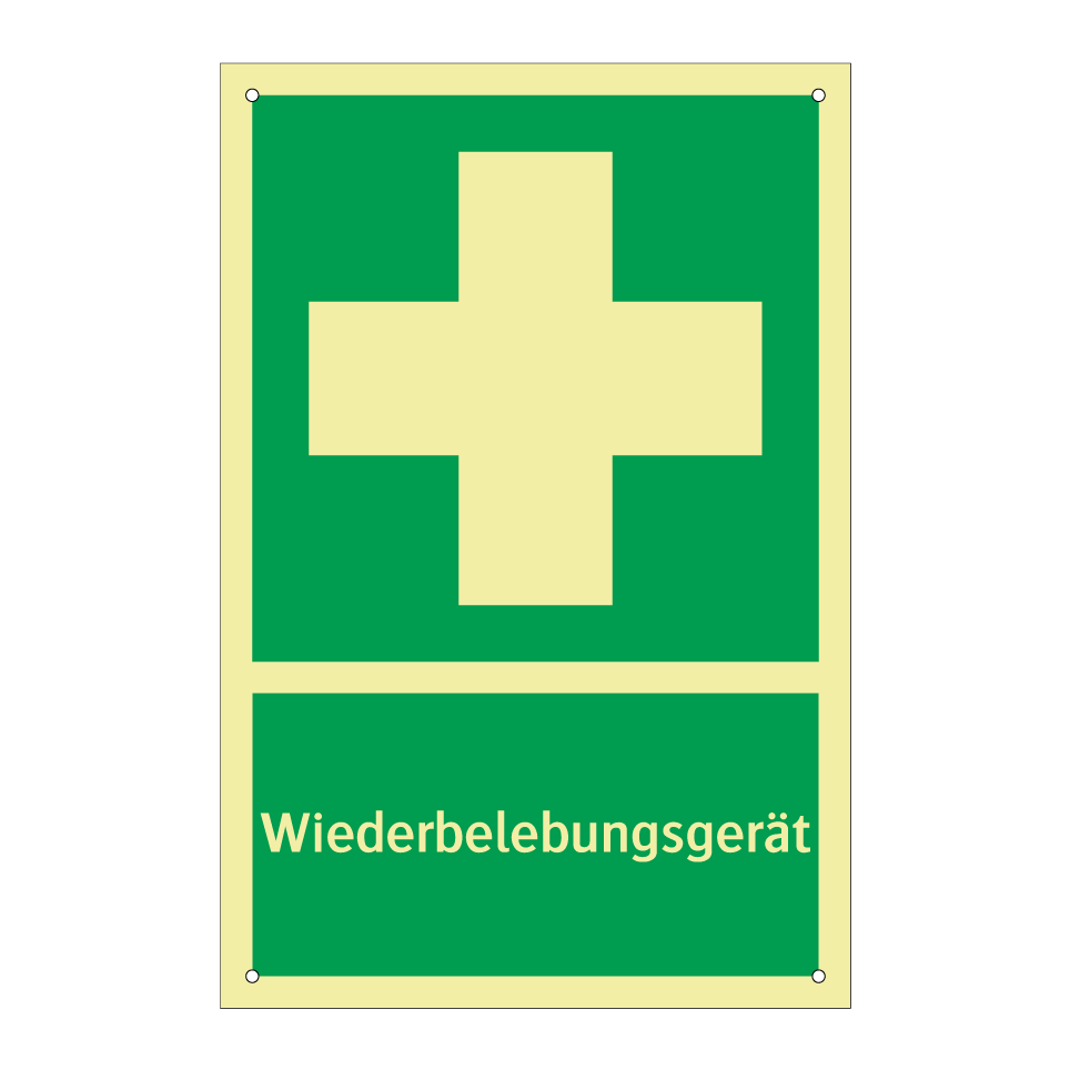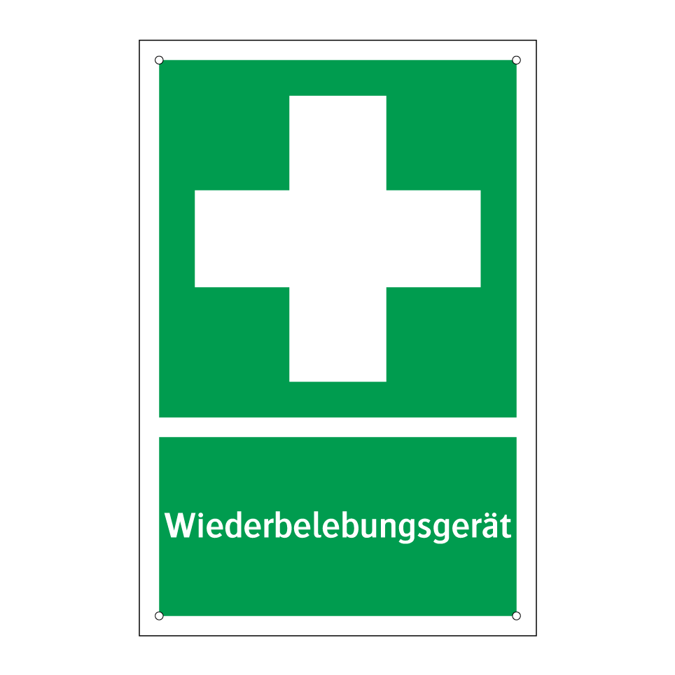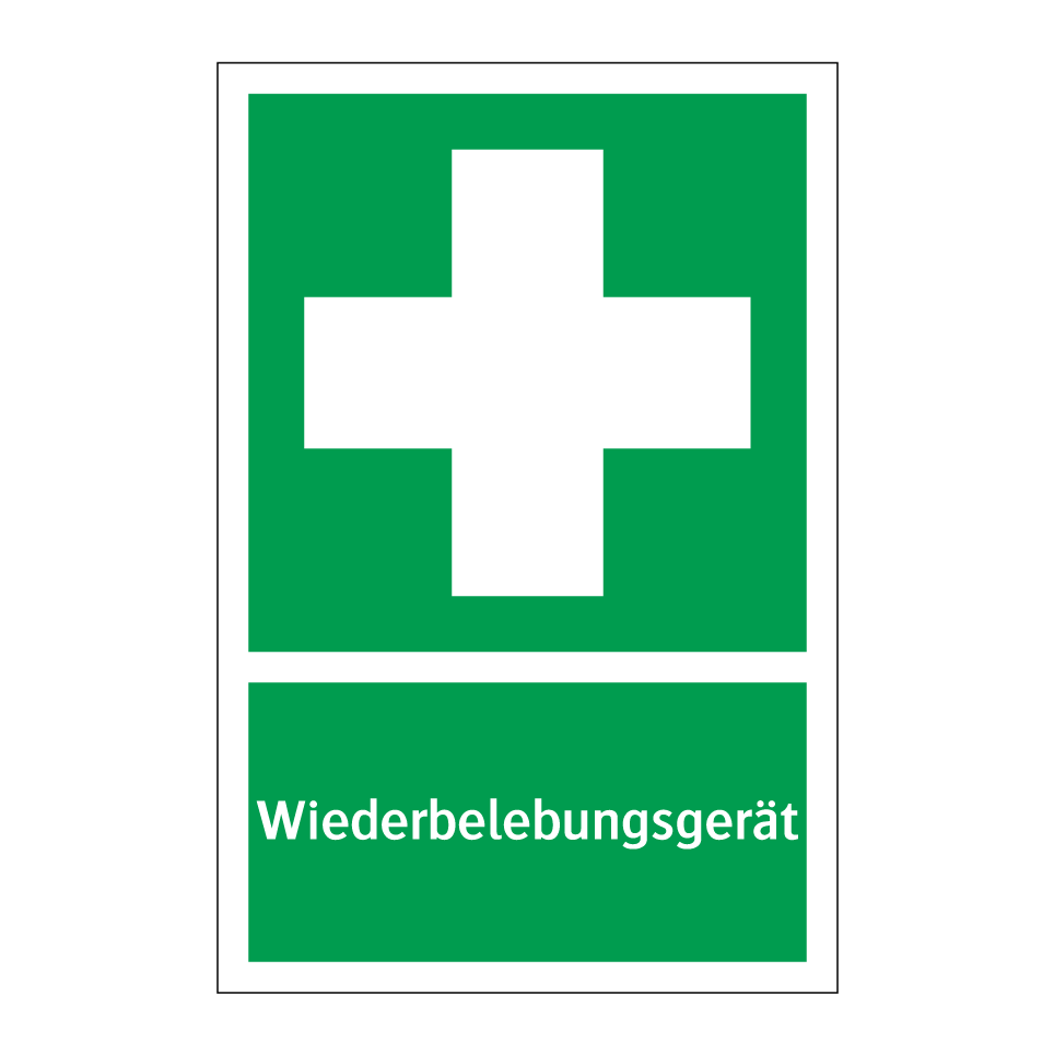 Rettungsschild mit dem Text Wiederbelebungsgerät