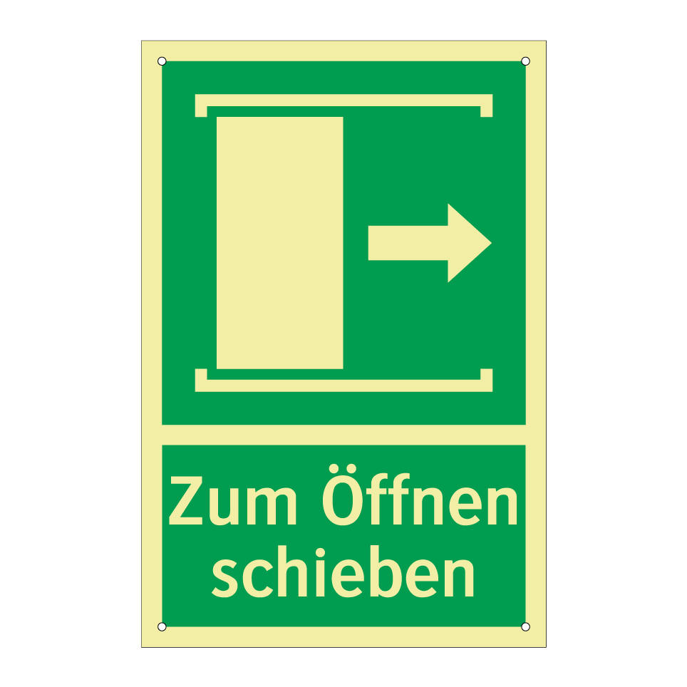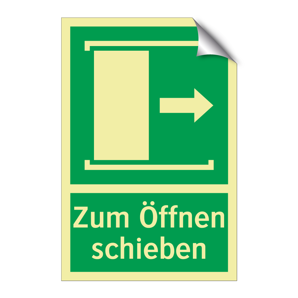 Rettungsschild mit dem Text Zum Öffnen schieben