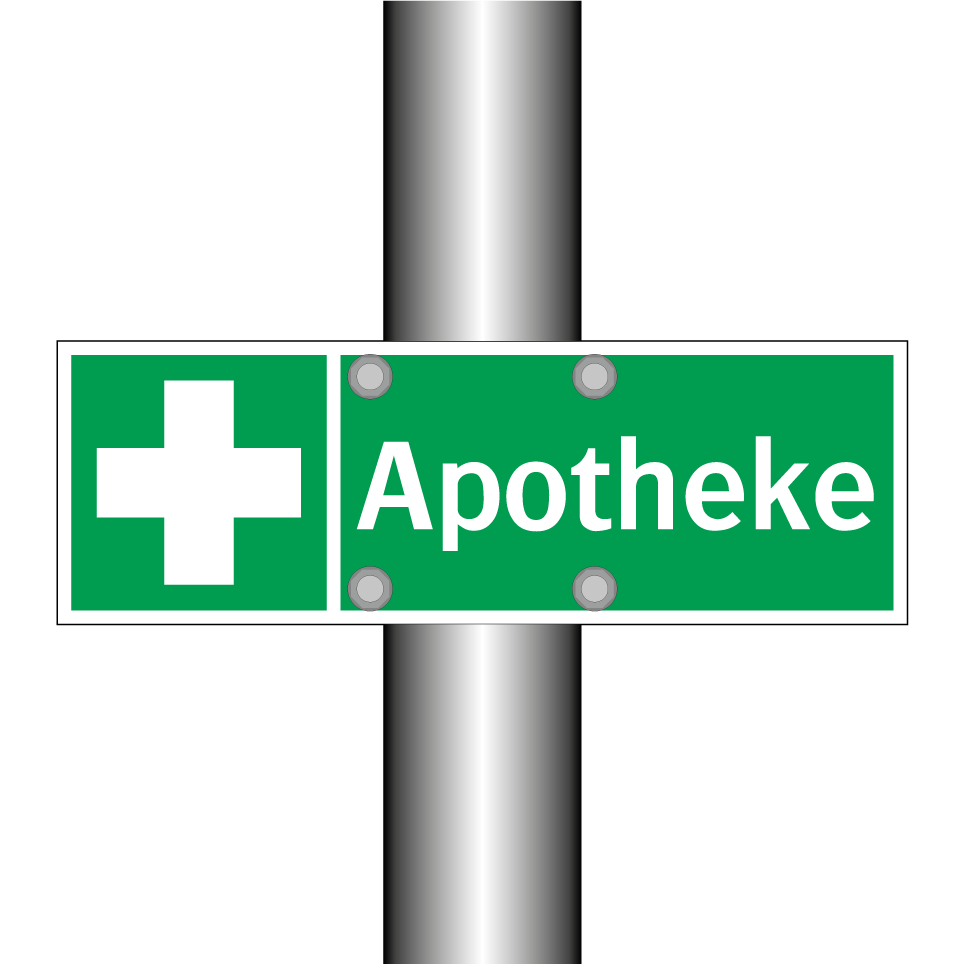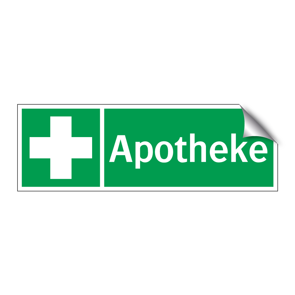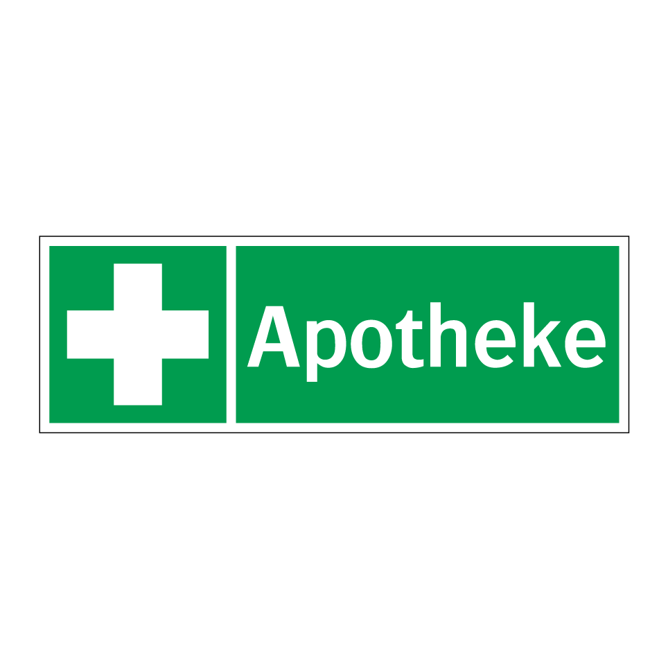 Rettungsschild mit dem Text Apotheke