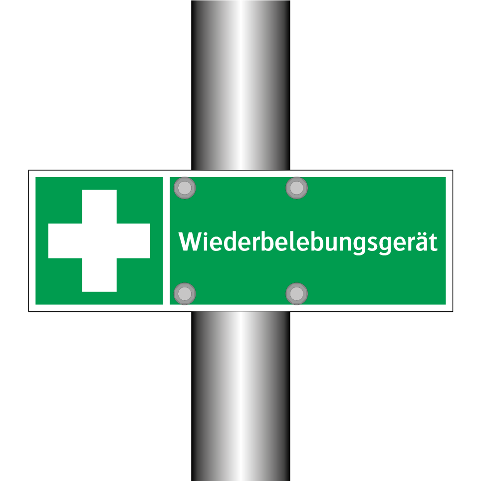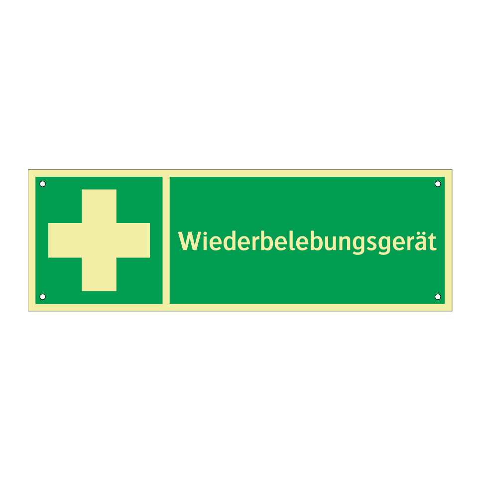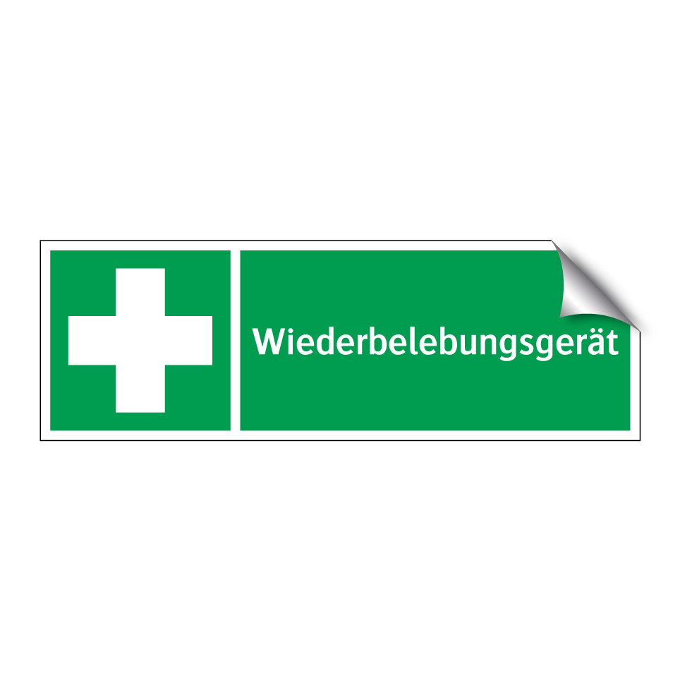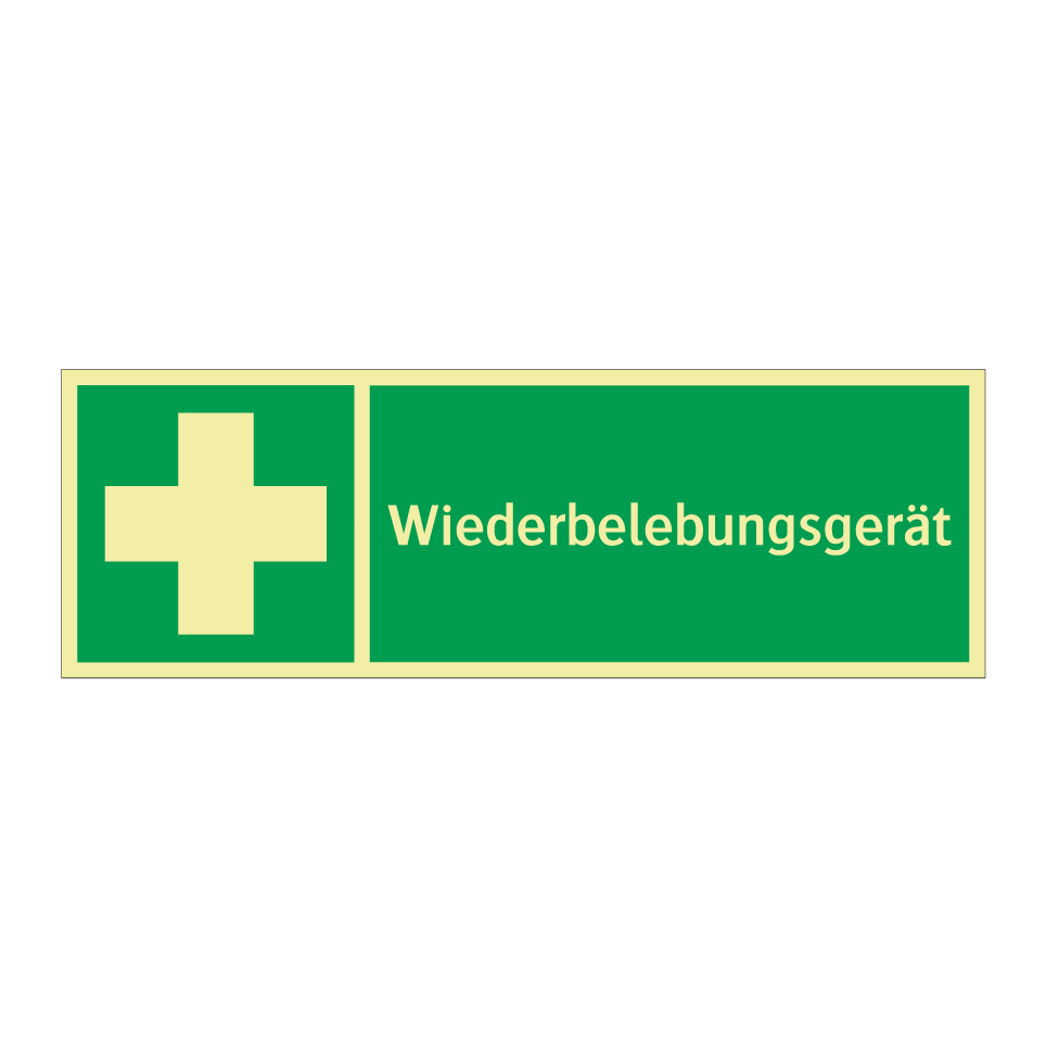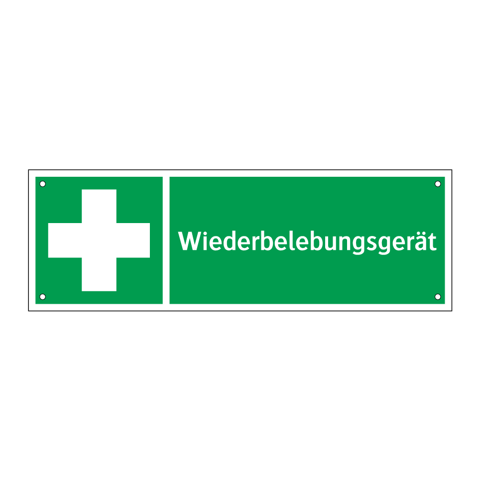 Rettungsschild mit dem Text Wiederbelebungsgerät