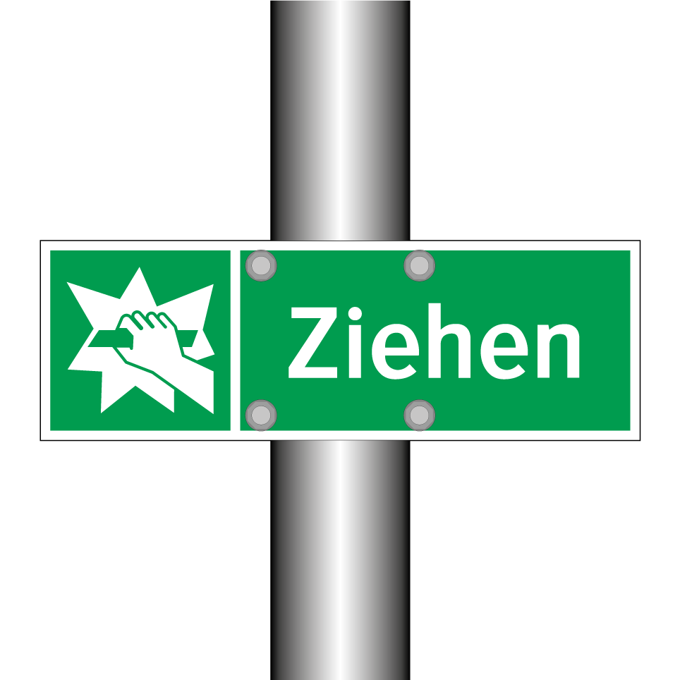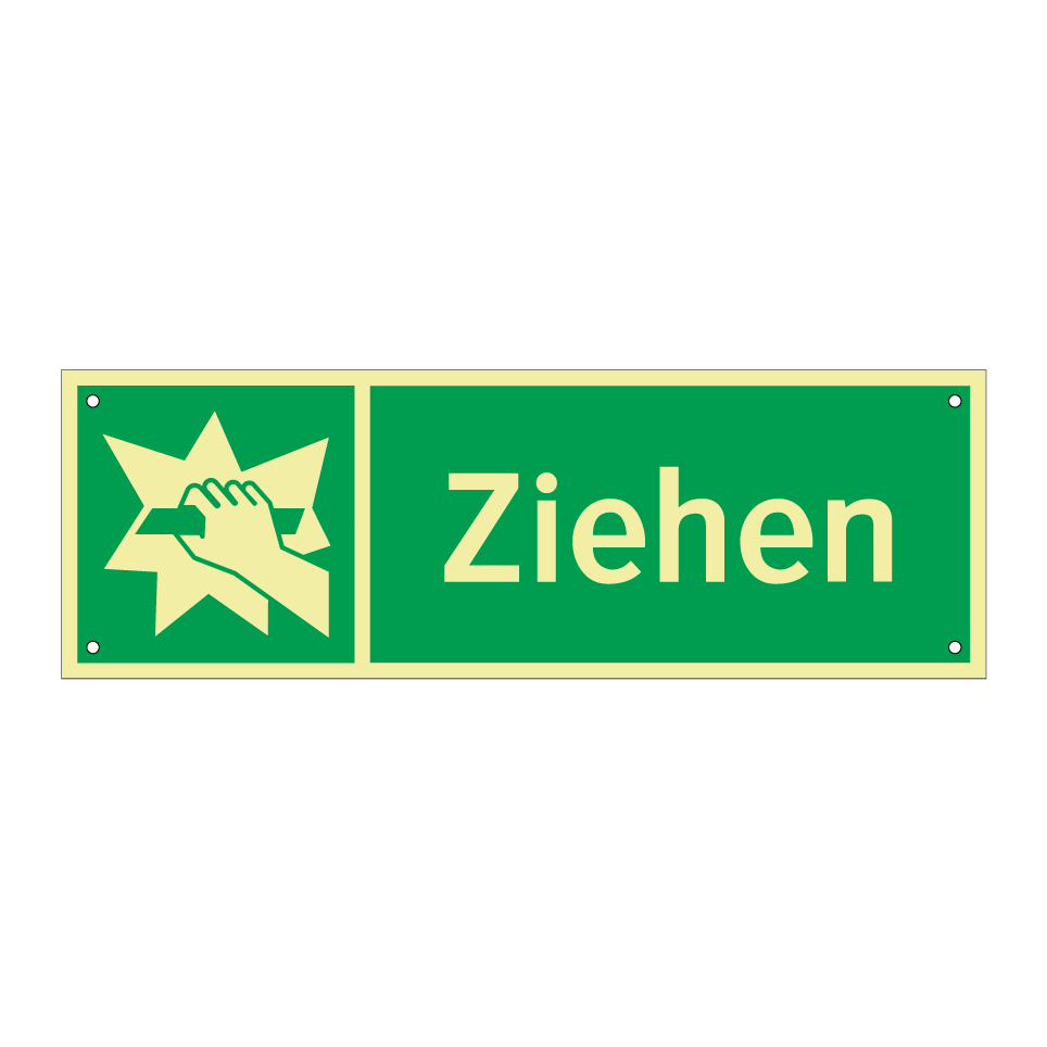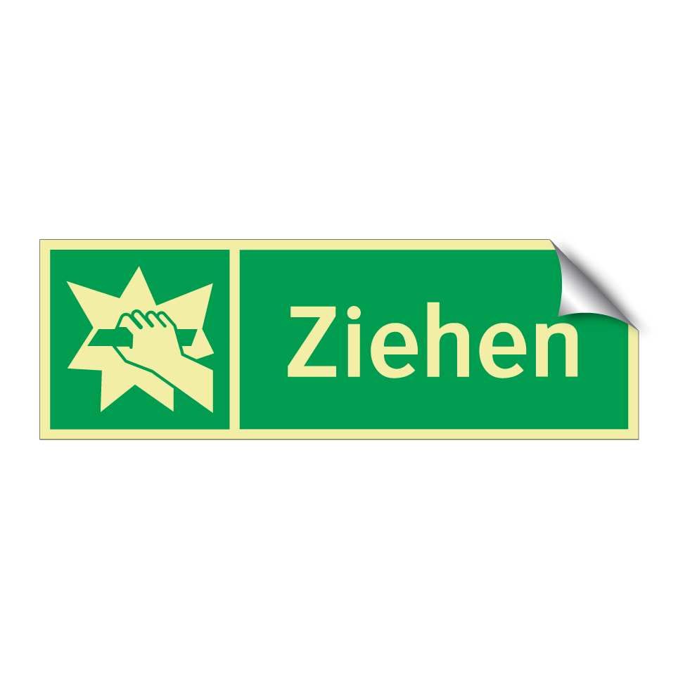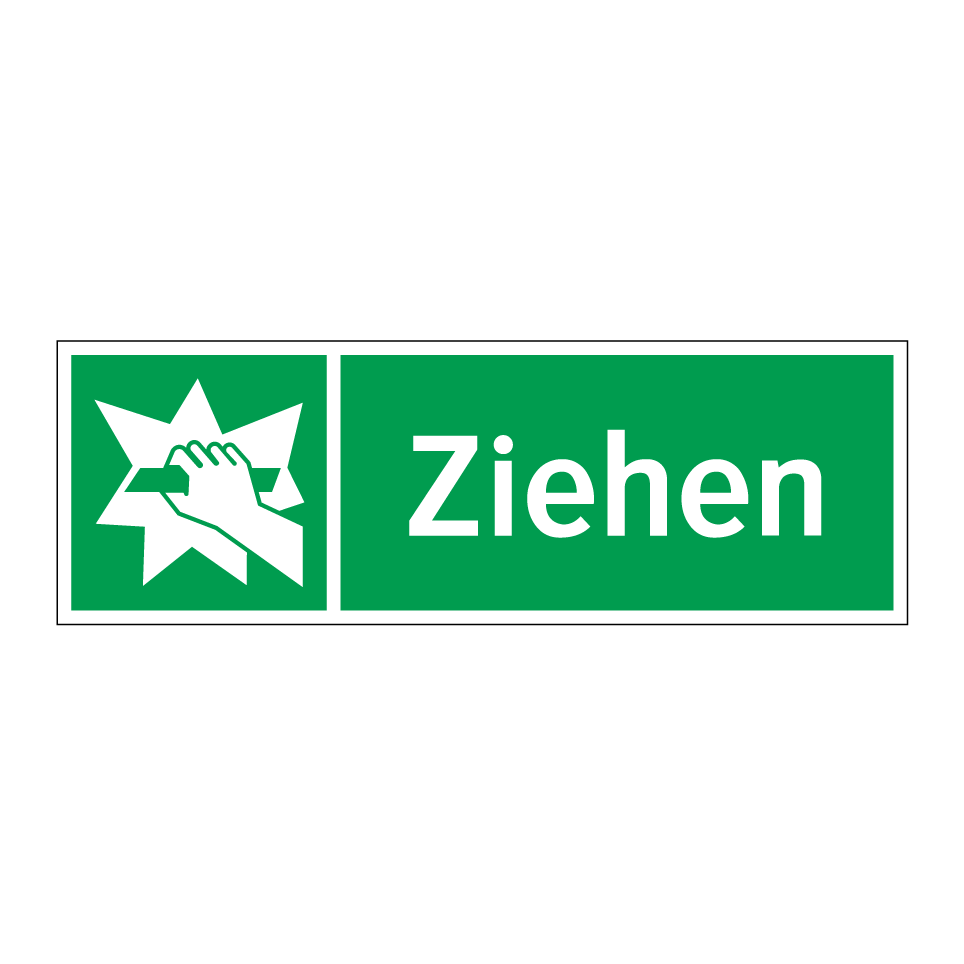 Rettungsschild mit dem Text Ziehen