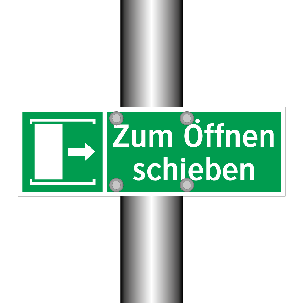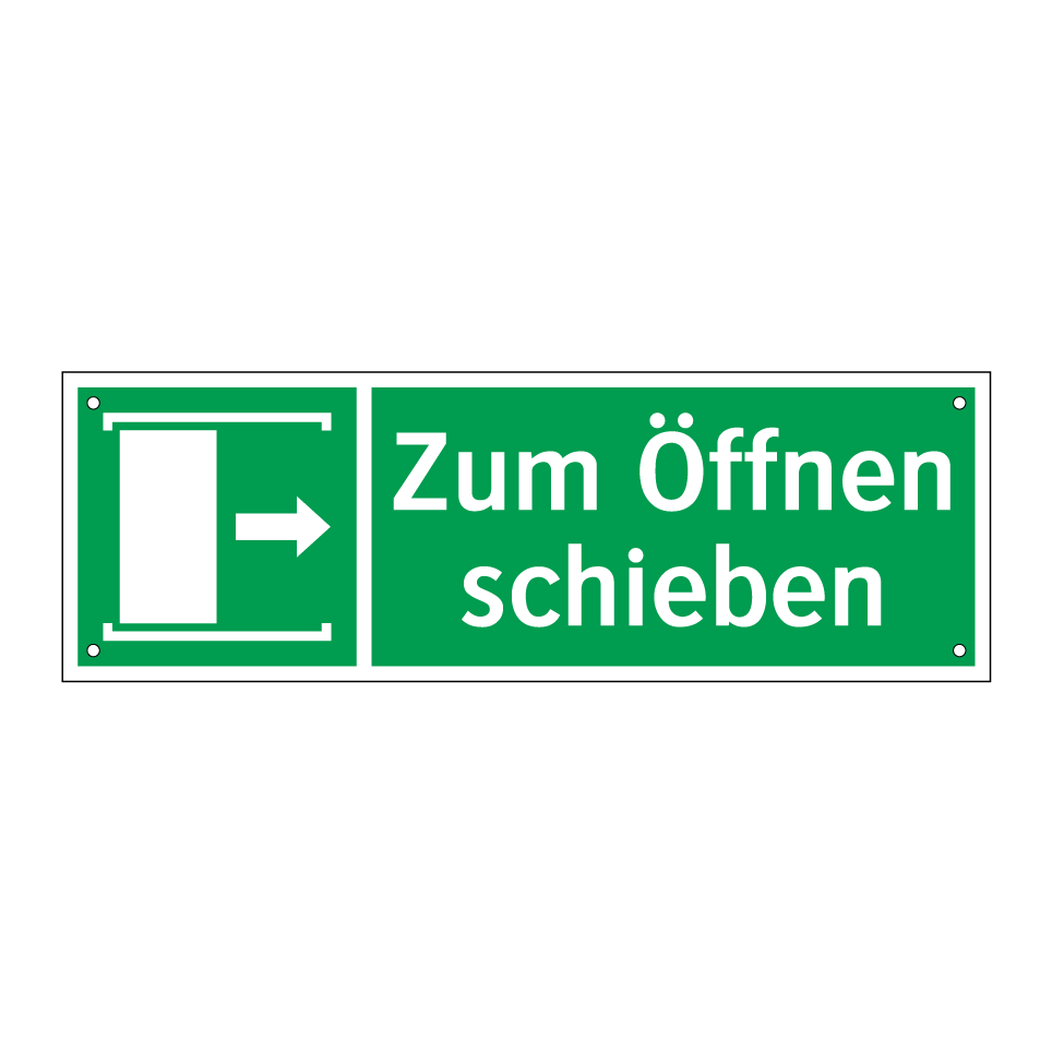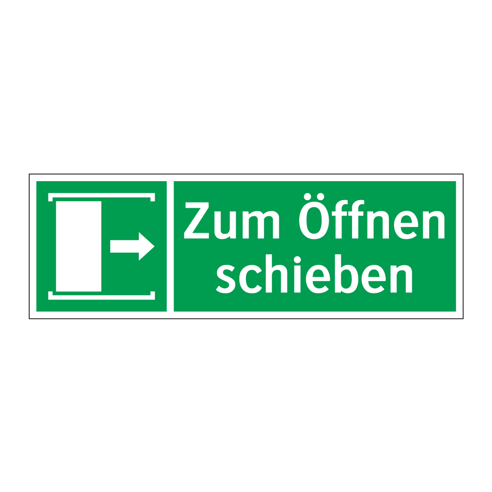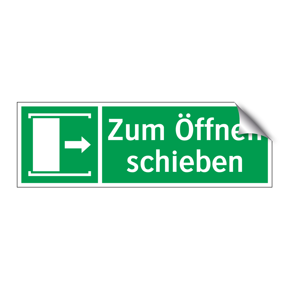 Rettungsschild mit dem Text Zum Öffnen schieben