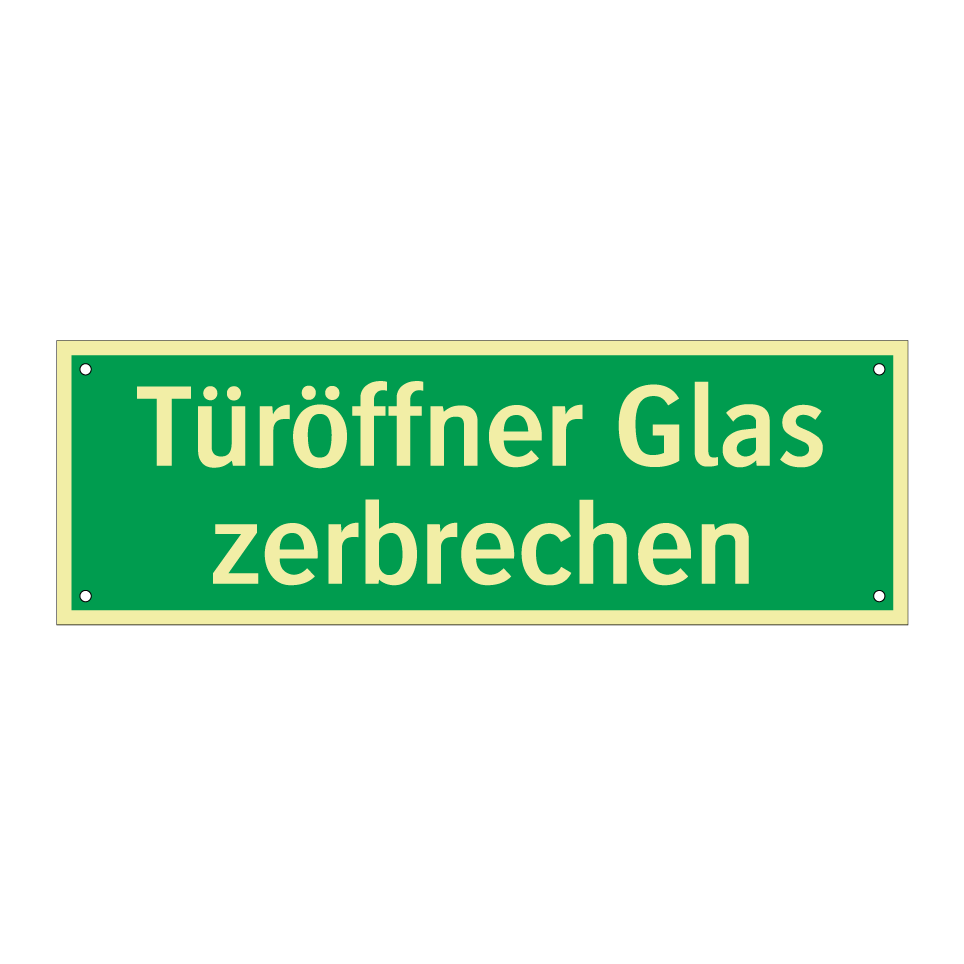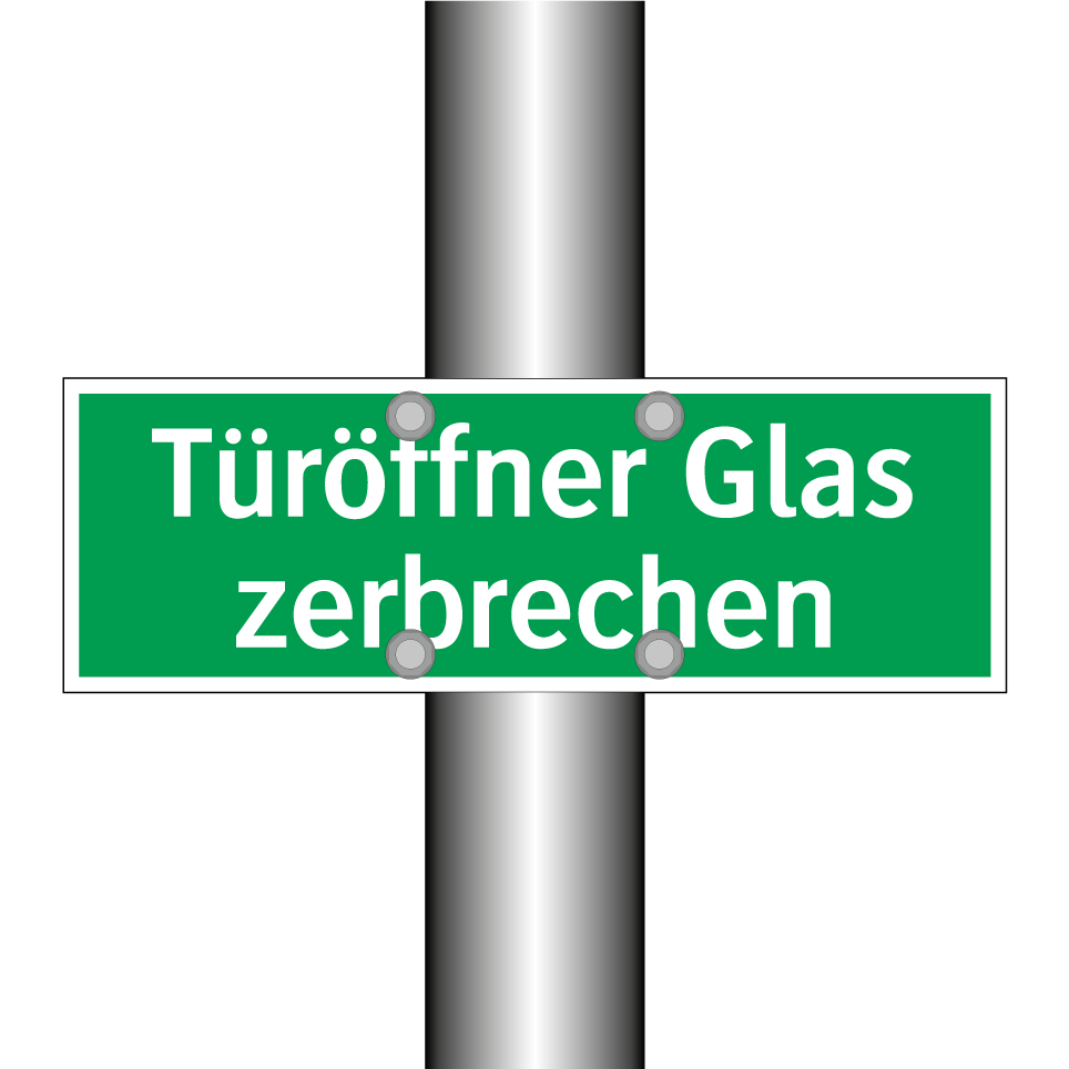 Rettungsschild mit dem Text Türöffner Glas zerbrechen