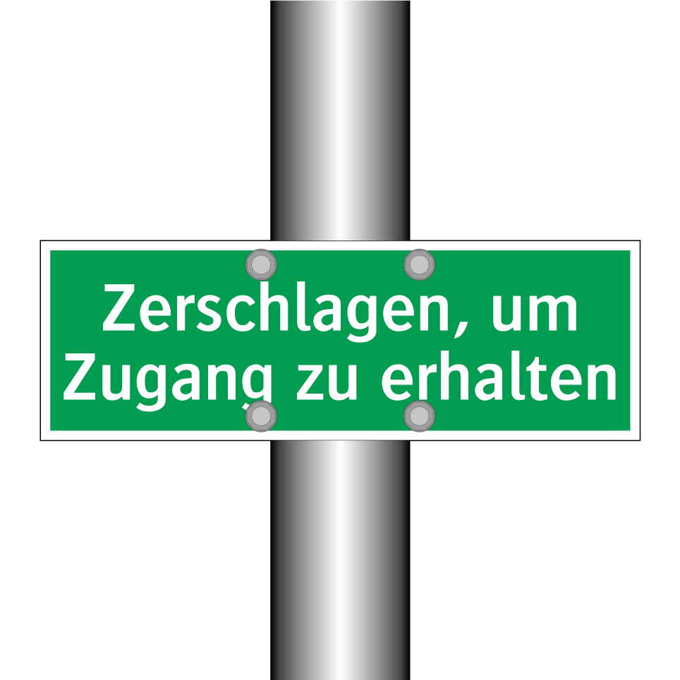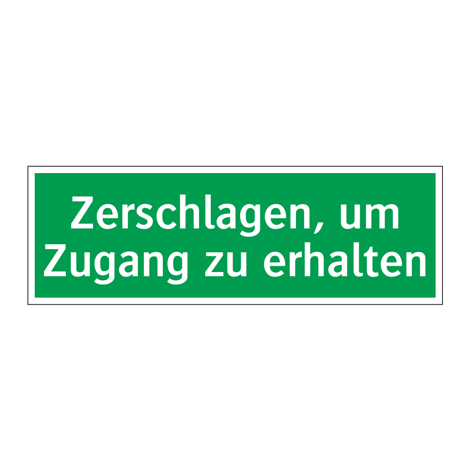 Rettungsschild mit dem Text Zerschlagen, um Zugang zu erhalten