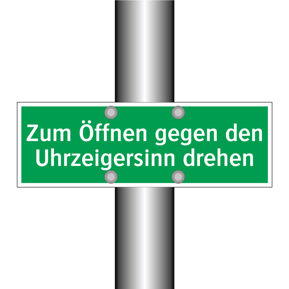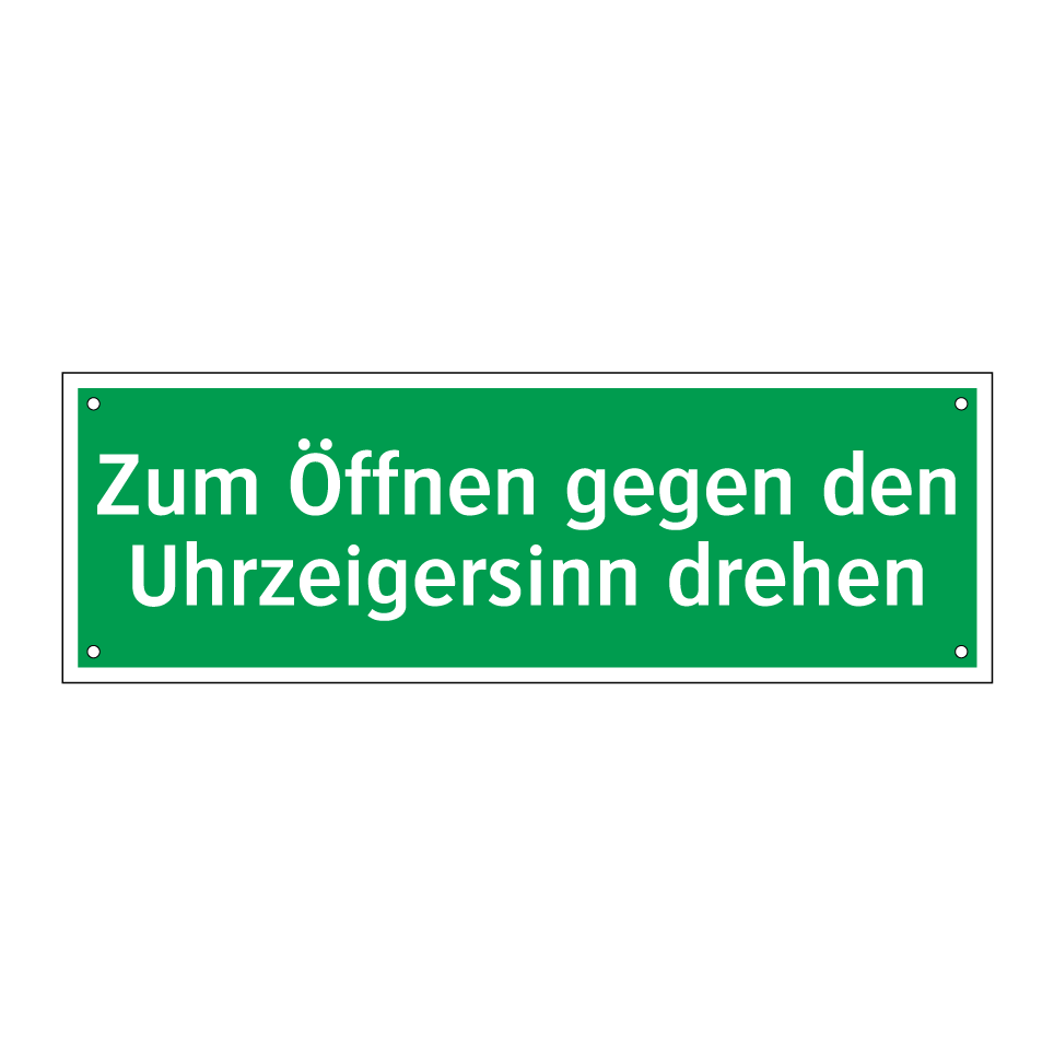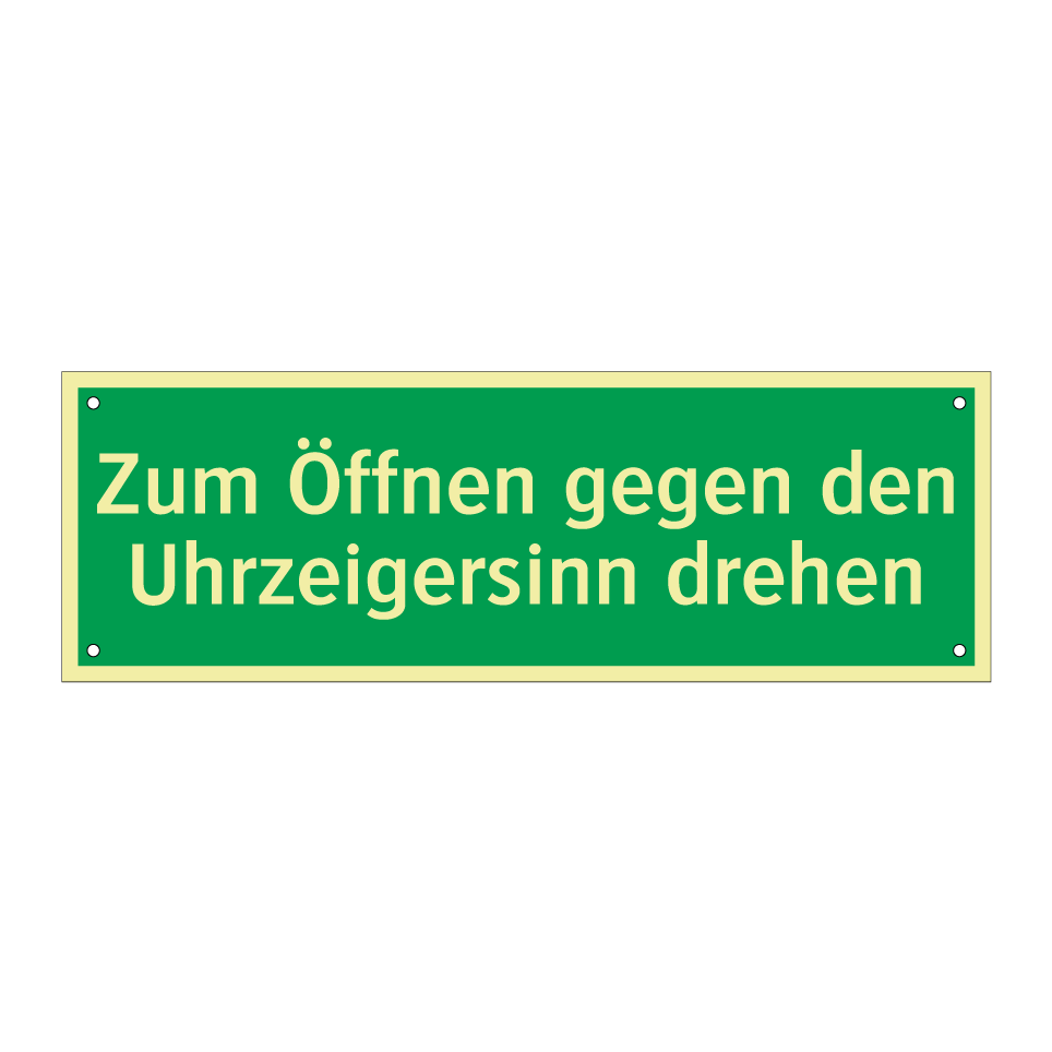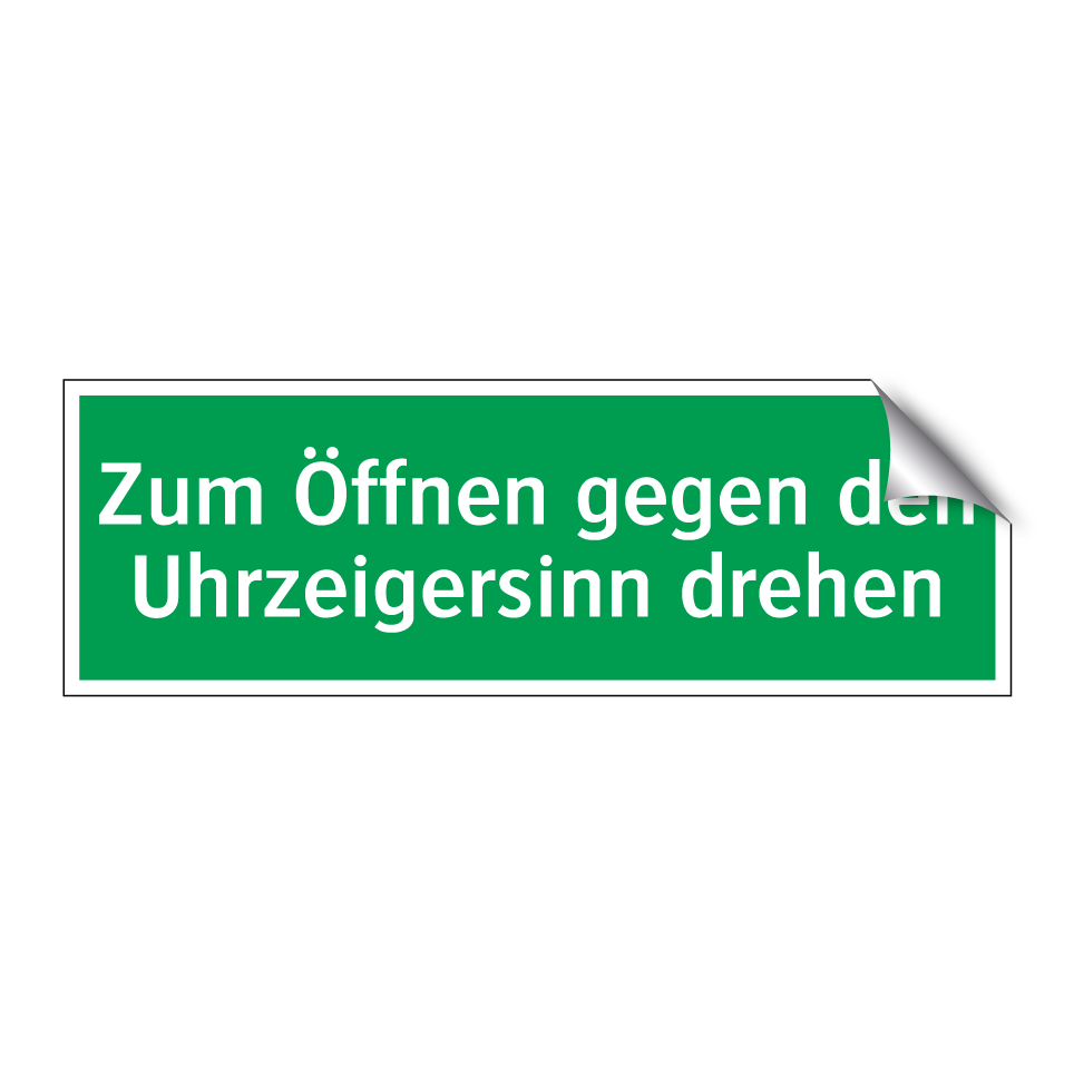 Rettungsschild mit dem Text Zum Öffnen gegen den Uhrzeigersinn drehen