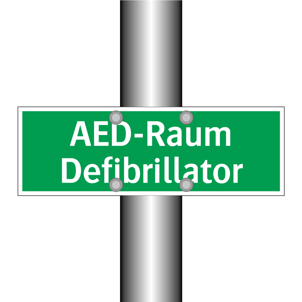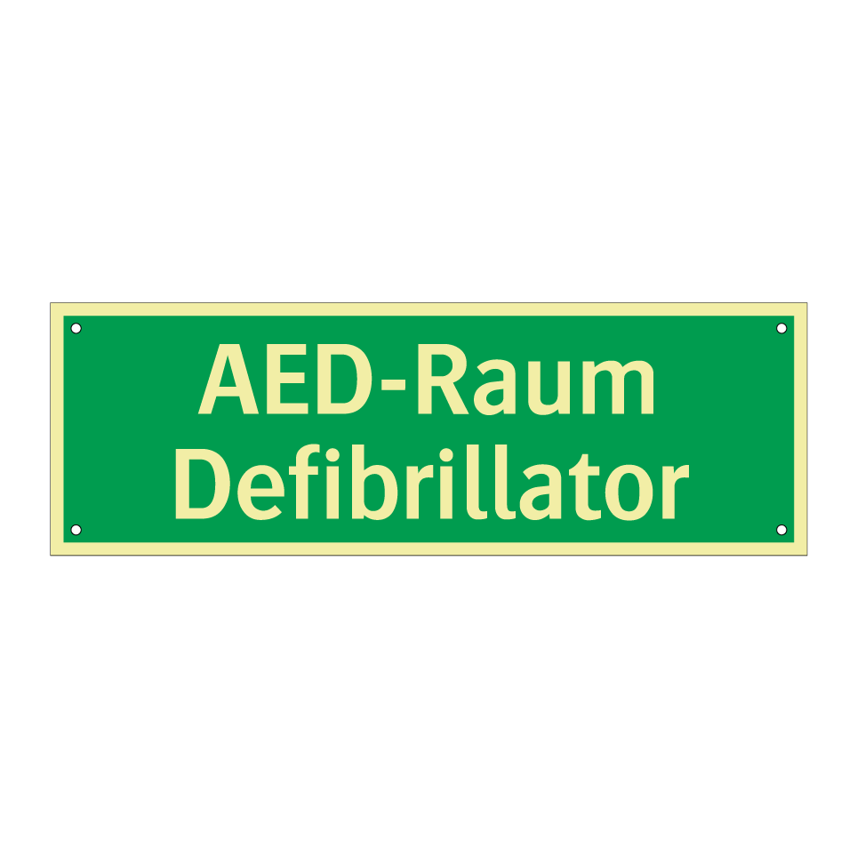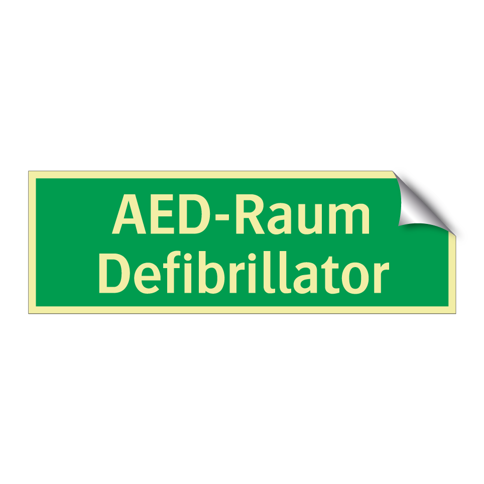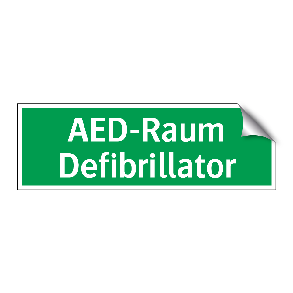 Rettungsschild mit dem Text AED-Raum Defibrillator