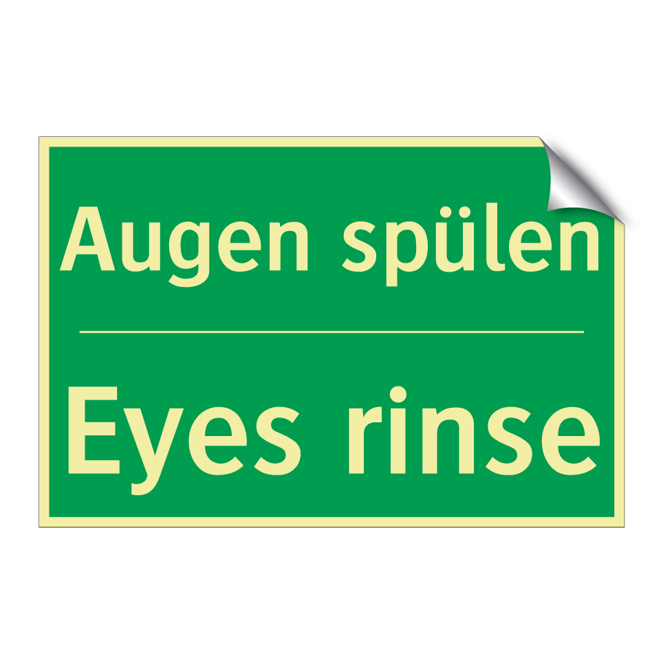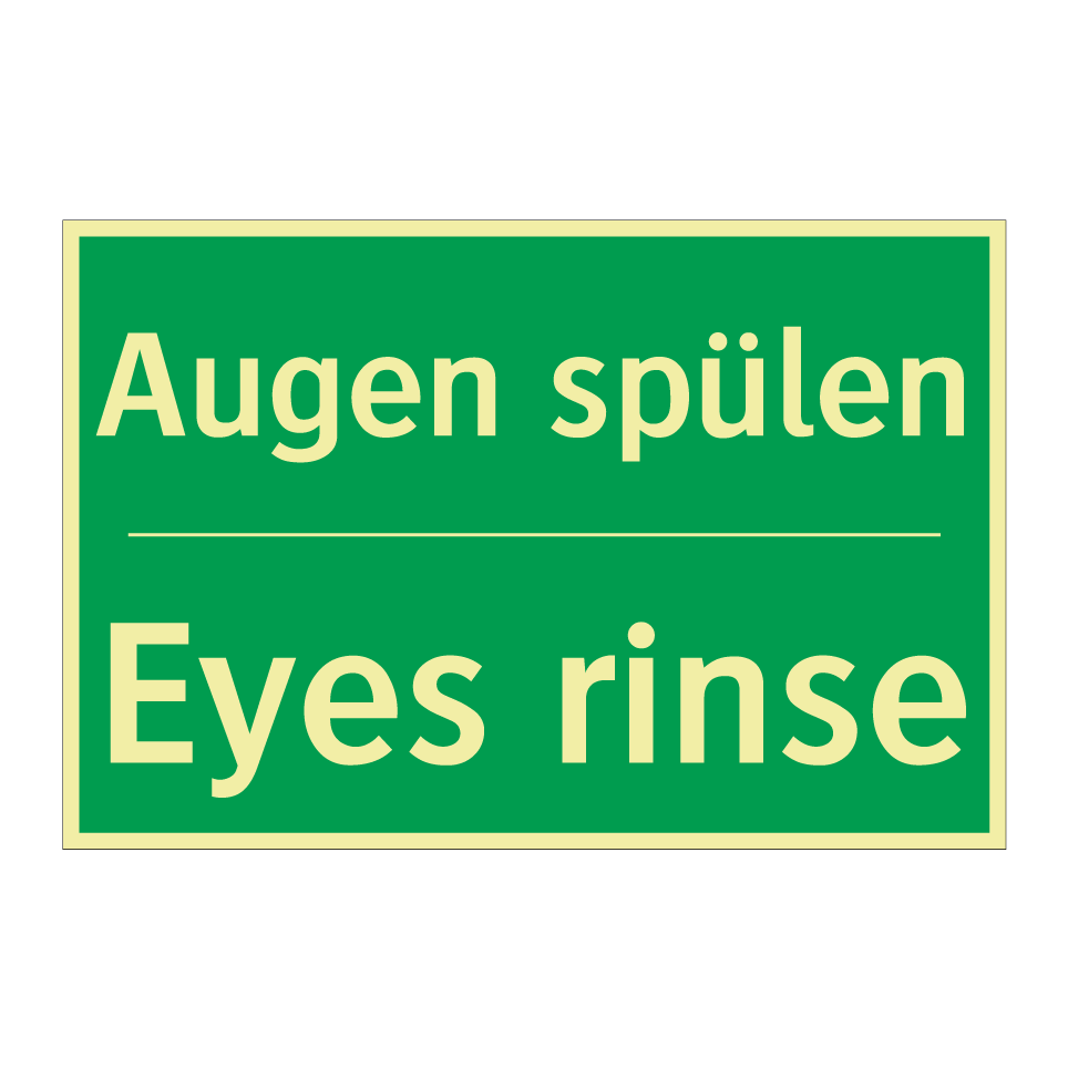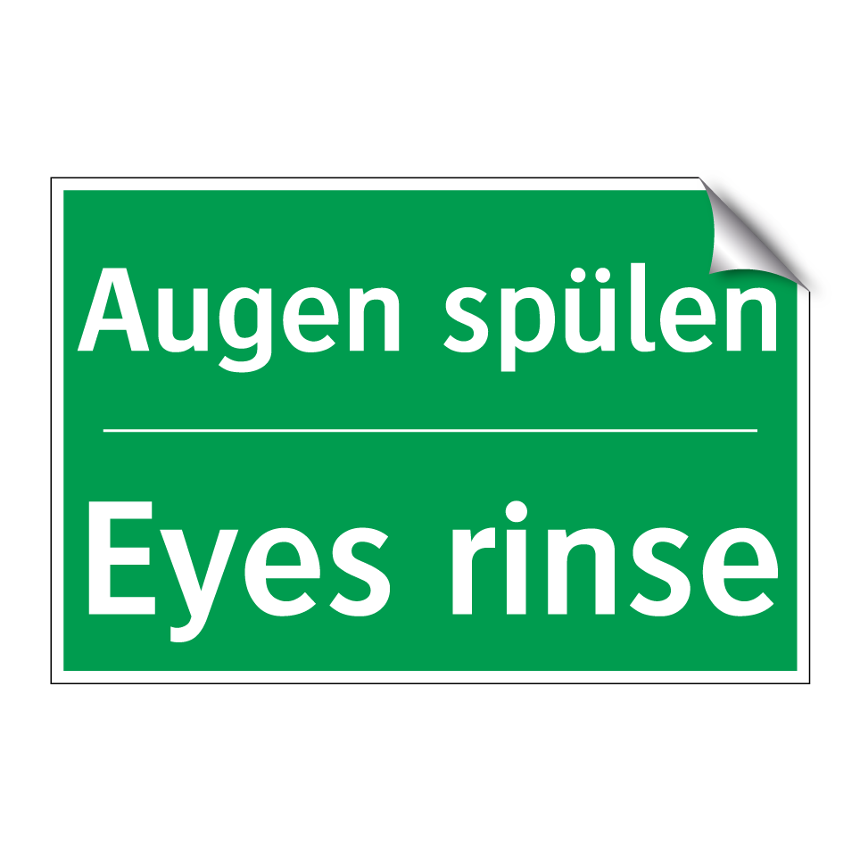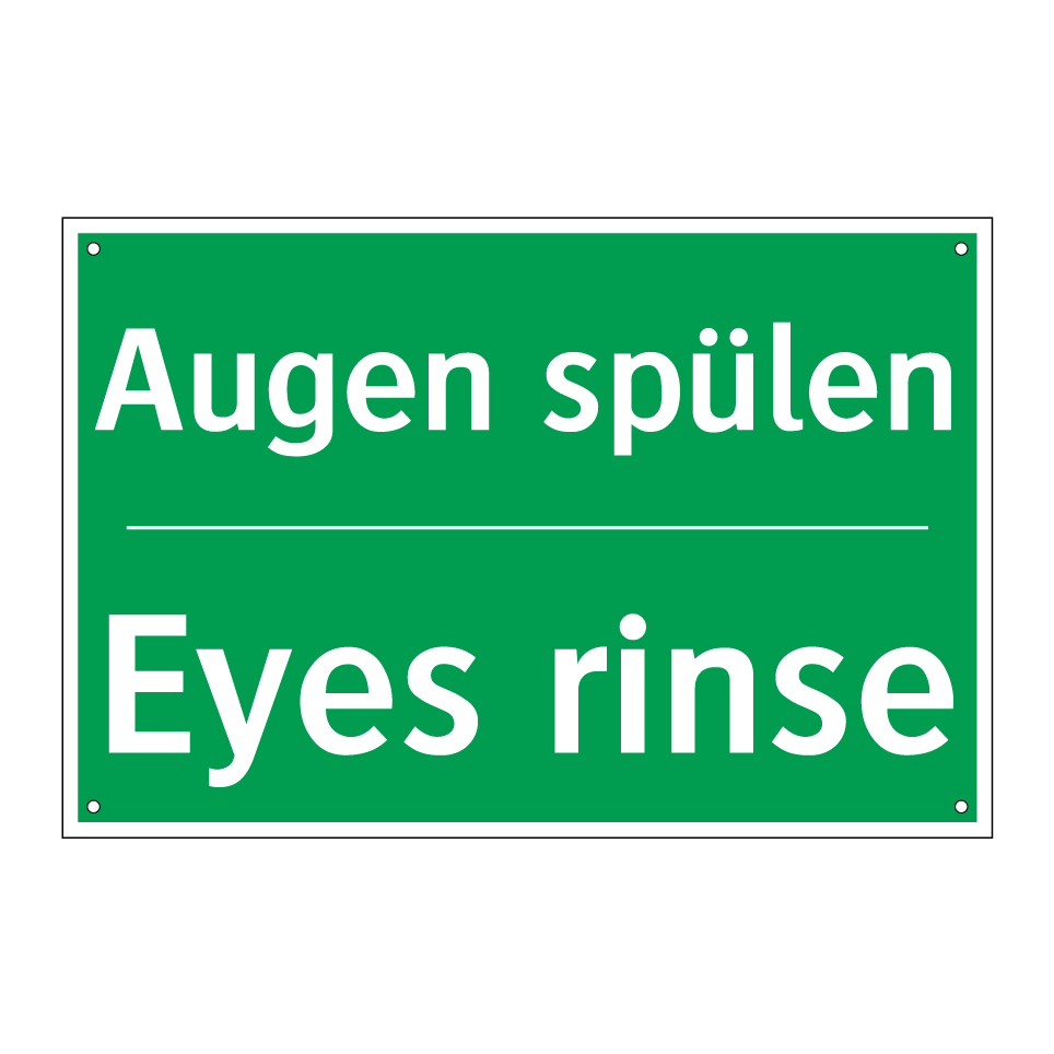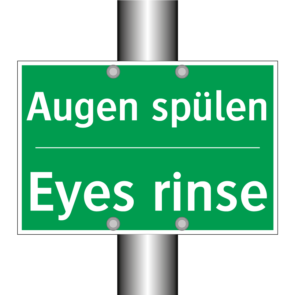 Zweisprachiges Rettungsschild mit deutschem Text Augen spülen und englischem Text Eyes rinse