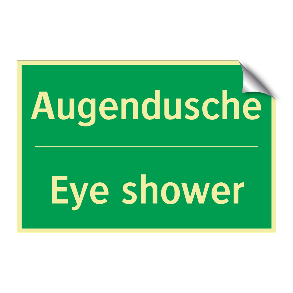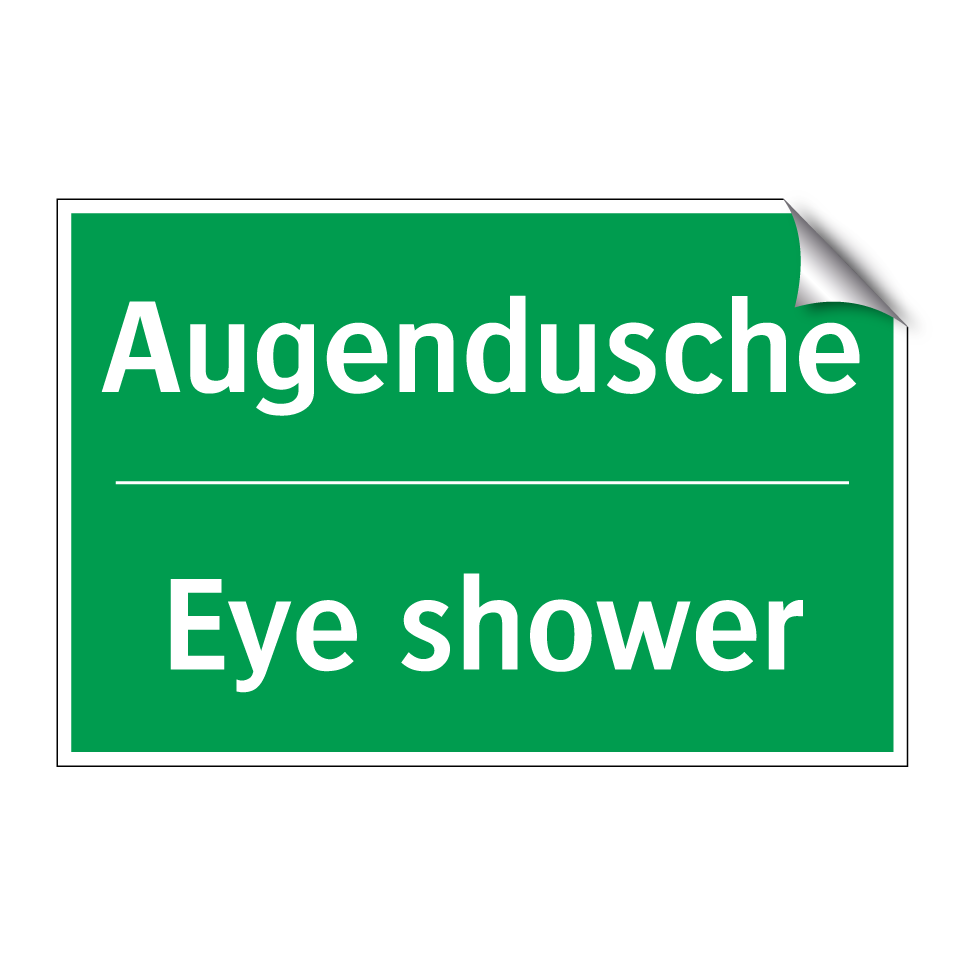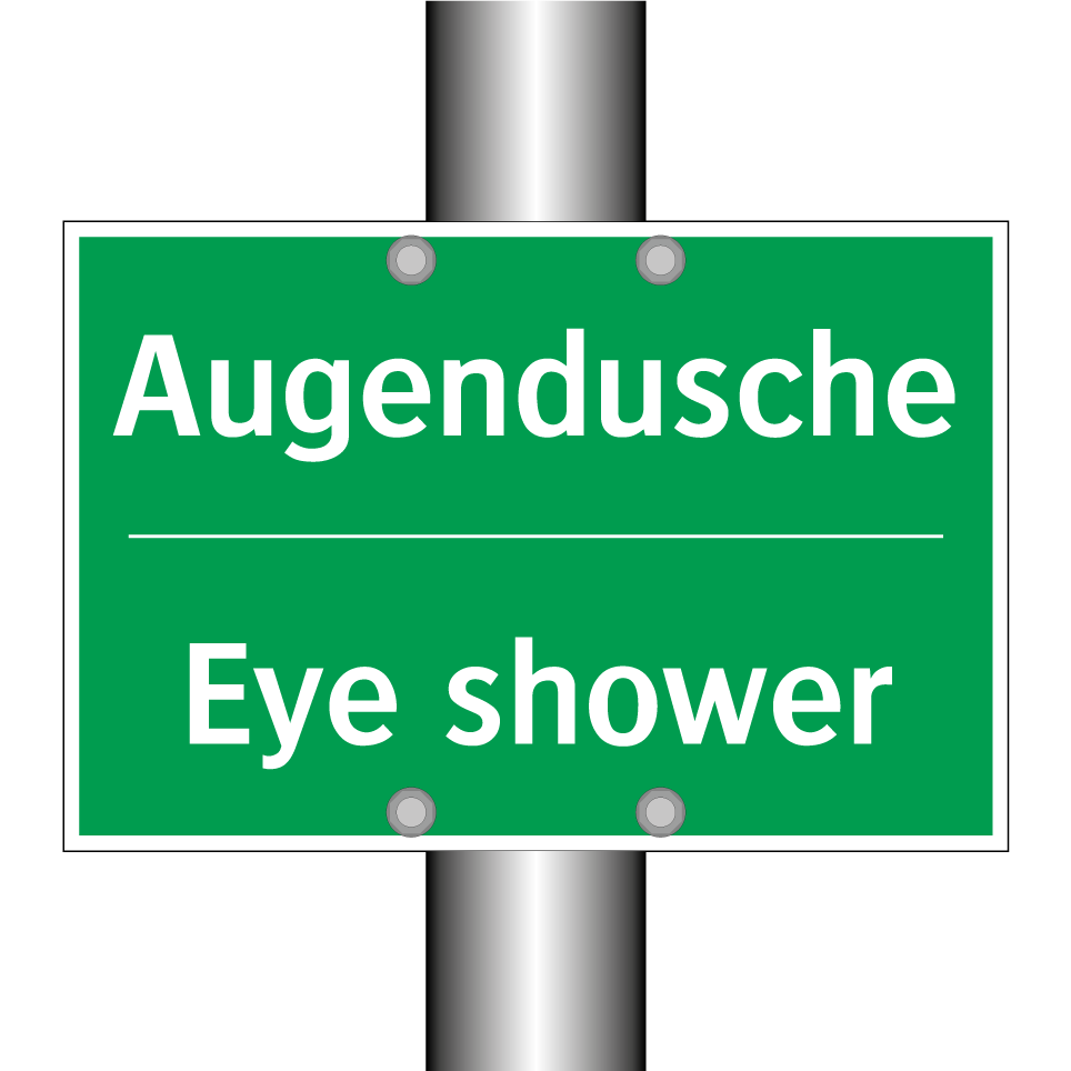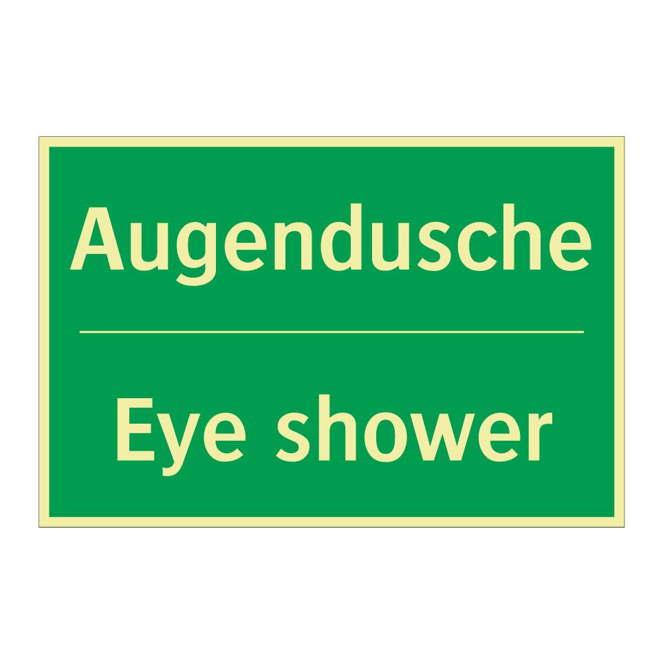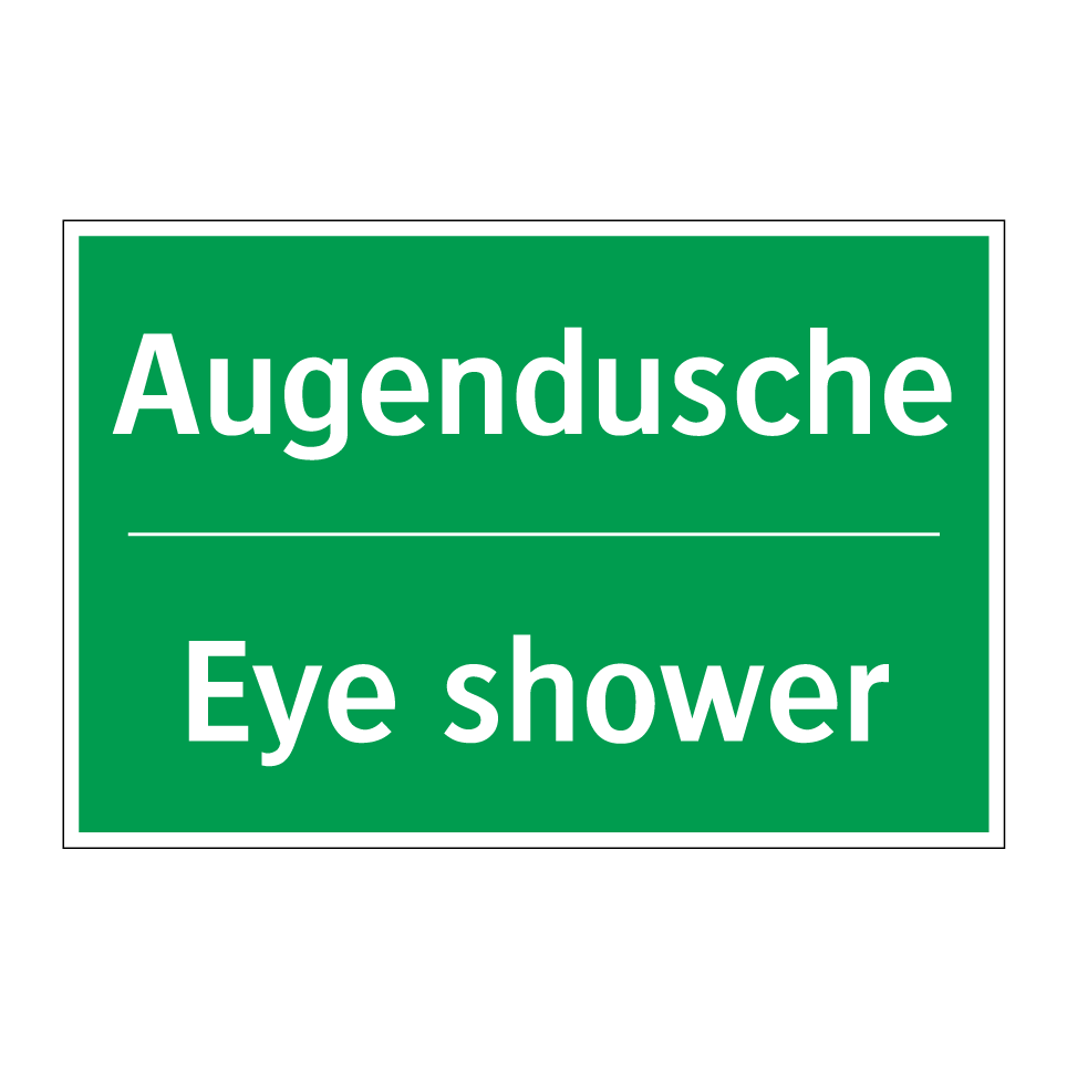 Zweisprachiges Rettungsschild mit deutschem Text Augendusche und englischem Text Eye shower