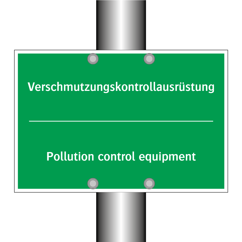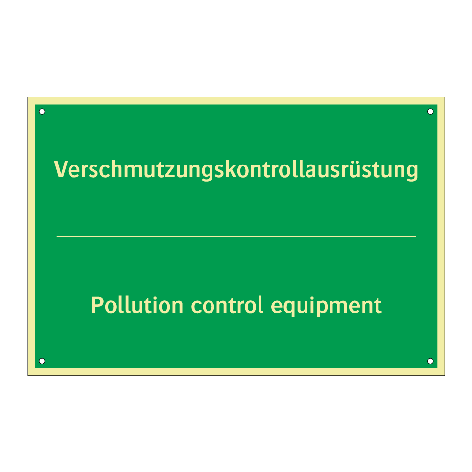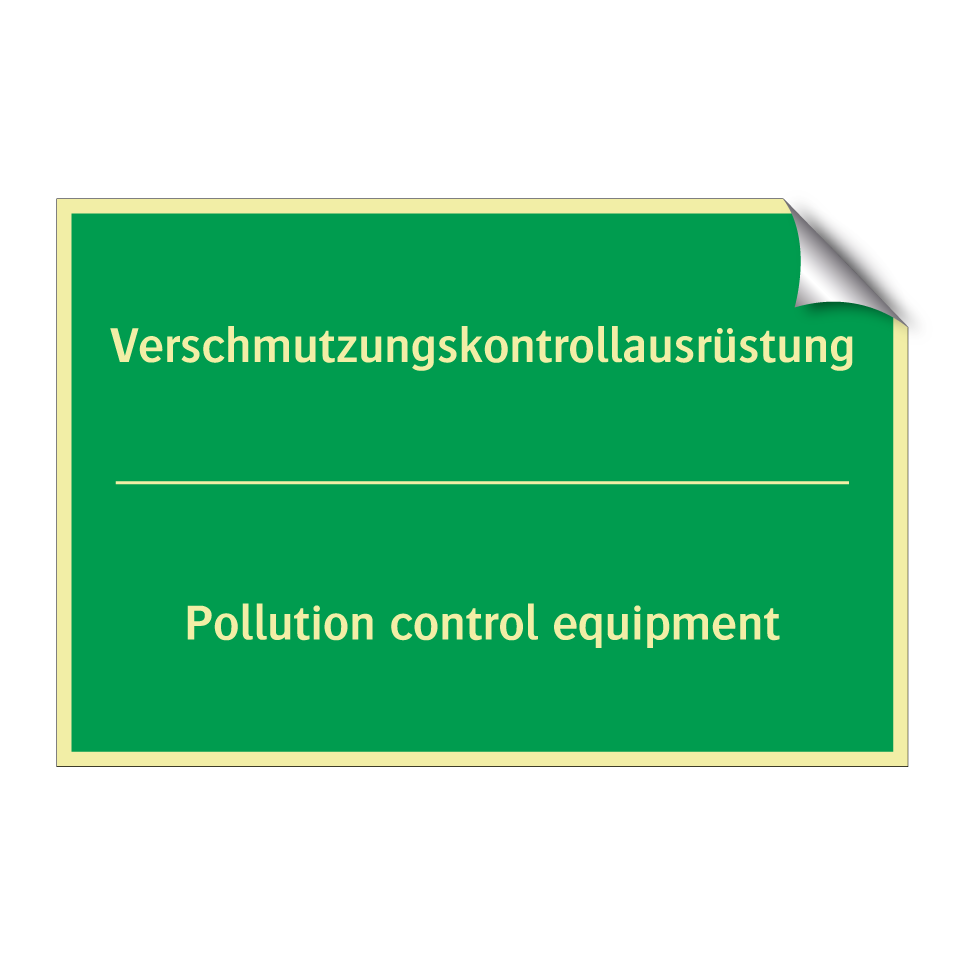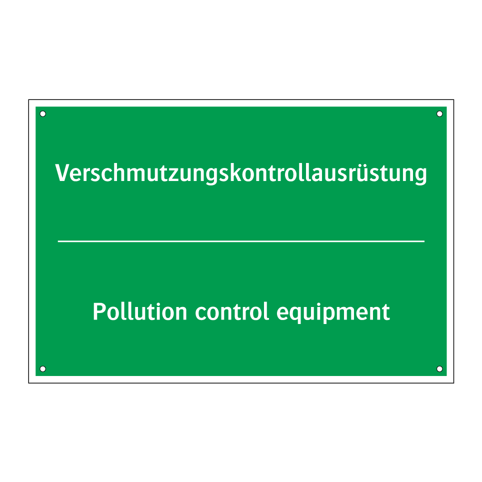 Zweisprachiges Rettungsschild mit deutschem Text Verschmutzungskontrollausrüstung und englischem Text Pollution control equipment