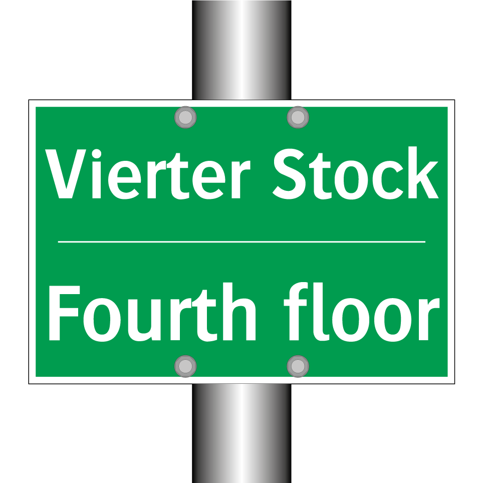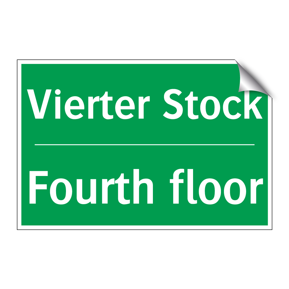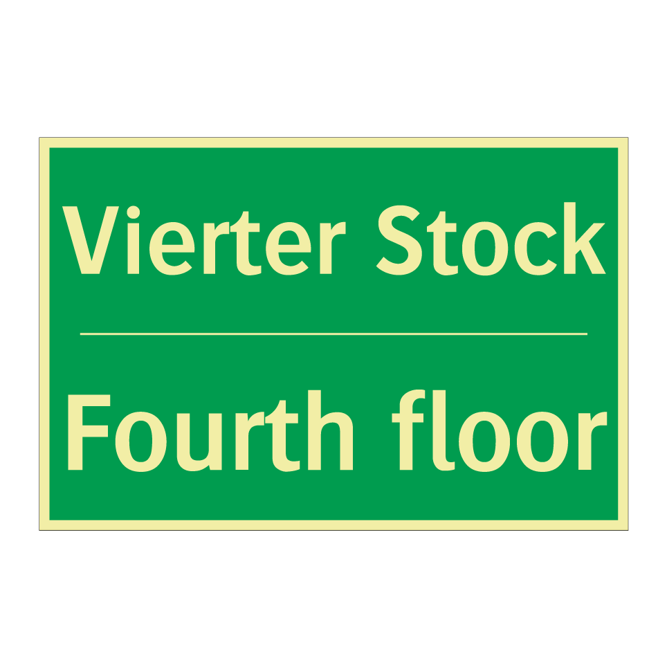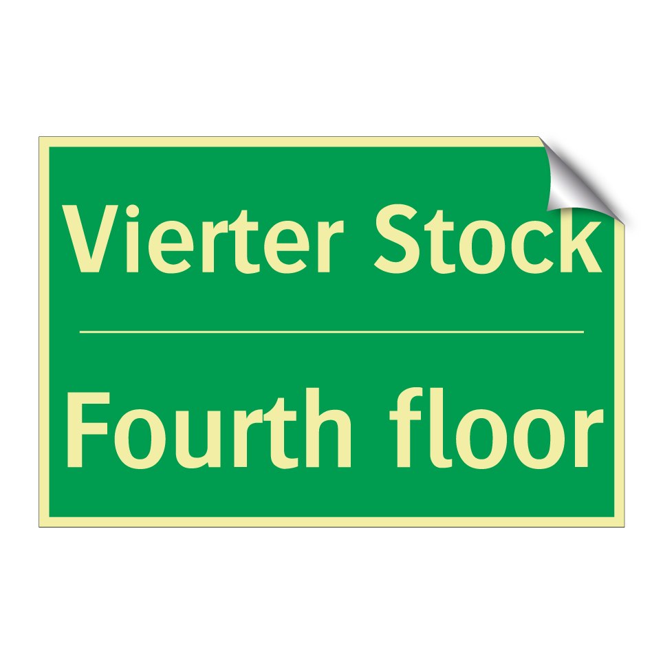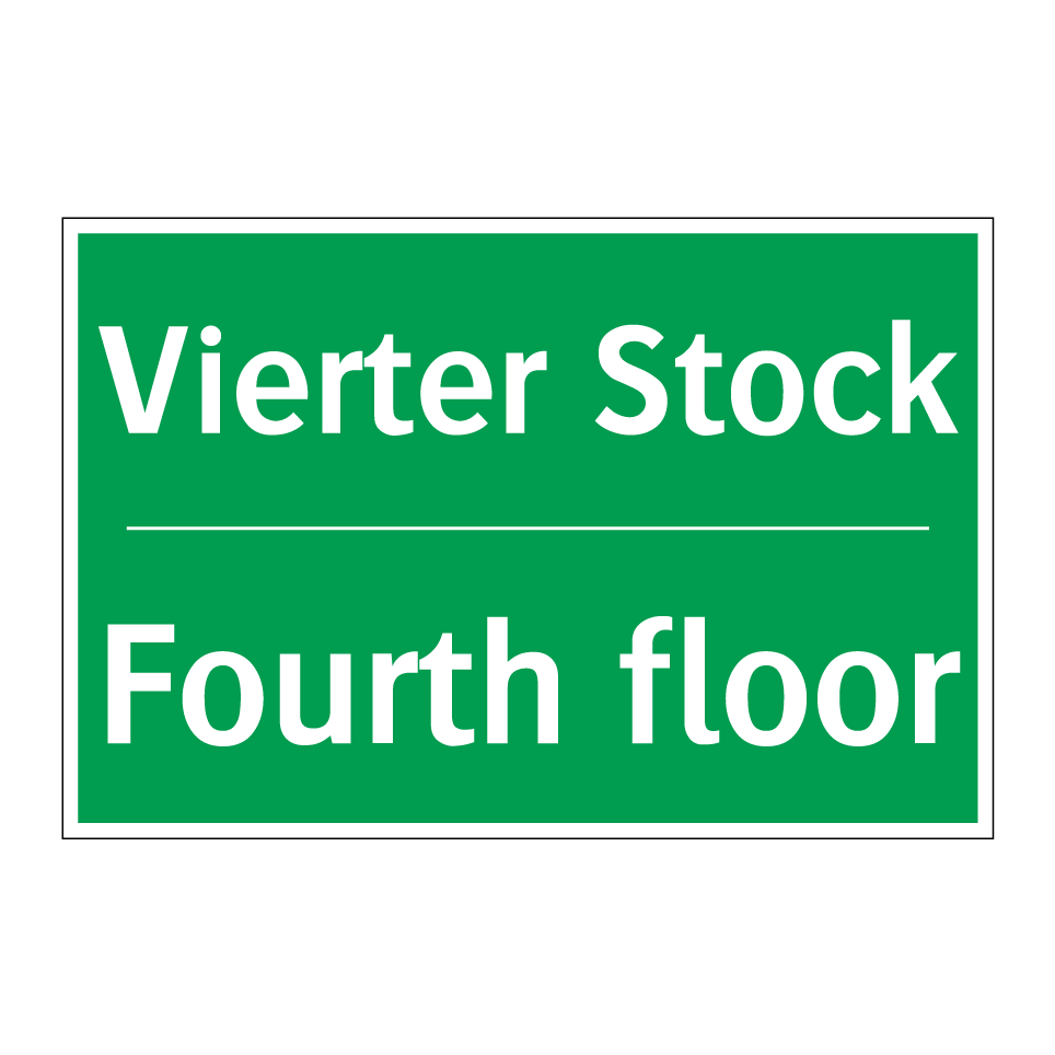Zweisprachiges Rettungsschild mit deutschem Text Vierter Stock und englischem Text Fourth floor