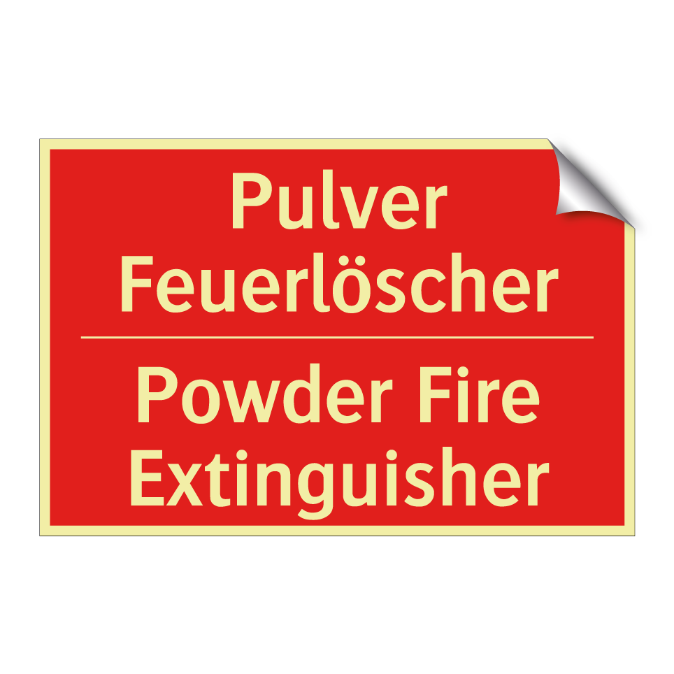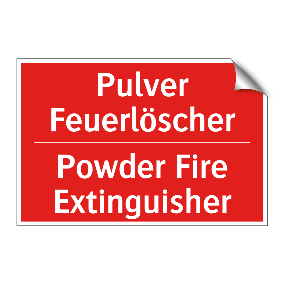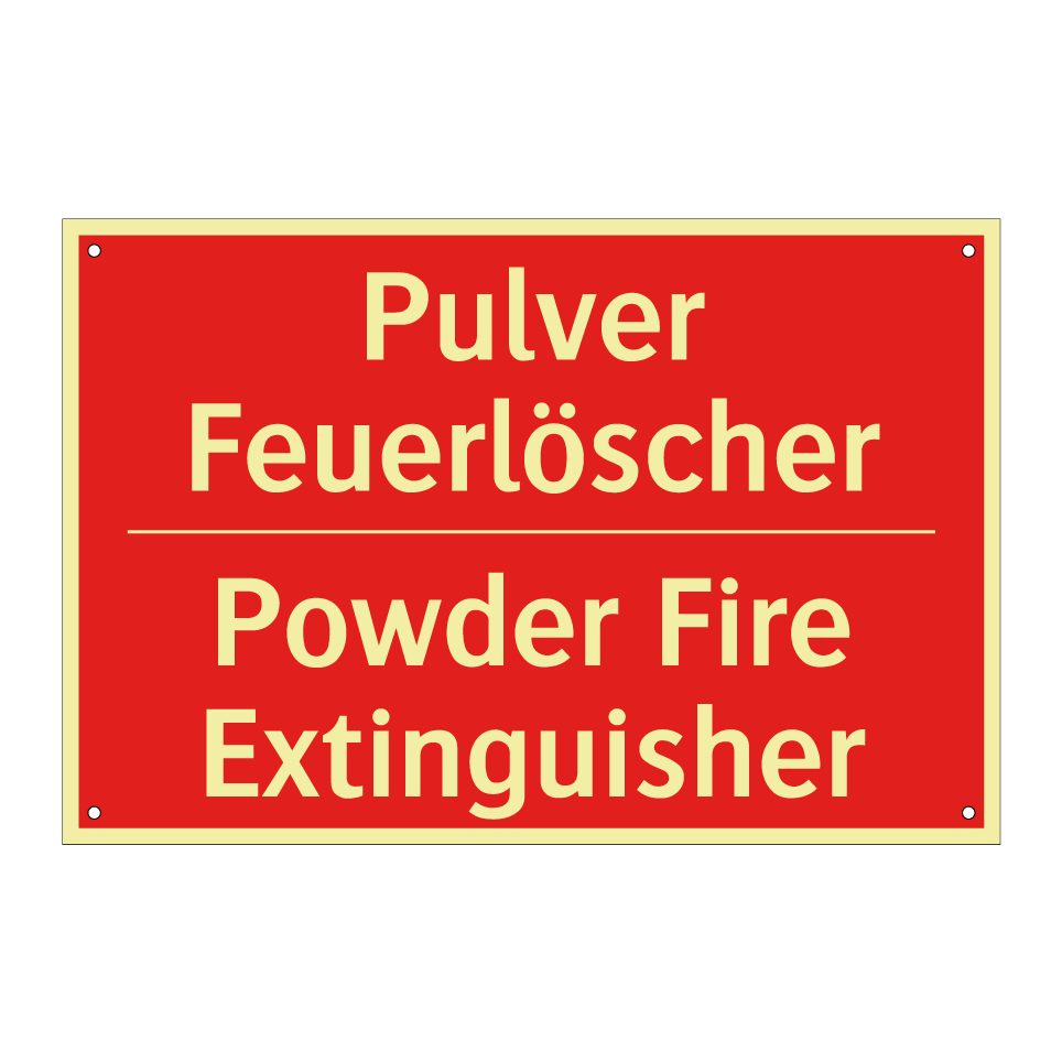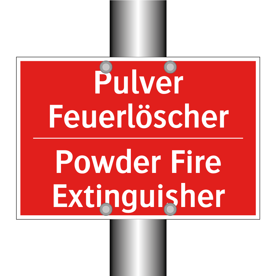 Zweisprachiges Brandschutzschild mit deutschem Text Pulver Feuerlöscher und englischem Text Powder Fire Extinguisher