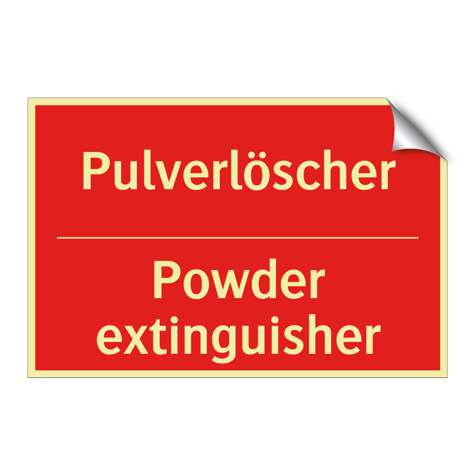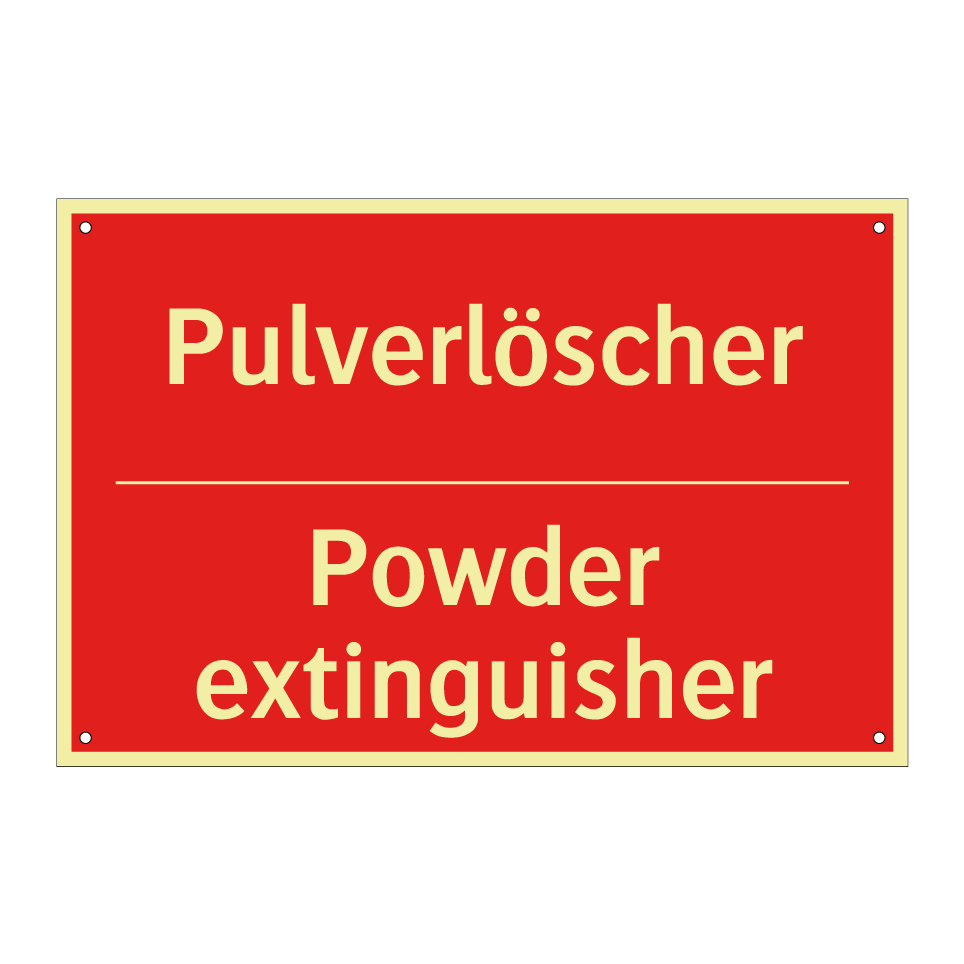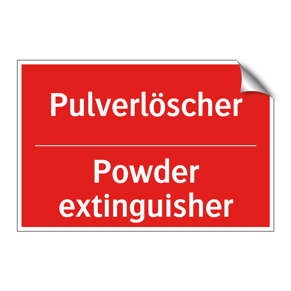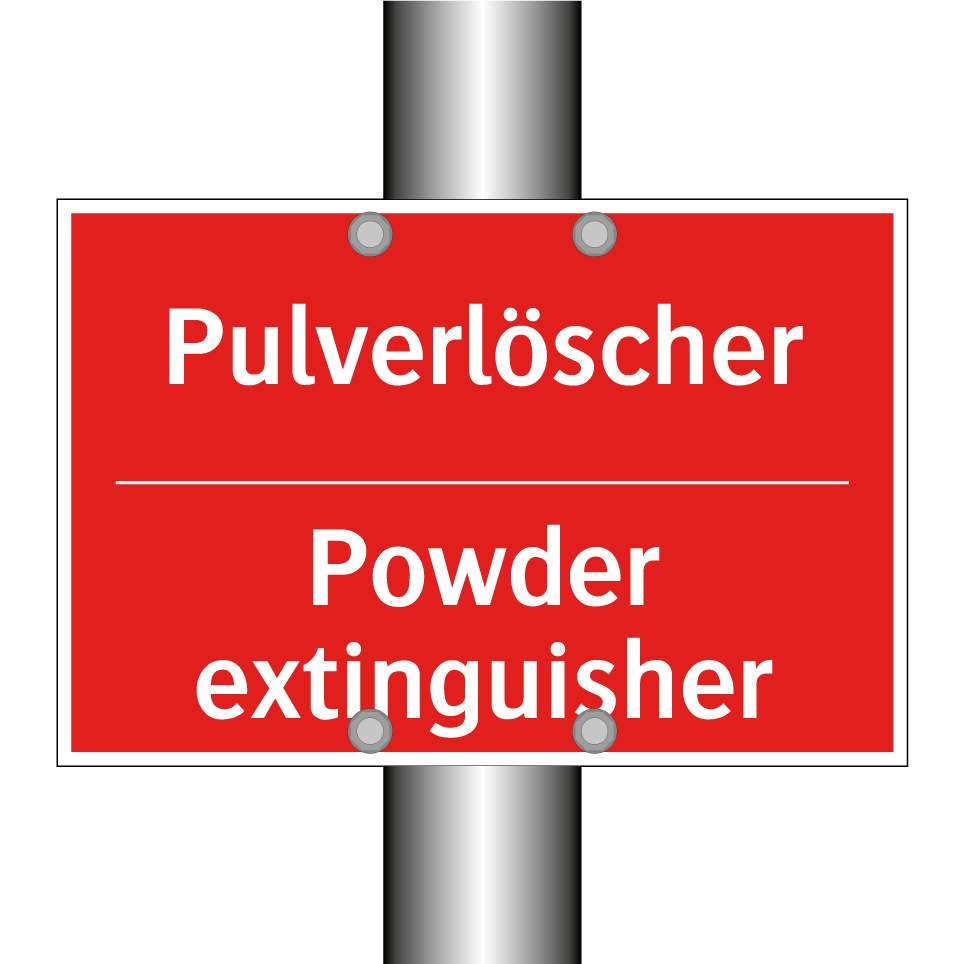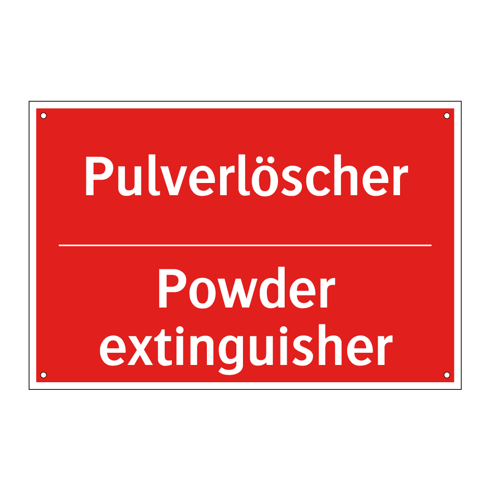 Zweisprachiges Brandschutzschild mit deutschem Text Pulverlöscher und englischem Text Powder extinguisher