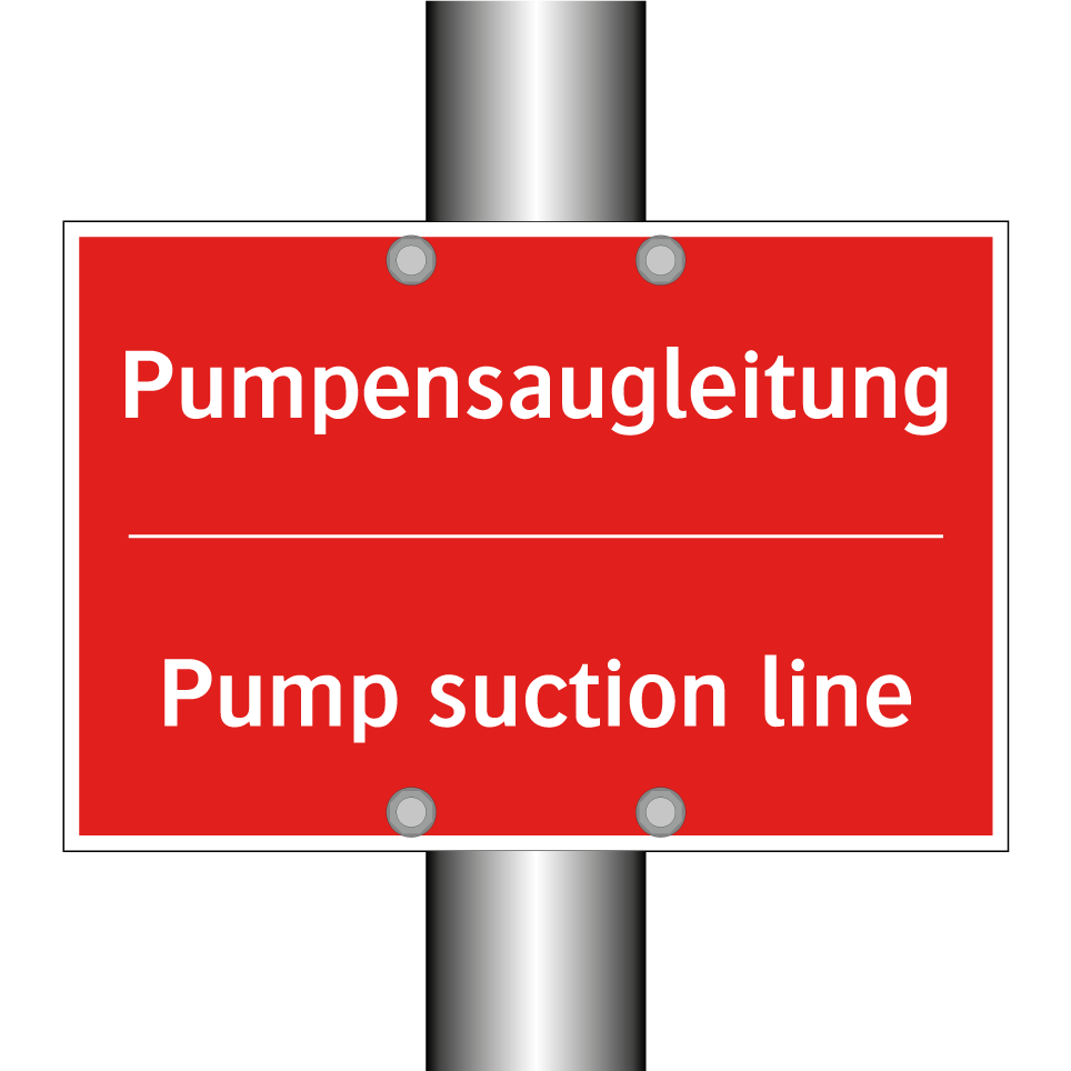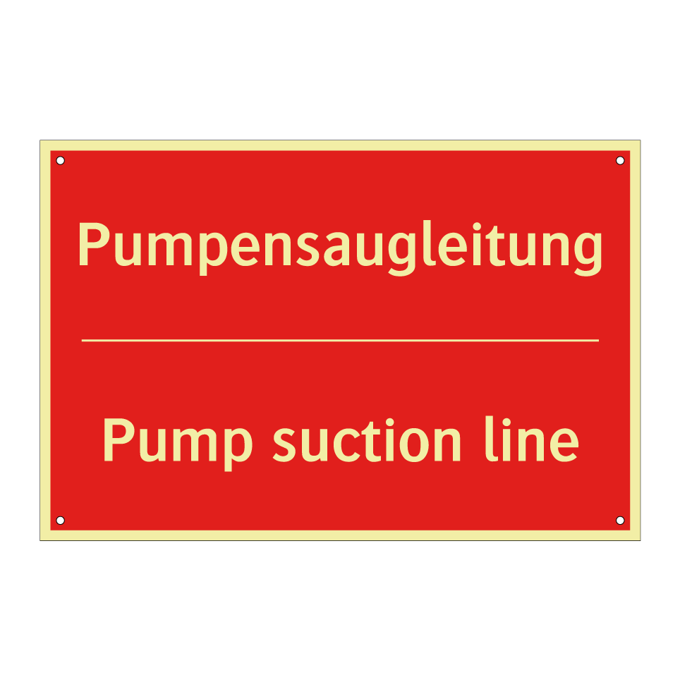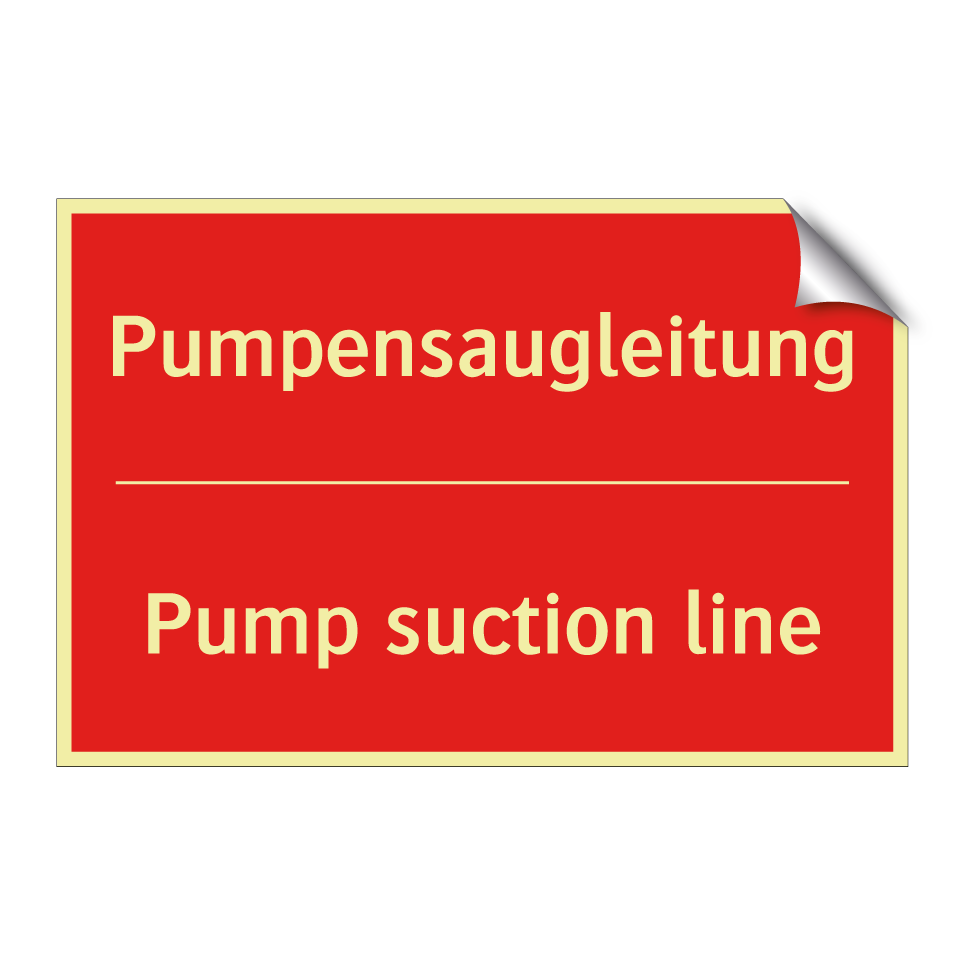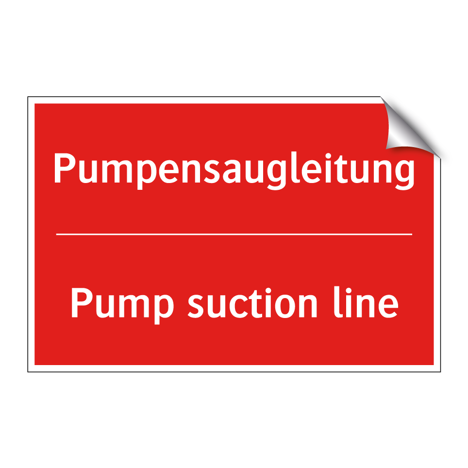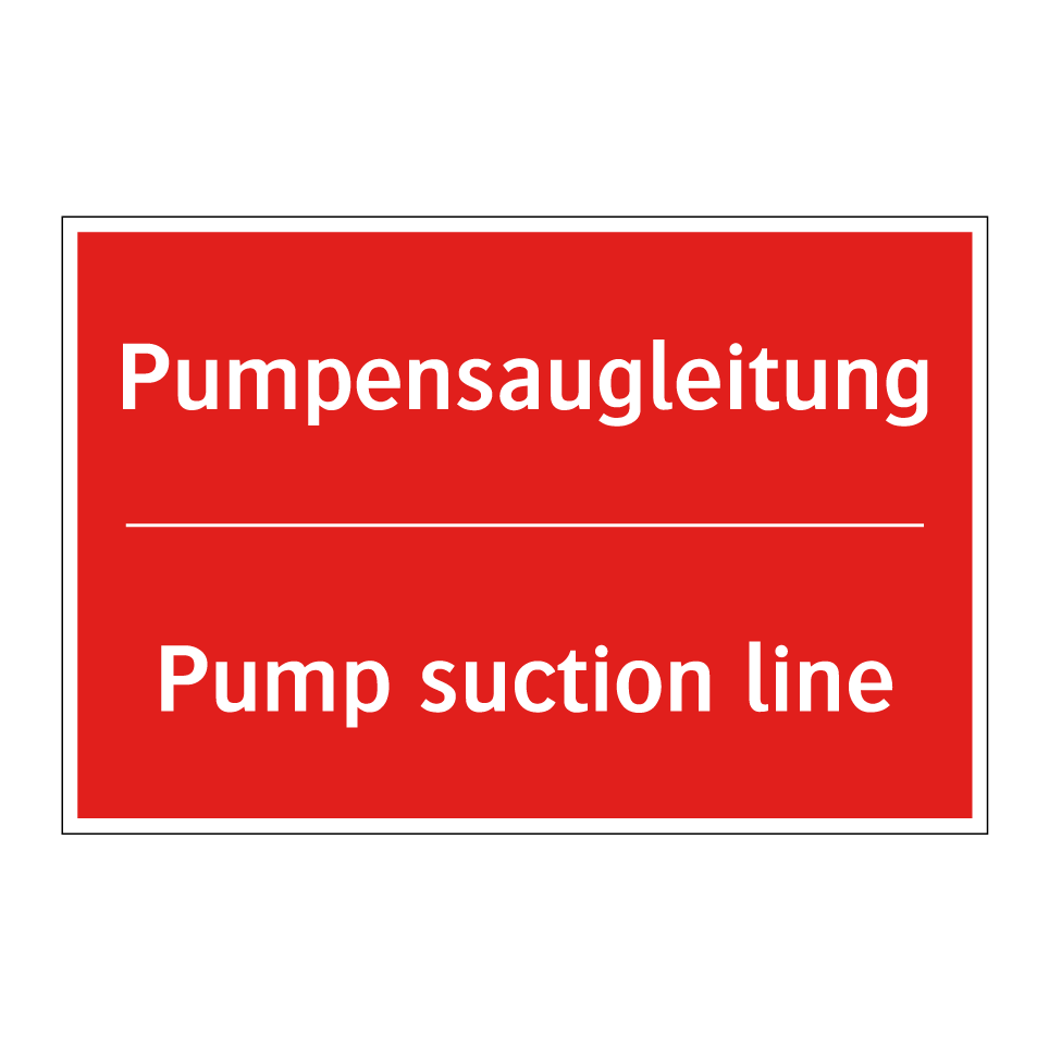 Zweisprachiges Brandschutzschild mit deutschem Text Pumpensaugleitung und englischem Text Pump suction line