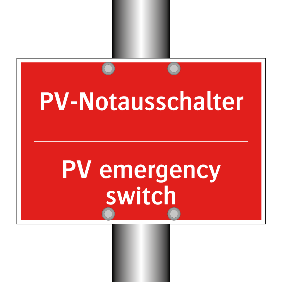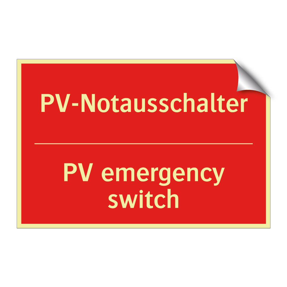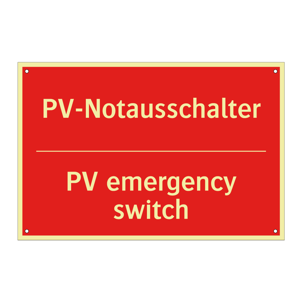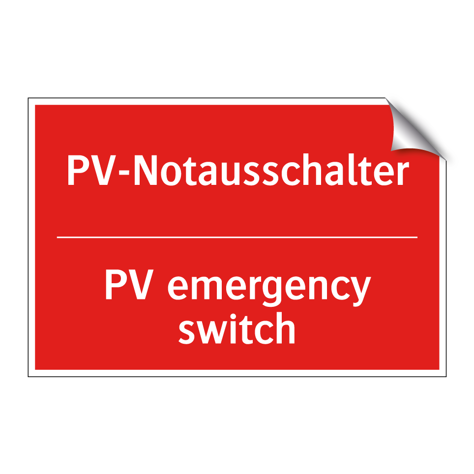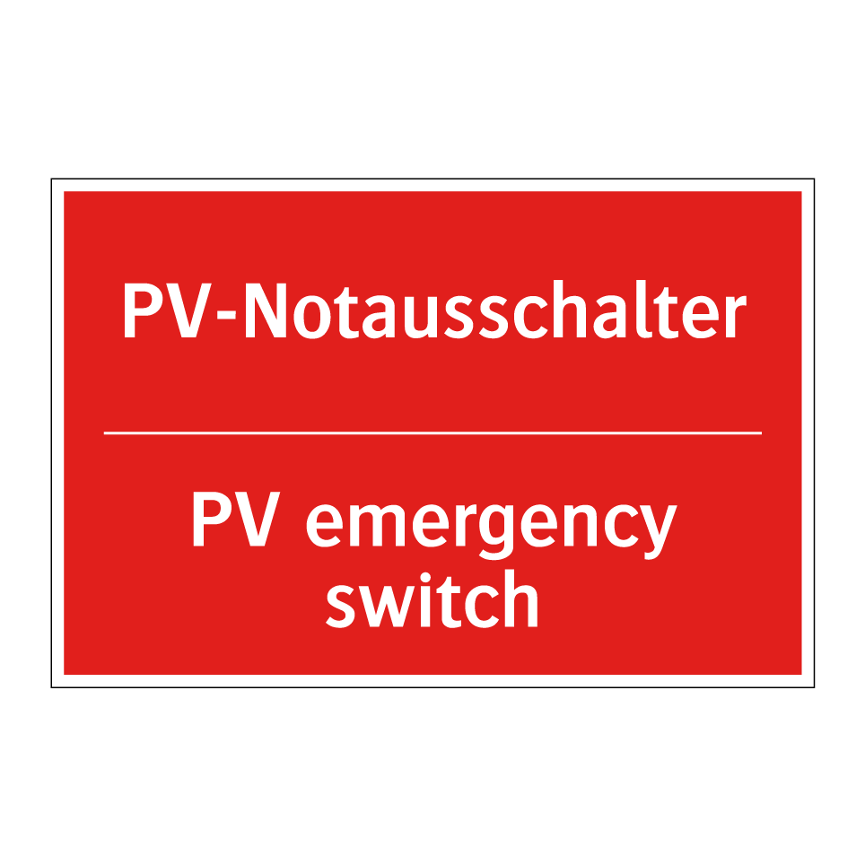 Zweisprachiges Brandschutzschild mit deutschem Text PV-Notausschalter und englischem Text PV emergency switch