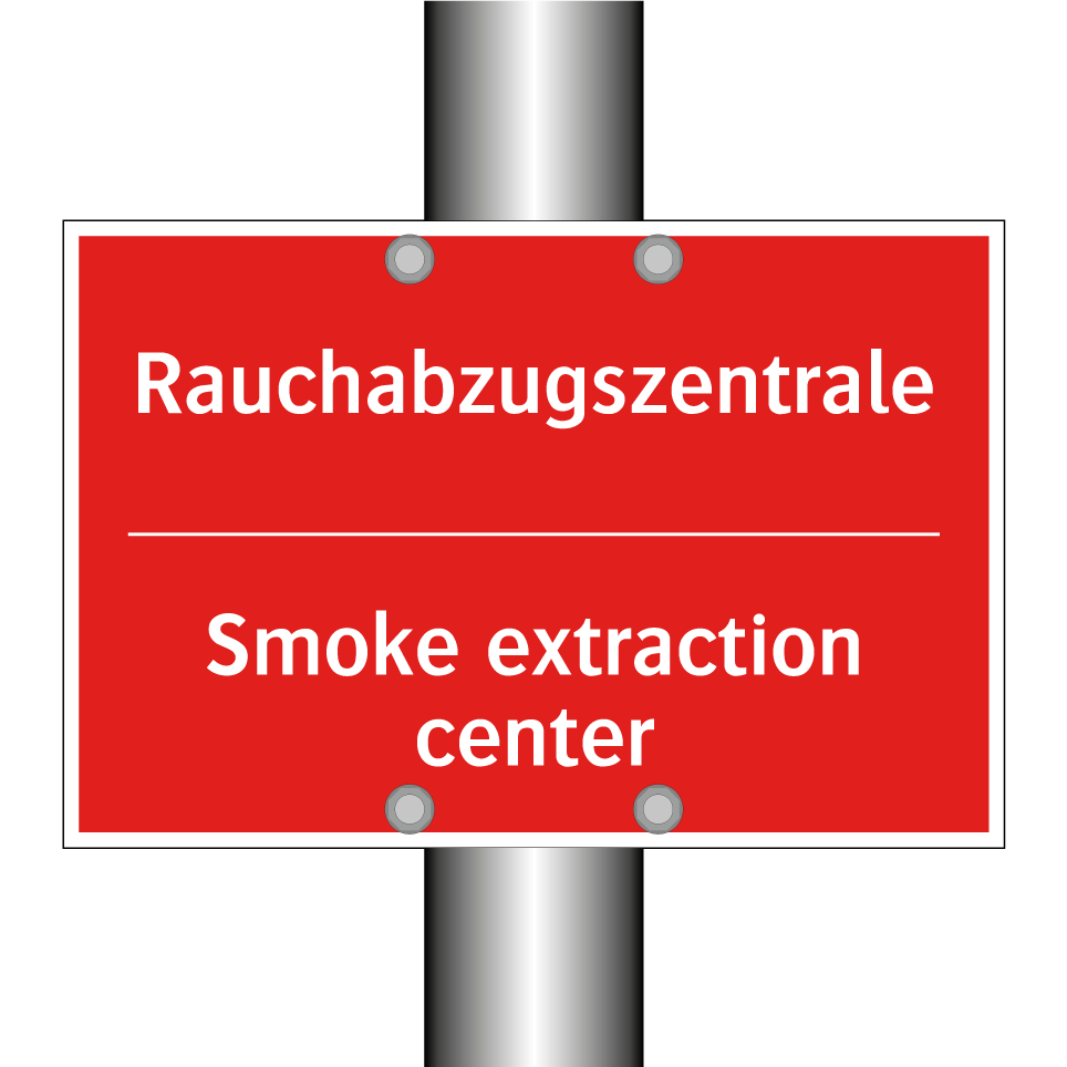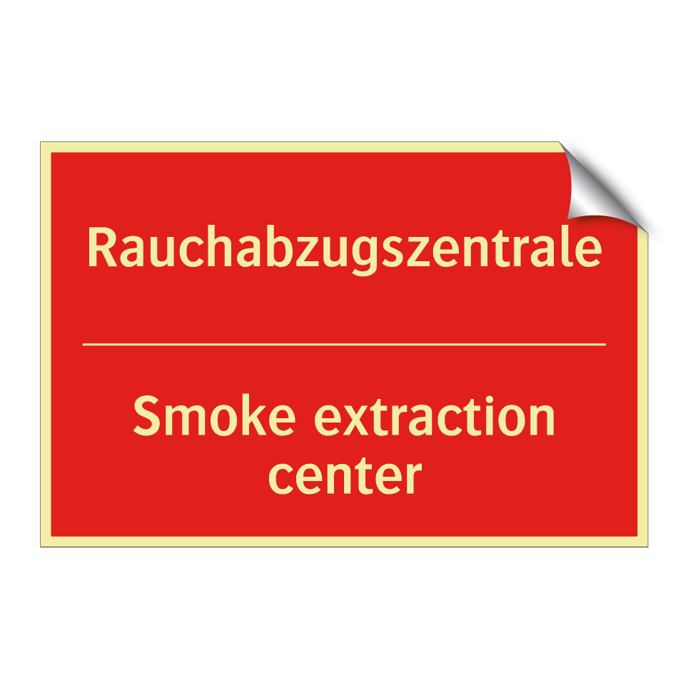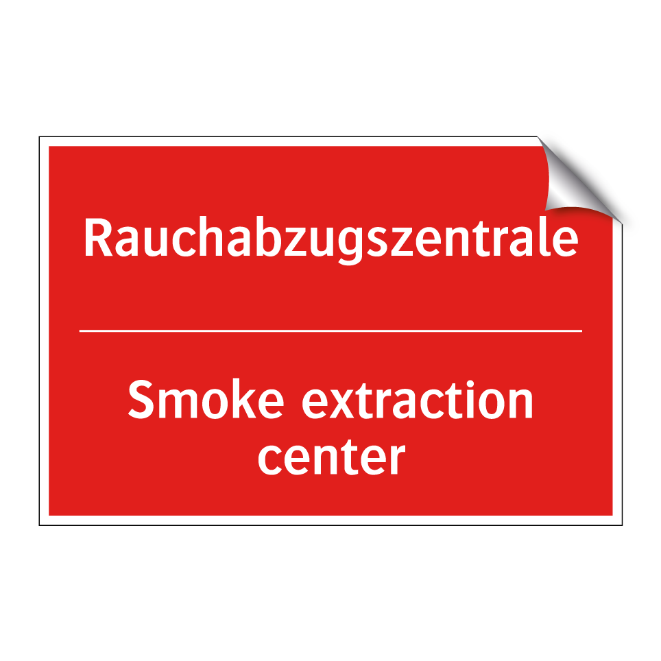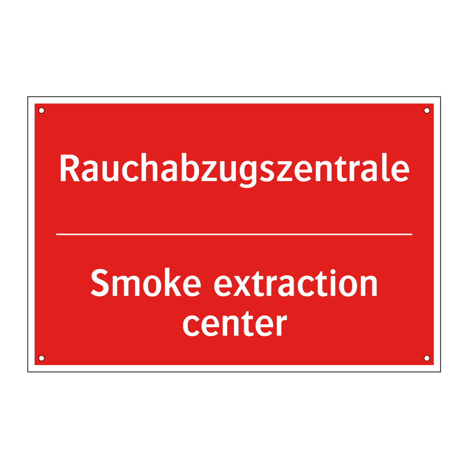 Zweisprachiges Brandschutzschild mit deutschem Text Rauchabzugszentrale und englischem Text Smoke extraction center