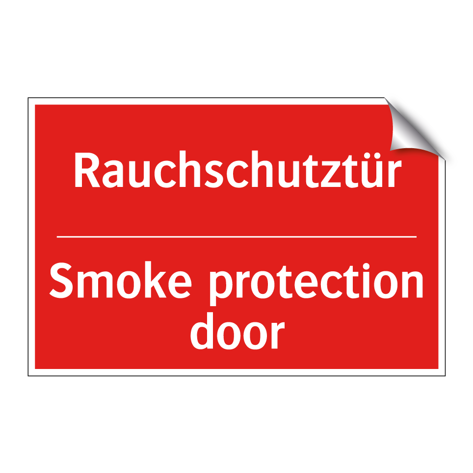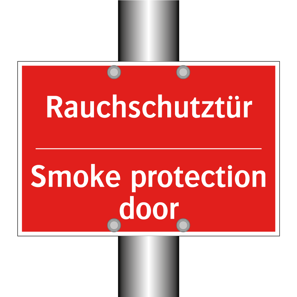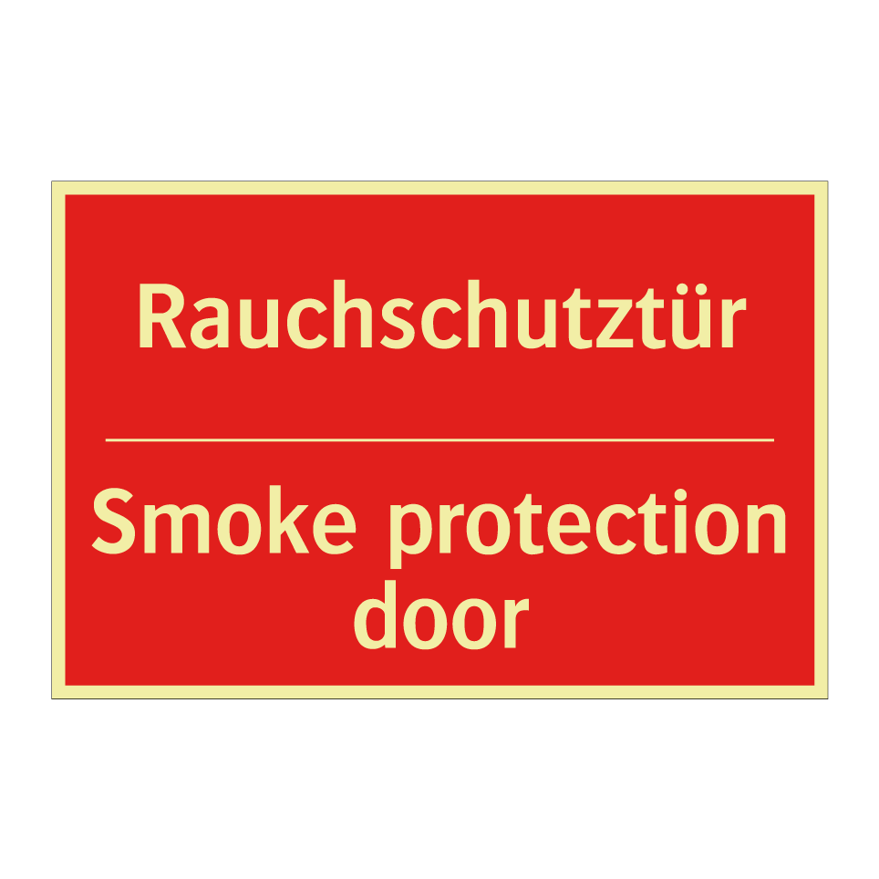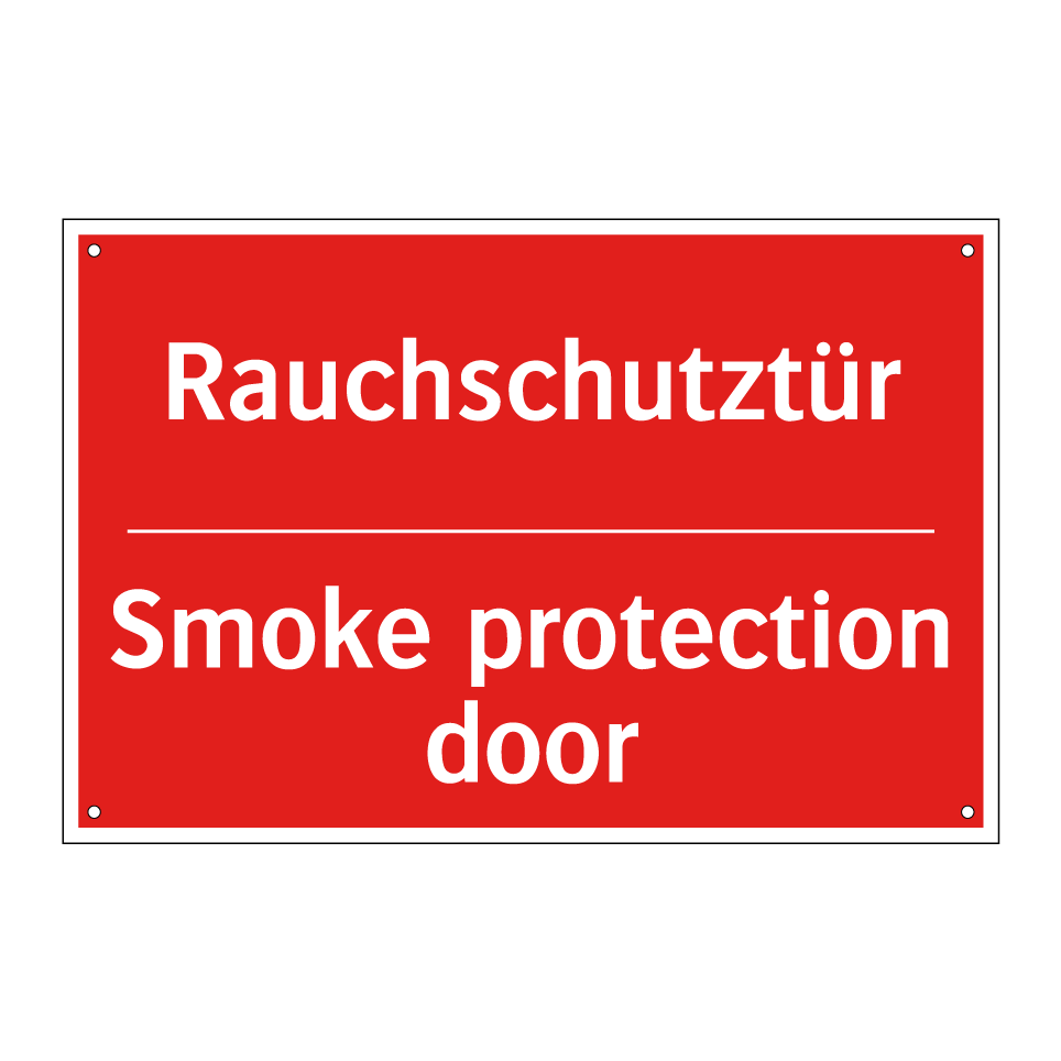 Zweisprachiges Brandschutzschild mit deutschem Text Rauchschutztür und englischem Text Smoke protection door