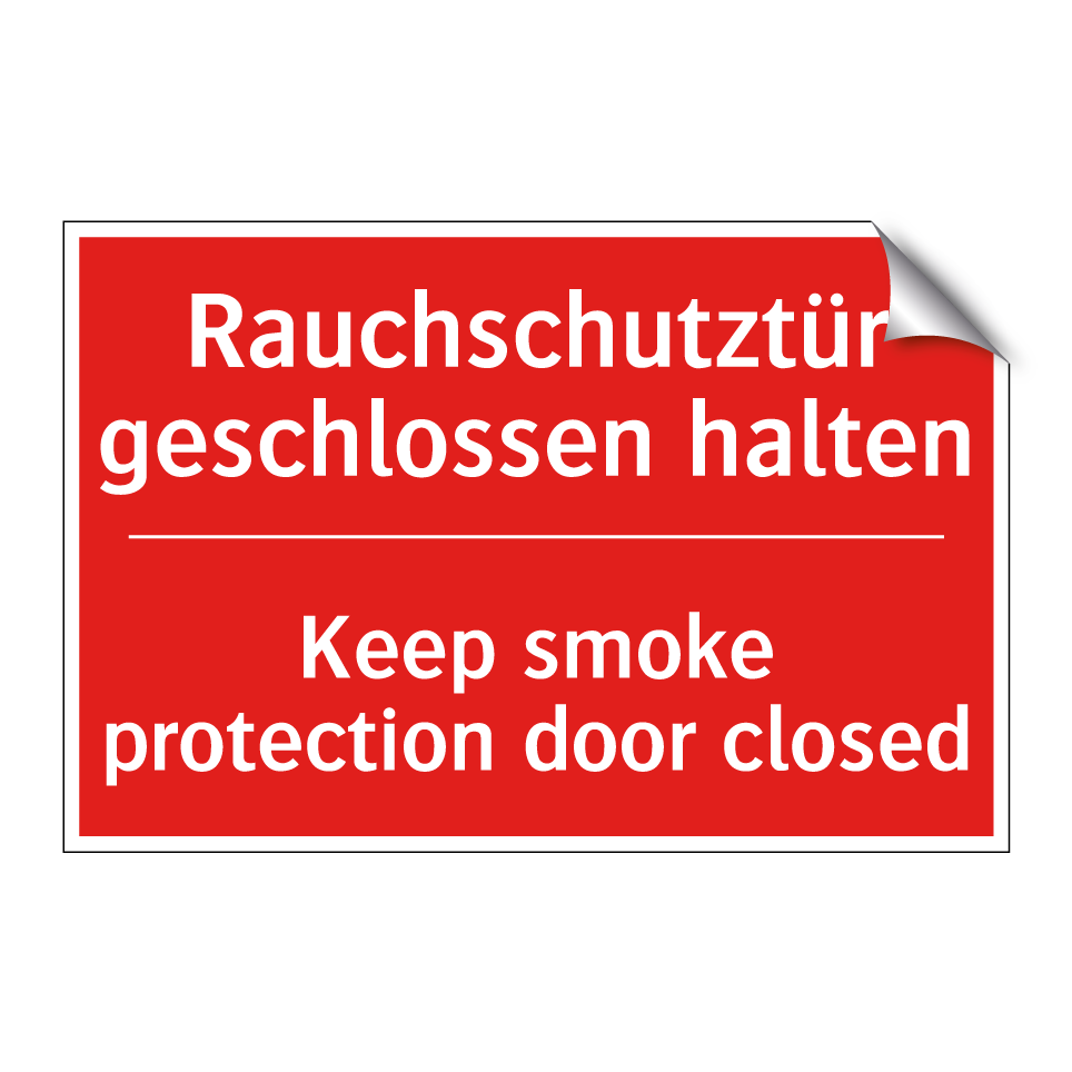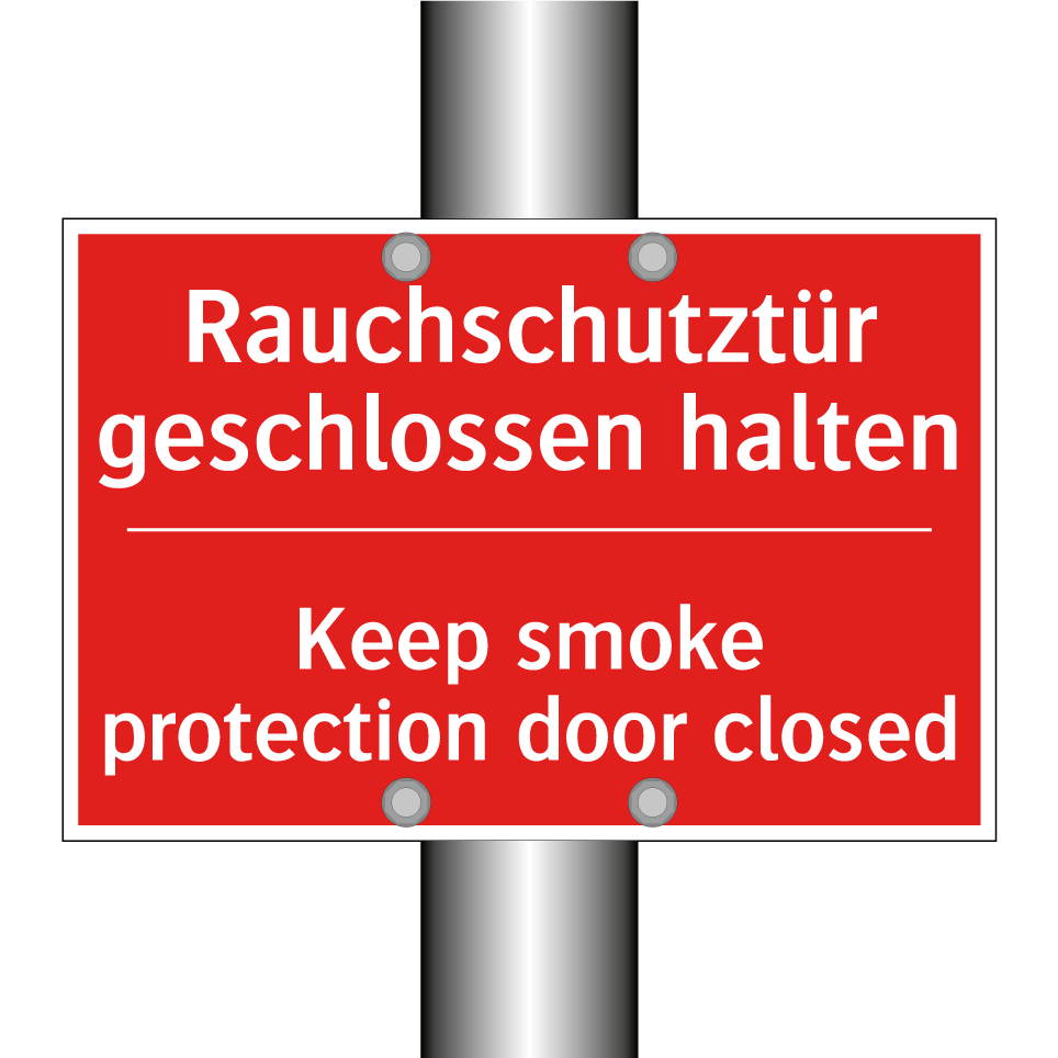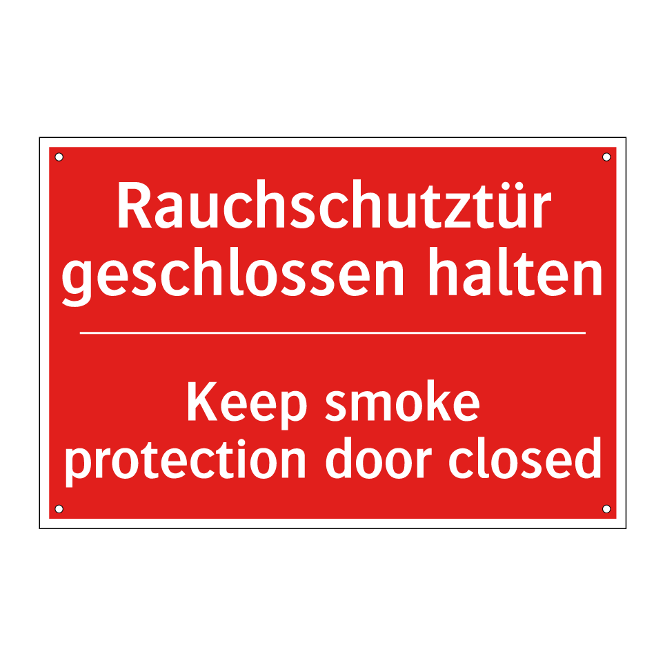 Zweisprachiges Brandschutzschild mit deutschem Text Rauchschutztür geschlossen halten und englischem Text Keep smoke protection door closed