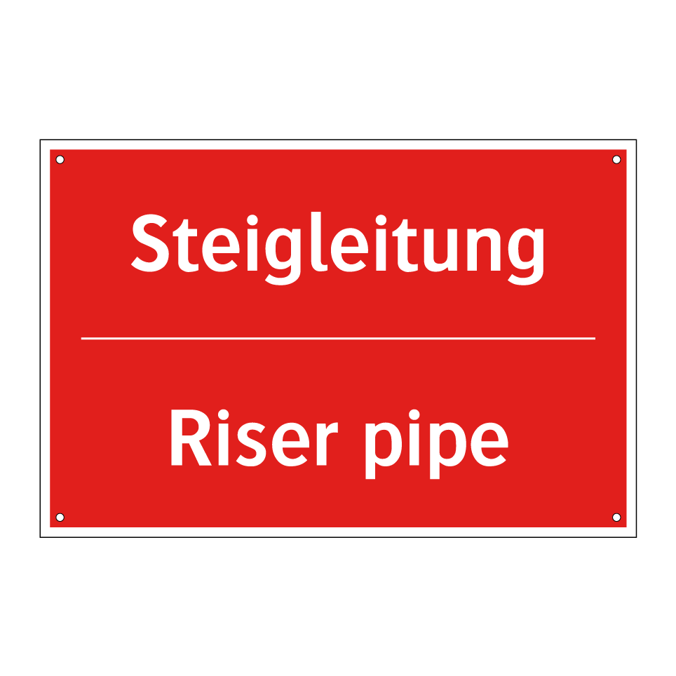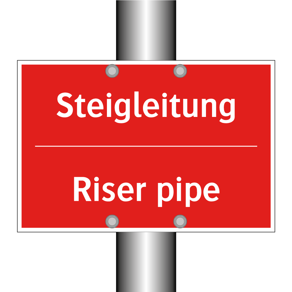 Zweisprachiges Brandschutzschild mit deutschem Text Steigleitung und englischem Text Riser pipe