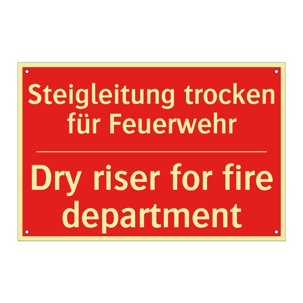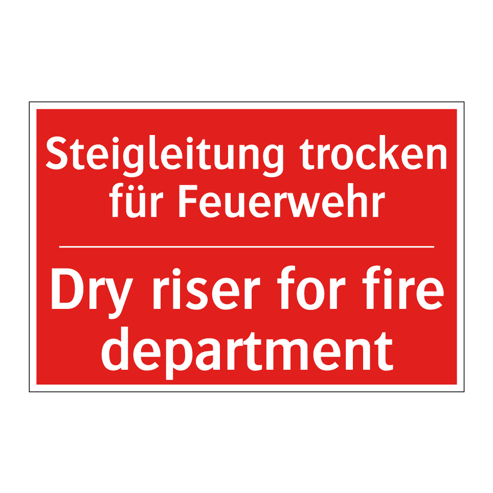 Zweisprachiges Brandschutzschild mit deutschem Text Steigleitung trocken für Feuerwehr und englischem Text Dry riser for fire department