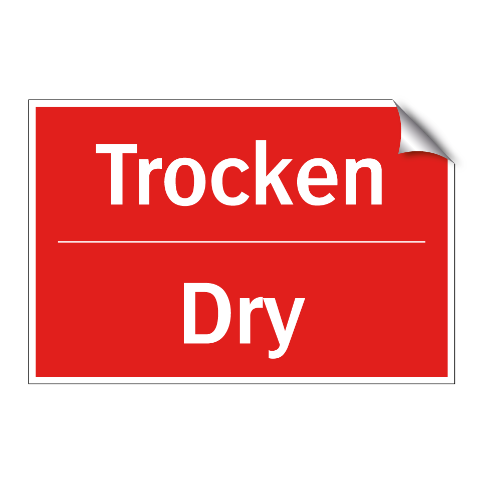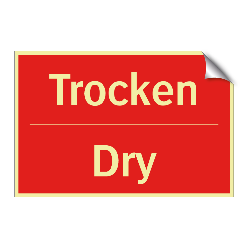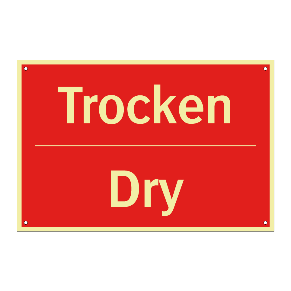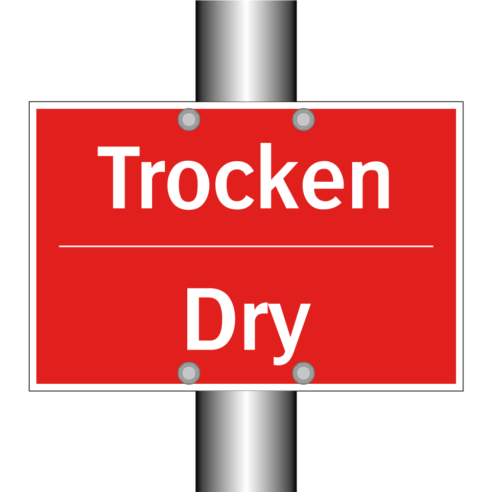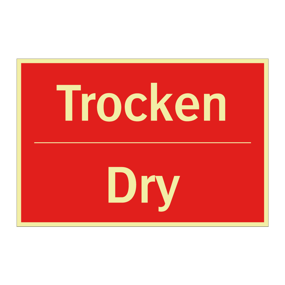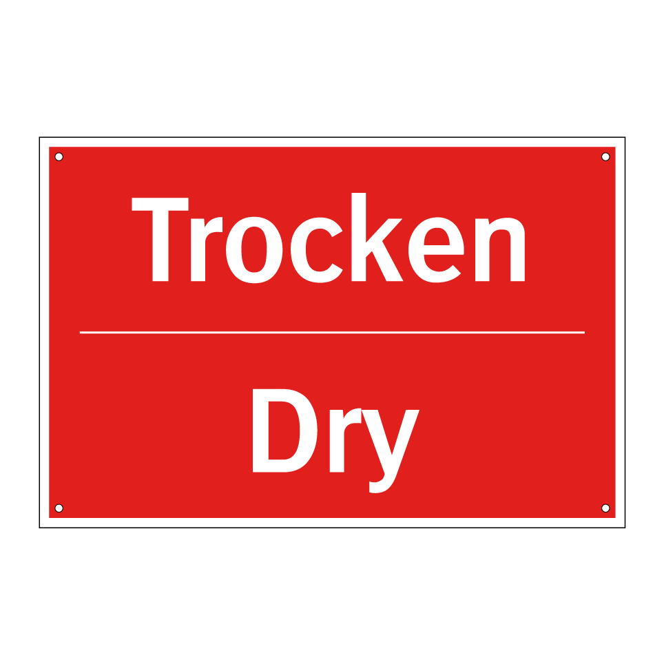 Zweisprachiges Brandschutzschild mit deutschem Text Trocken und englischem Text Dry